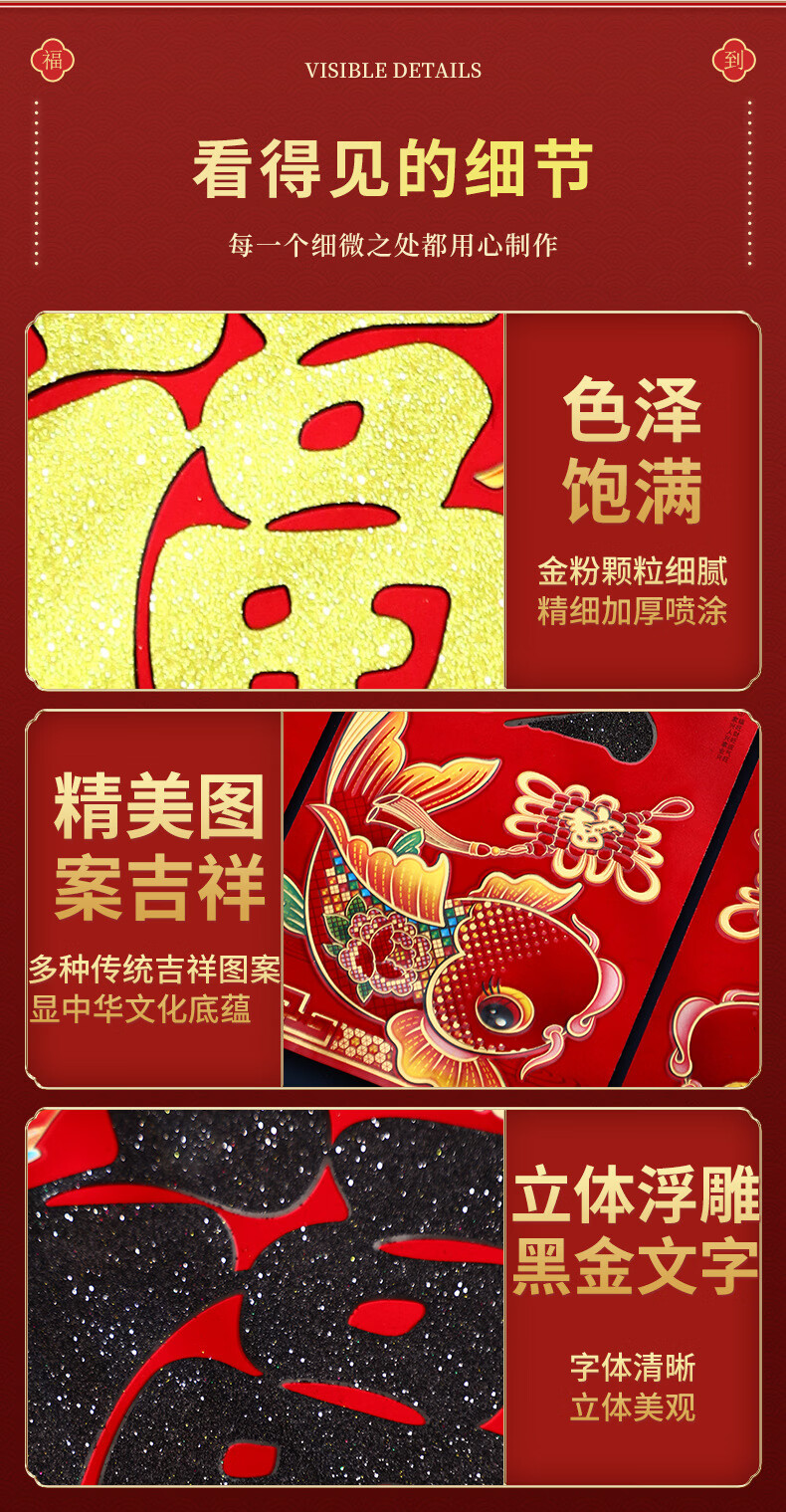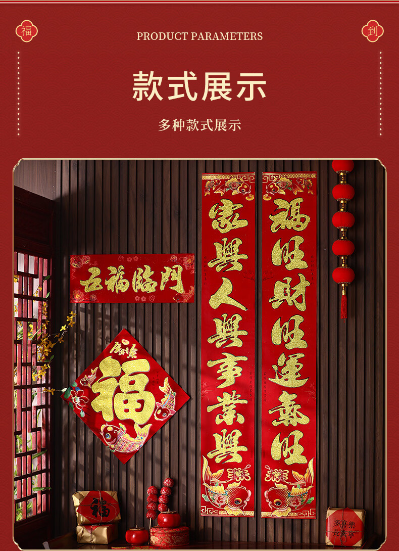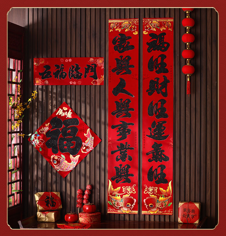 恬舒植绒对联撒粉福字2026马年春节福字农村门贴新年大门春节福字装饰 植绒对联-金字【送同款植绒福字两张】 8米-新春如意接鸿福,佳节平安添福贵