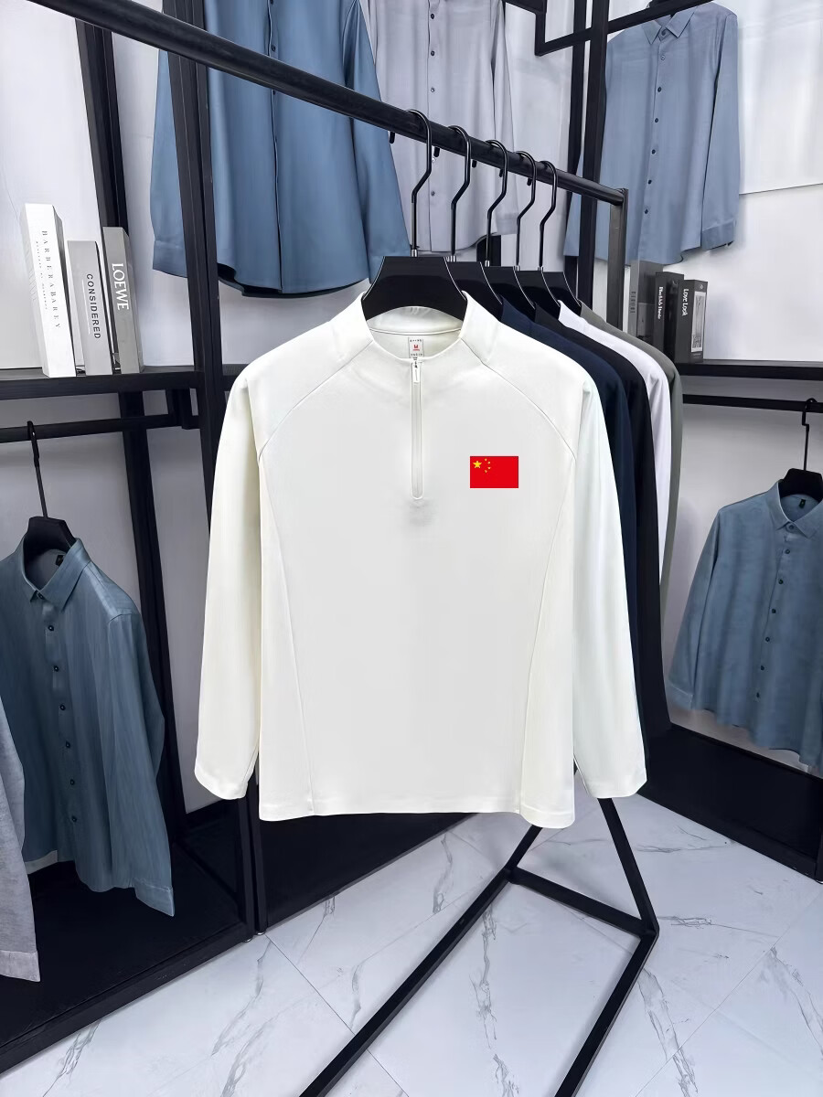 国旗春秋冬新款磨绒立领半拉链运动服长袖休闲时尚卫衣男女打底衫 珍珠奶白 2XL 女款 140-160斤