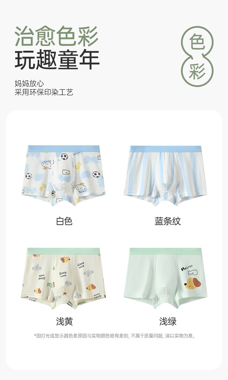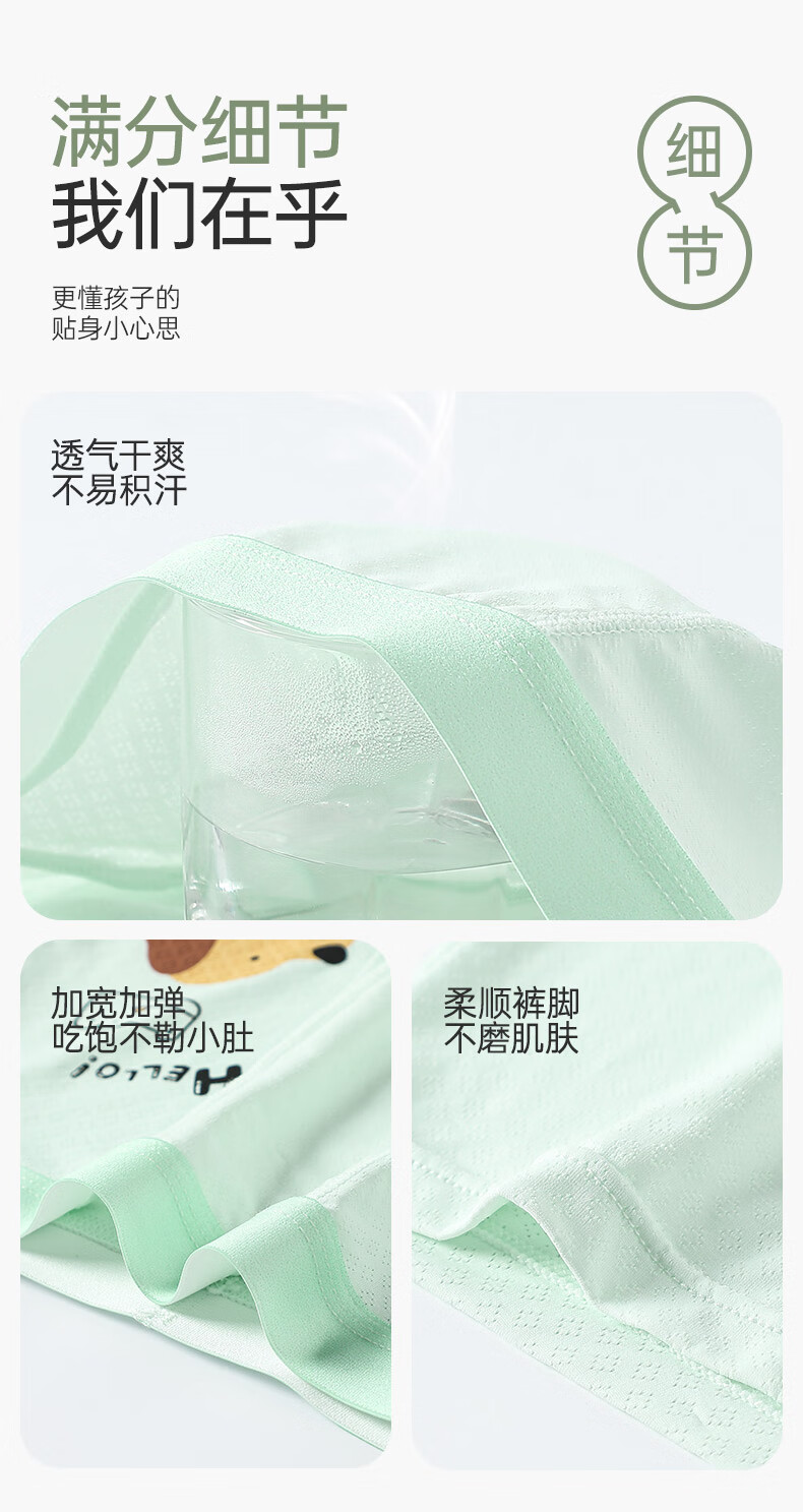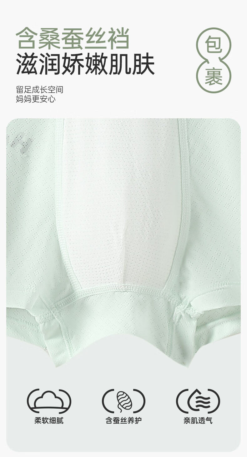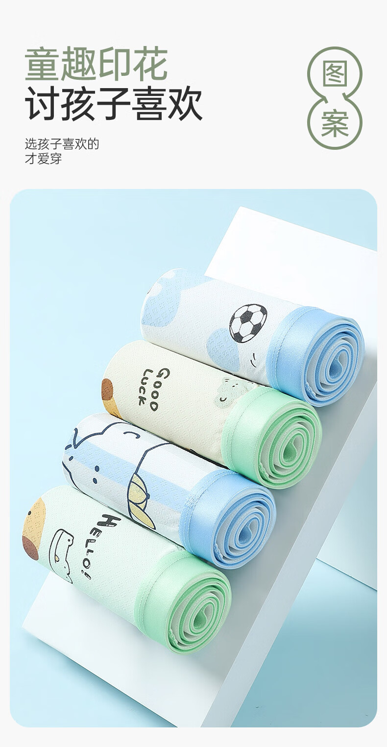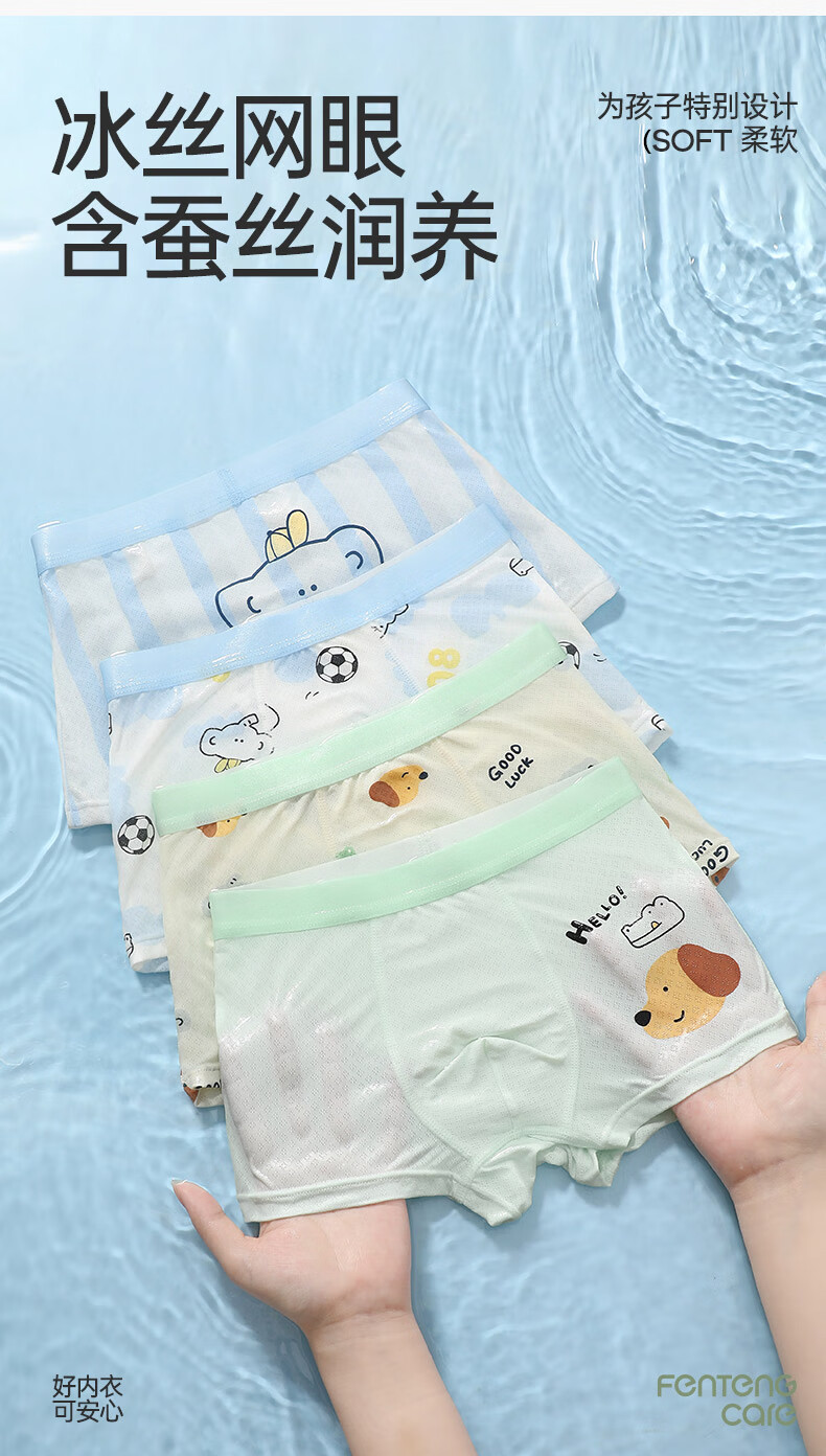 芬腾可安儿童内裤男童2025新款含蚕丝裆网眼冰丝4条装四角内裤亲肤透气 白色/蓝条纹/浅黄/浅绿 4条 120