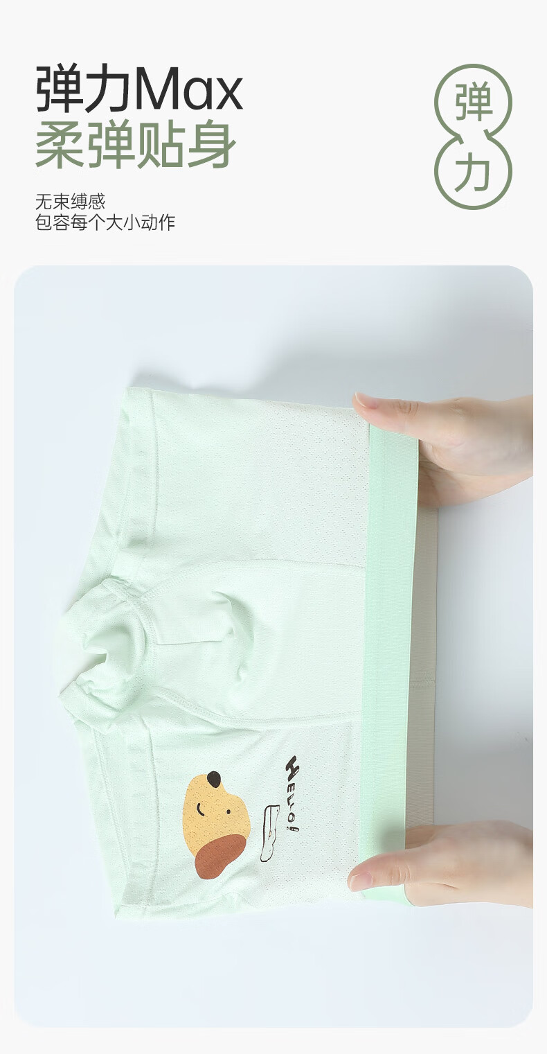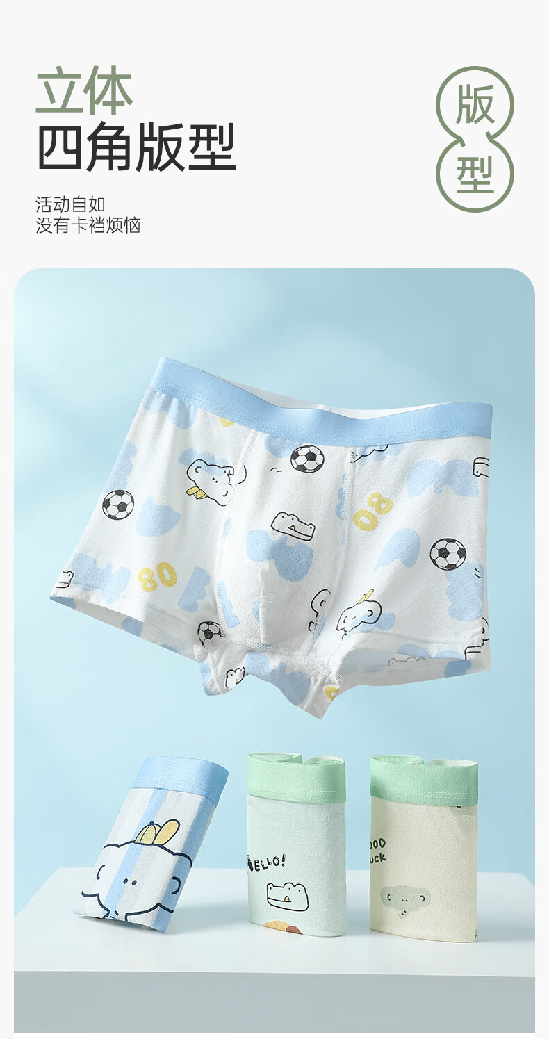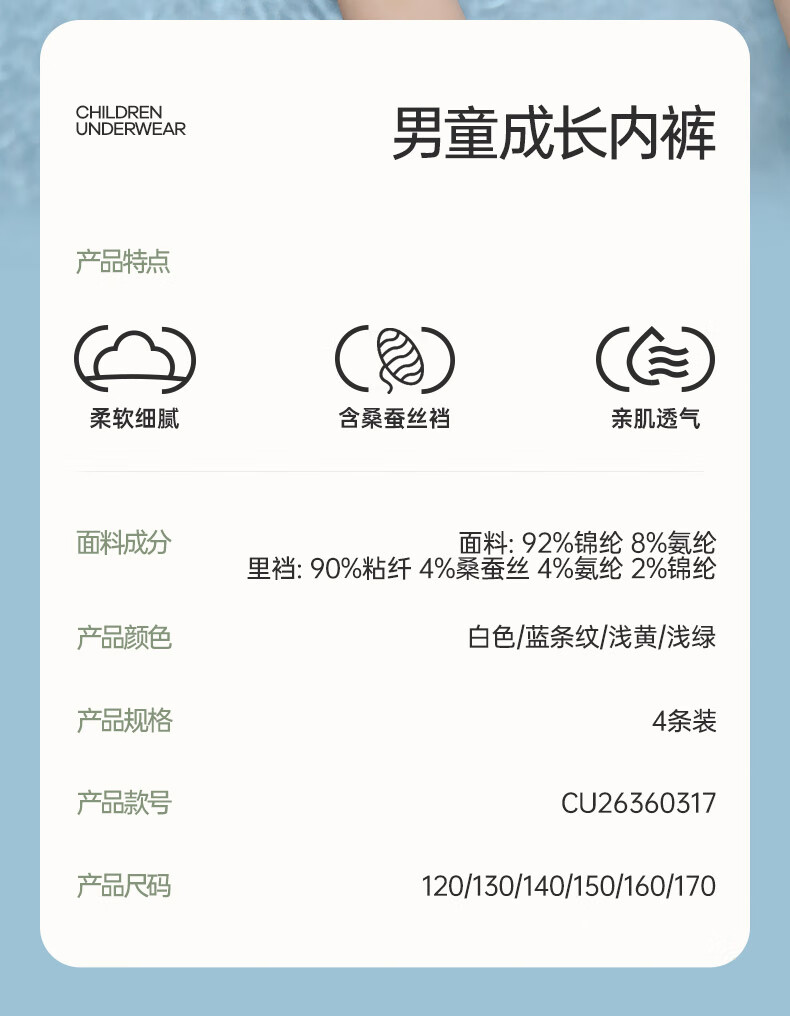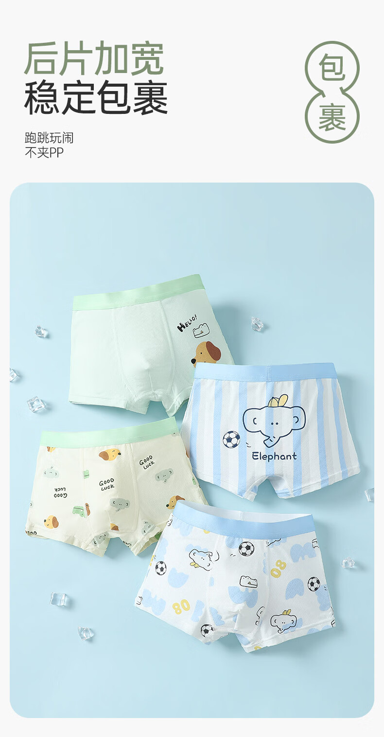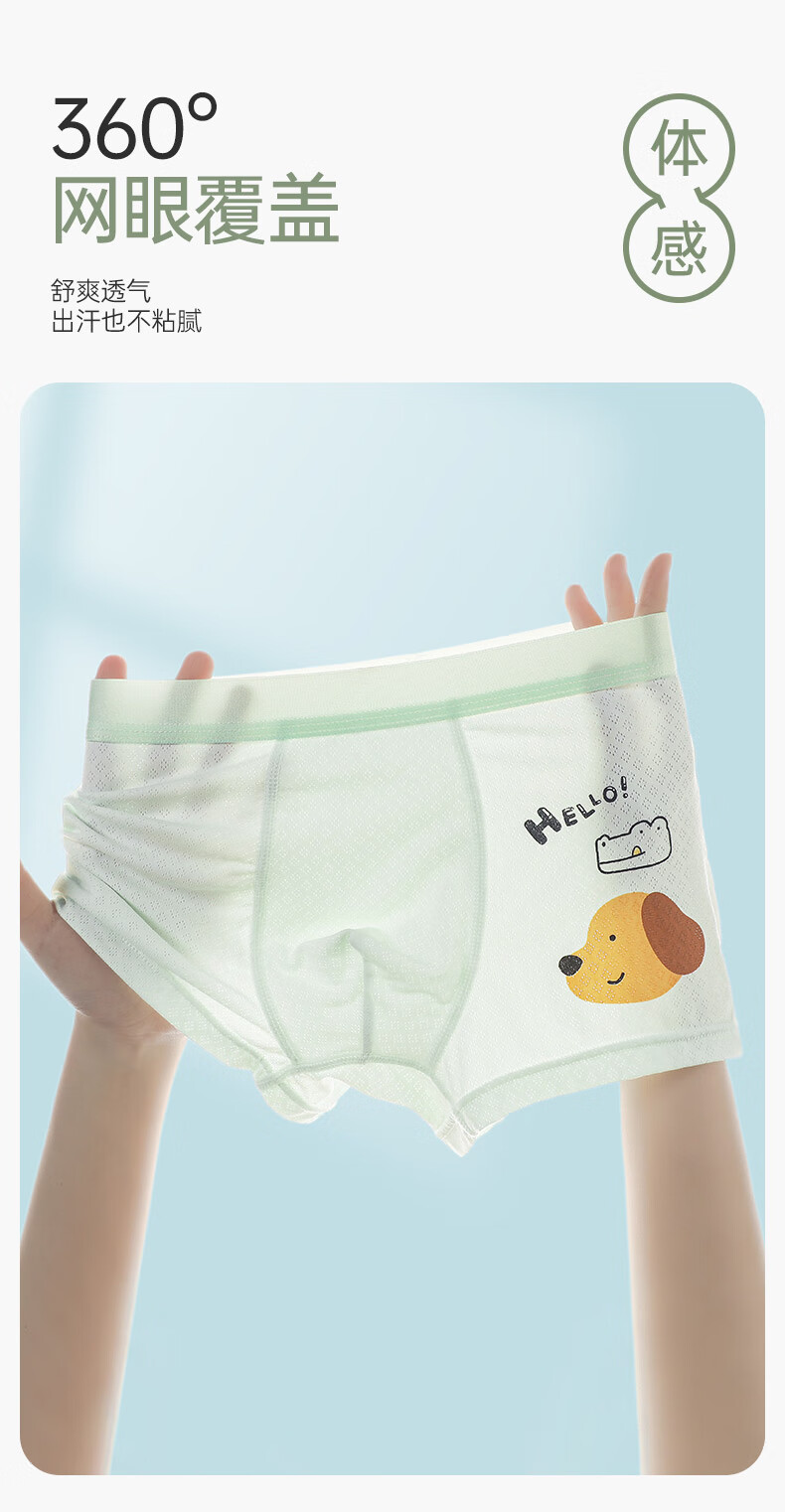 芬腾可安儿童内裤男童2025新款含蚕丝裆网眼冰丝4条装四角内裤亲肤透气 白色/蓝条纹/浅黄/浅绿 4条 120