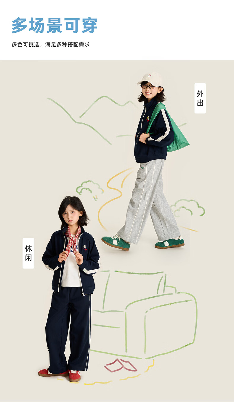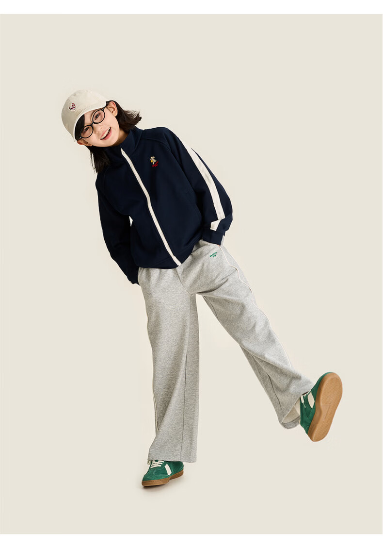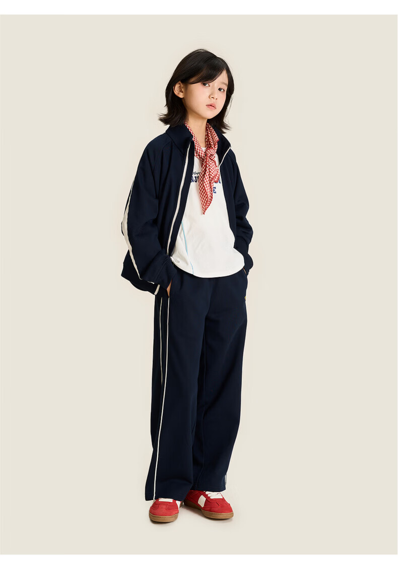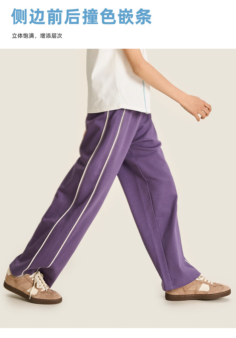 棉叔叔【2026春季新品嵌条直筒裤】女童宽松卫裤户外男童针织校服裤子 紫藤色 120 120