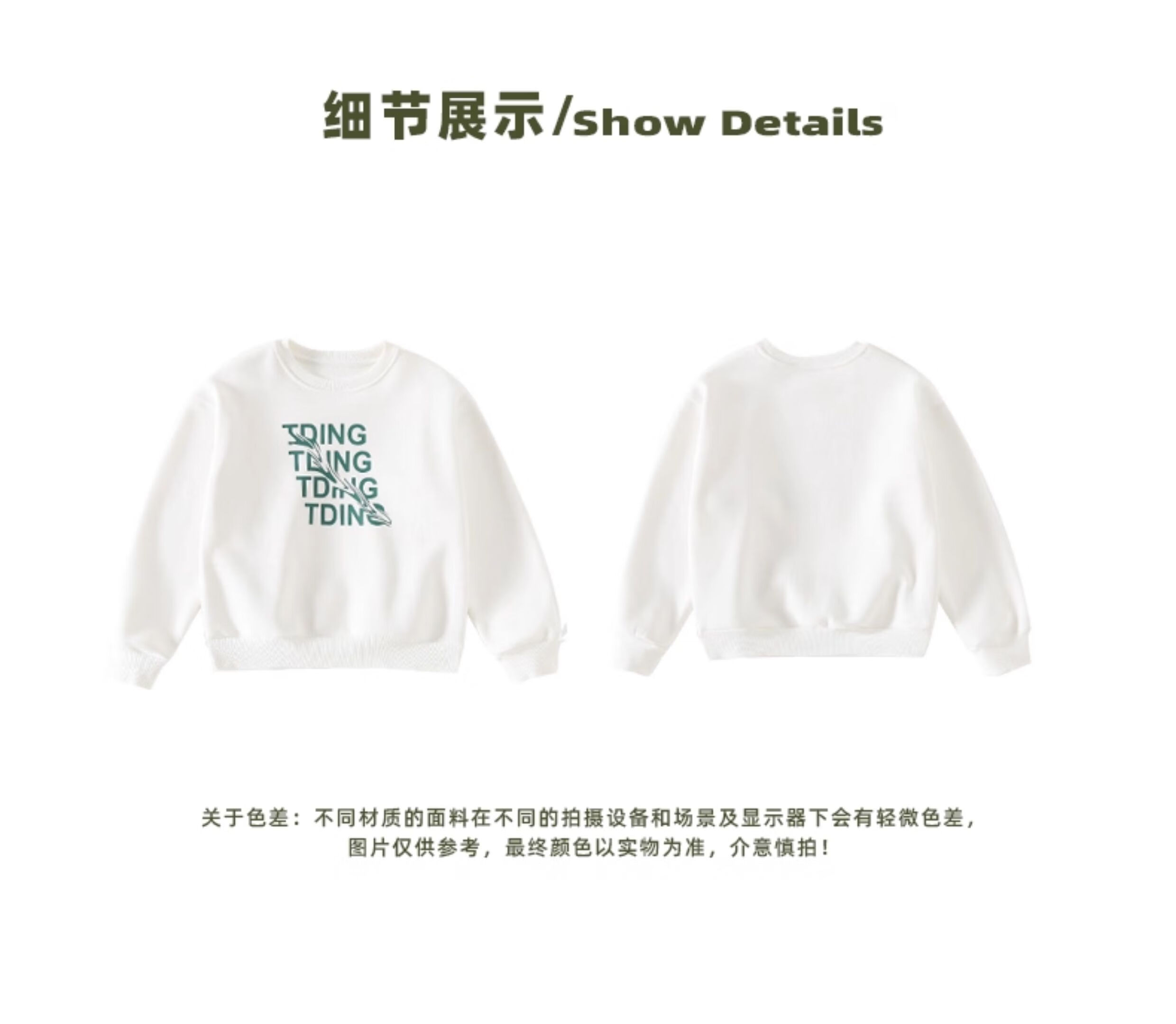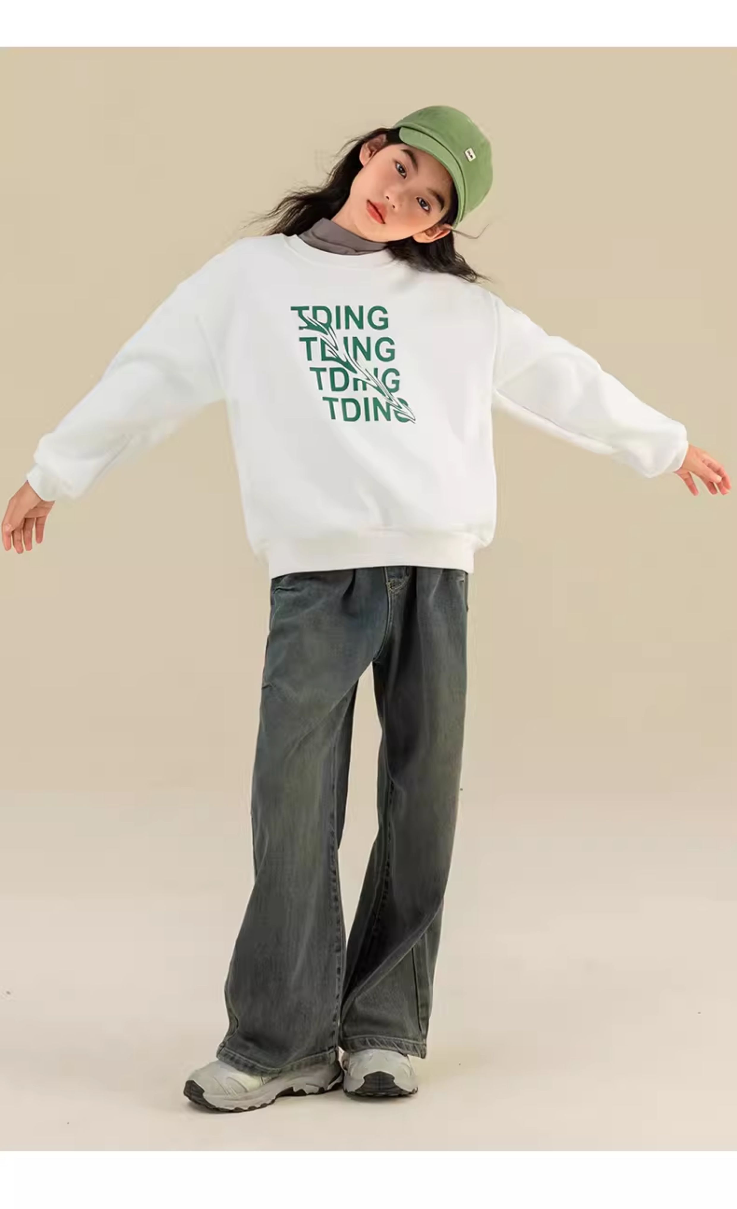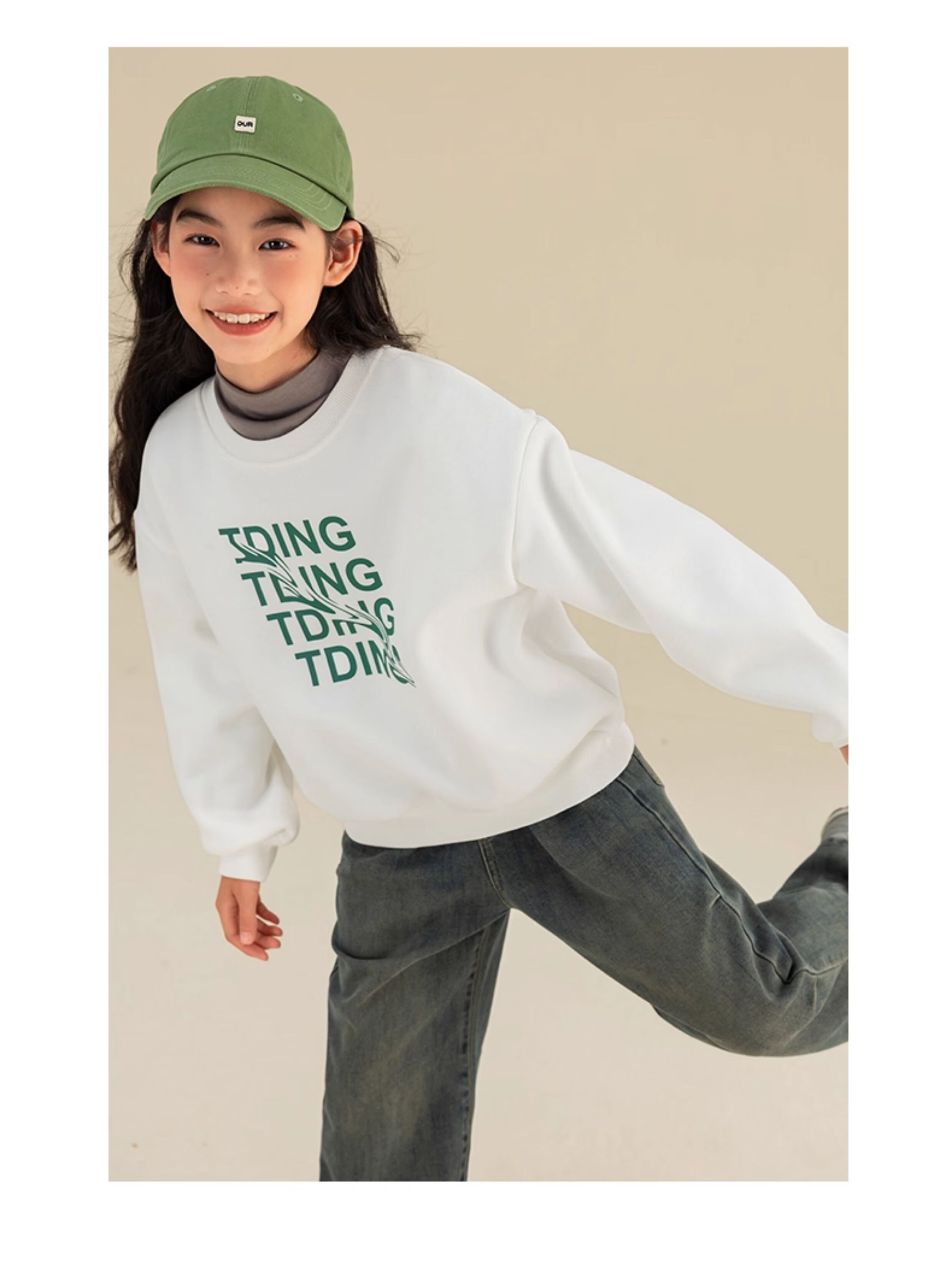 淘町女童卫衣一体绒秋冬中大童休闲百搭波浪字母设计圆领加绒打底 白色 160