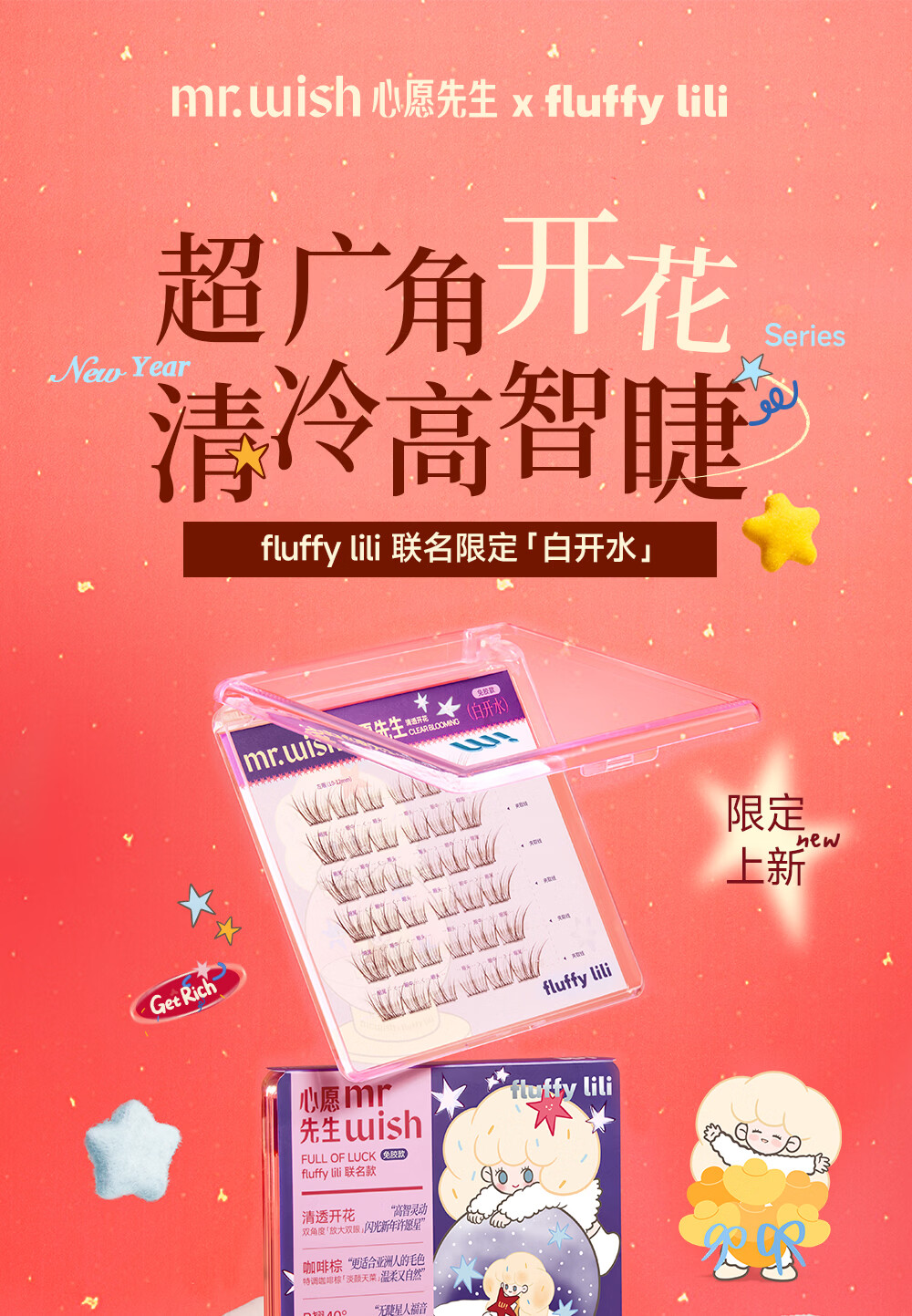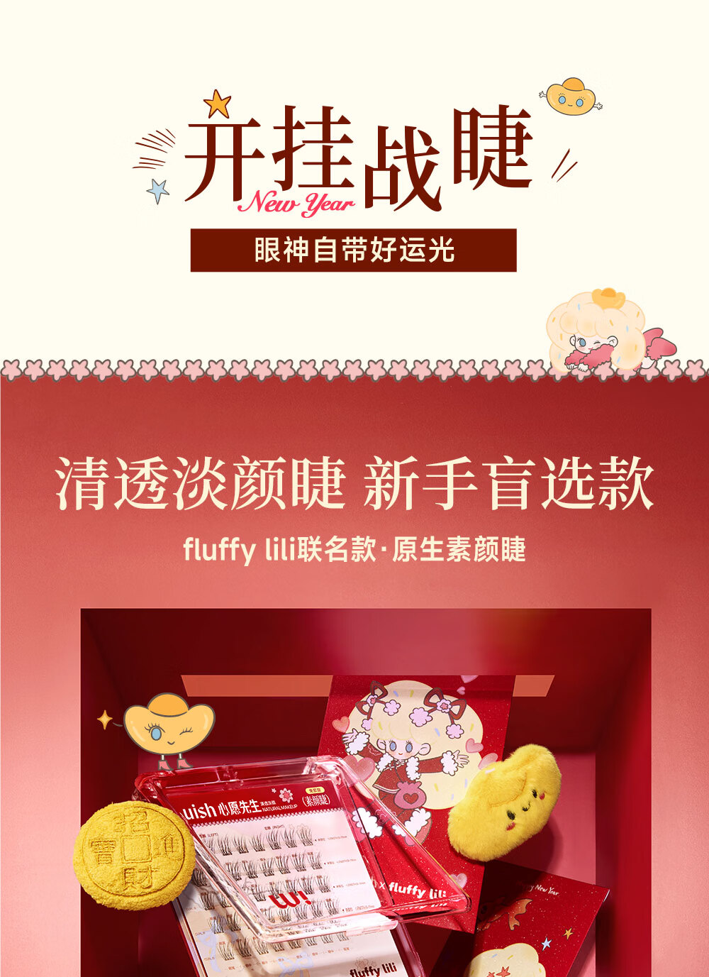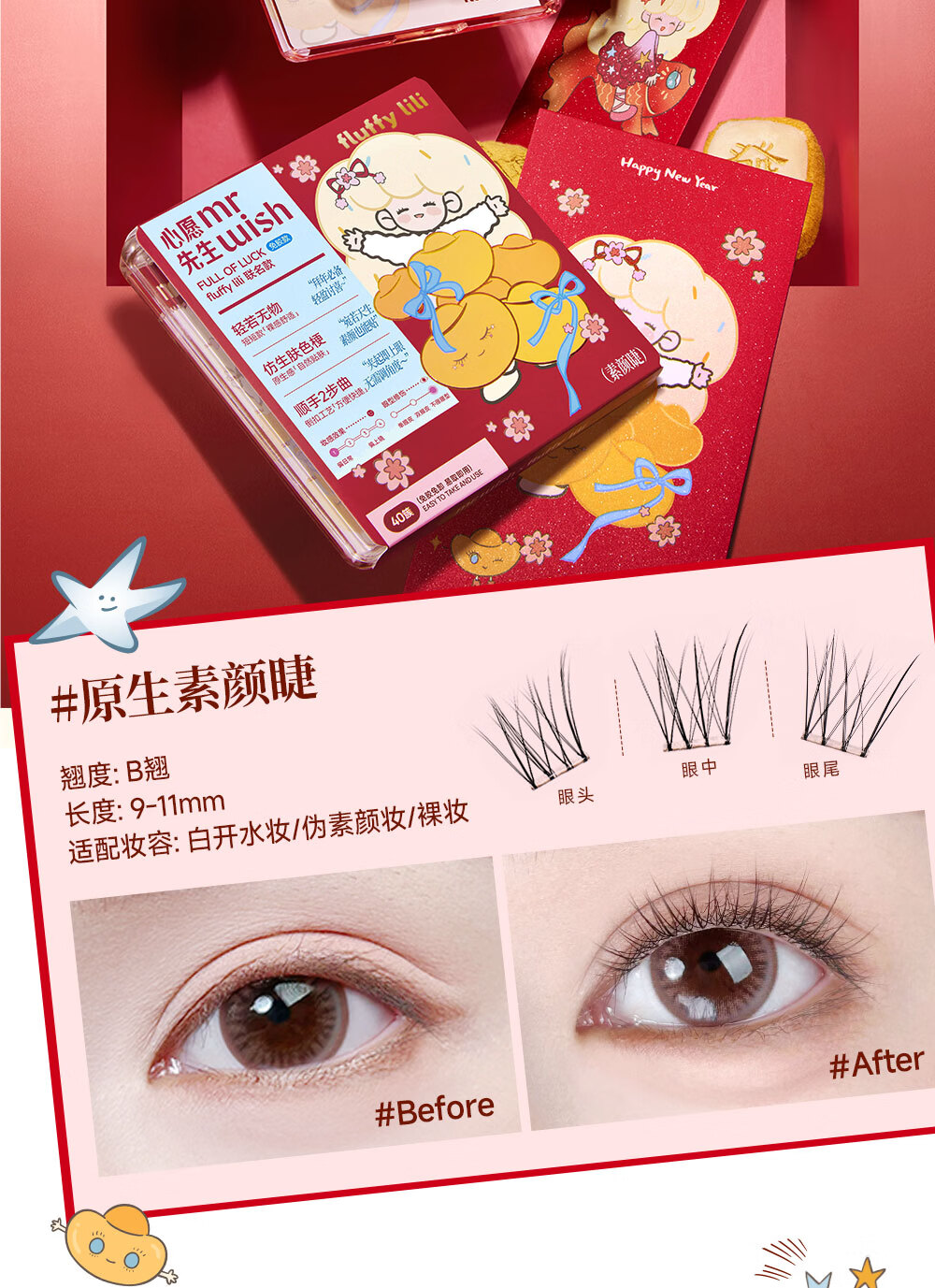 心愿先生免胶假睫毛fluffy lili联名新年款素颜睫白开水白日梦小月兔礼物 免胶小月兔plus96簇+镊子