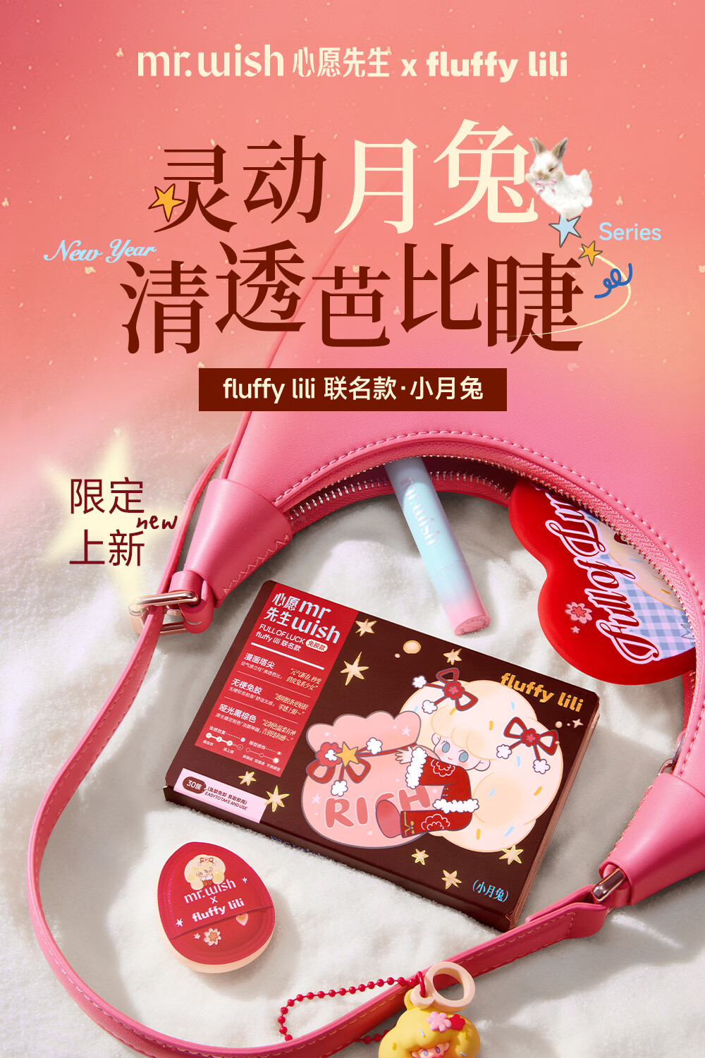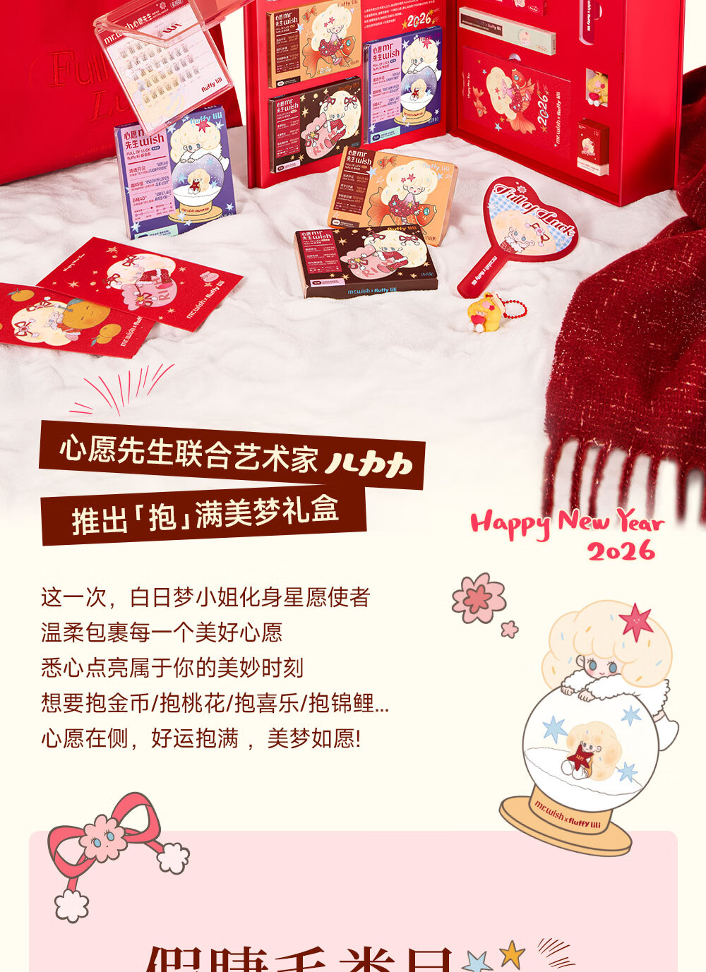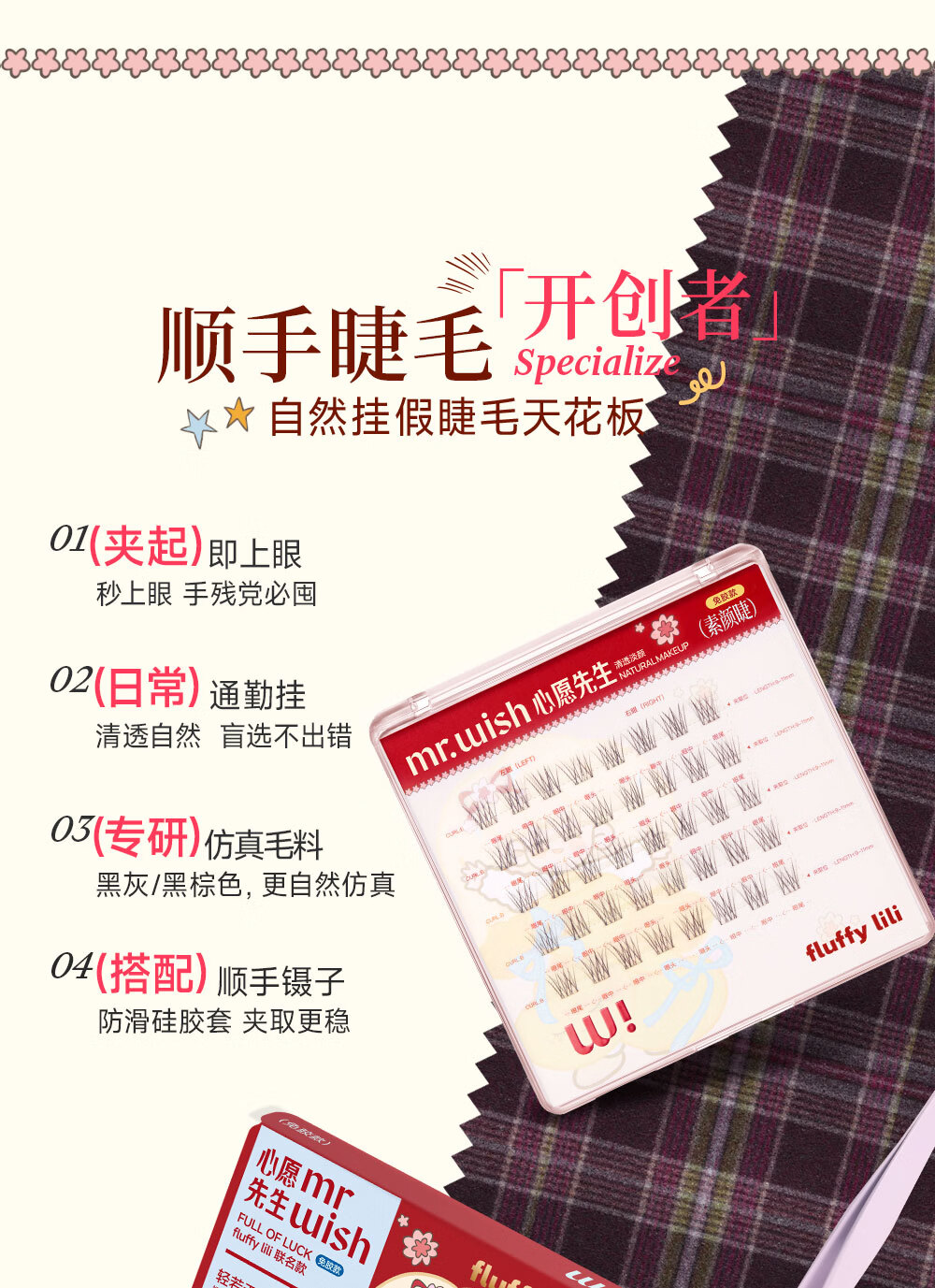 心愿先生免胶假睫毛fluffy lili联名新年款素颜睫白开水白日梦小月兔礼物 免胶小月兔plus96簇+镊子