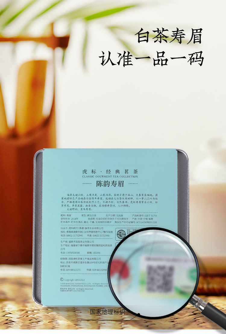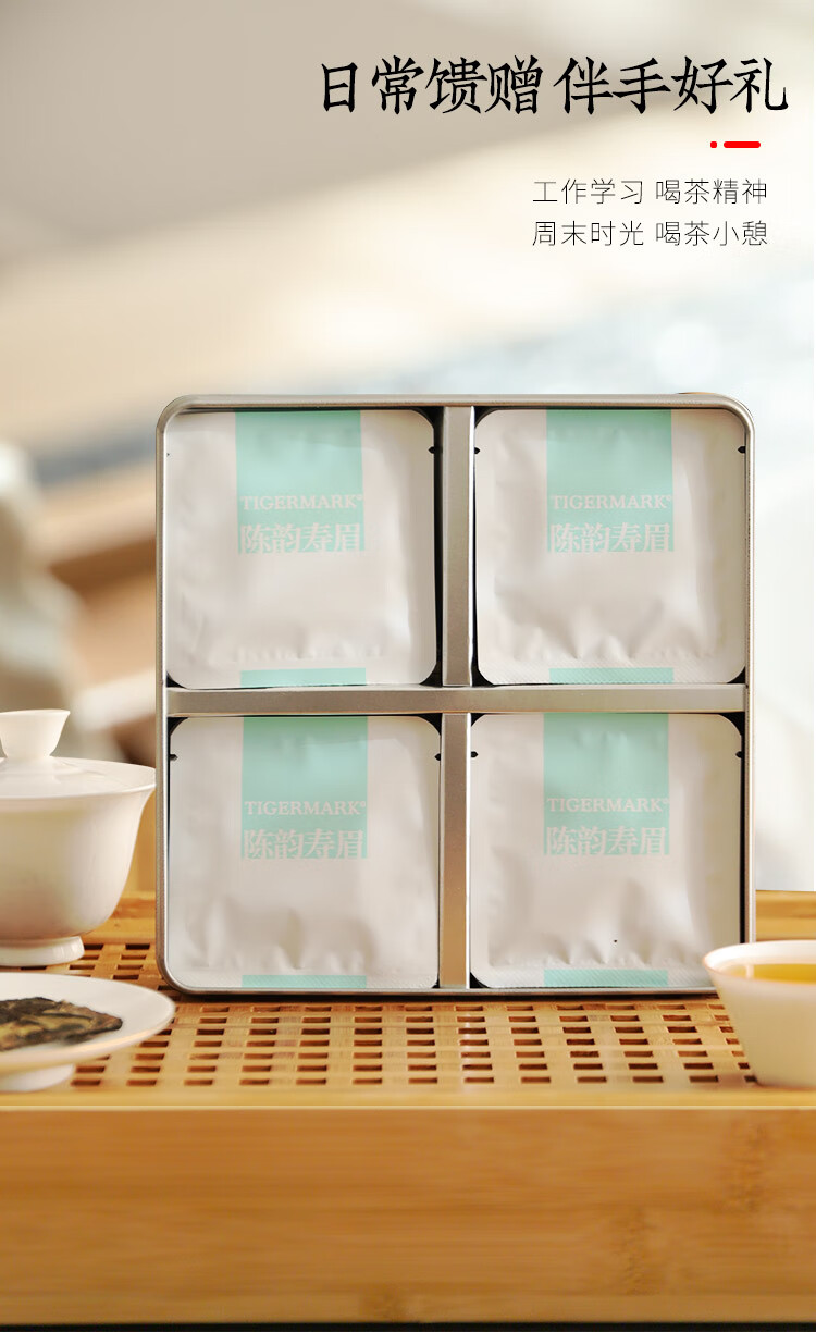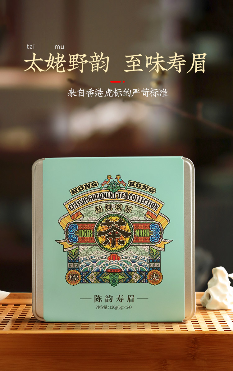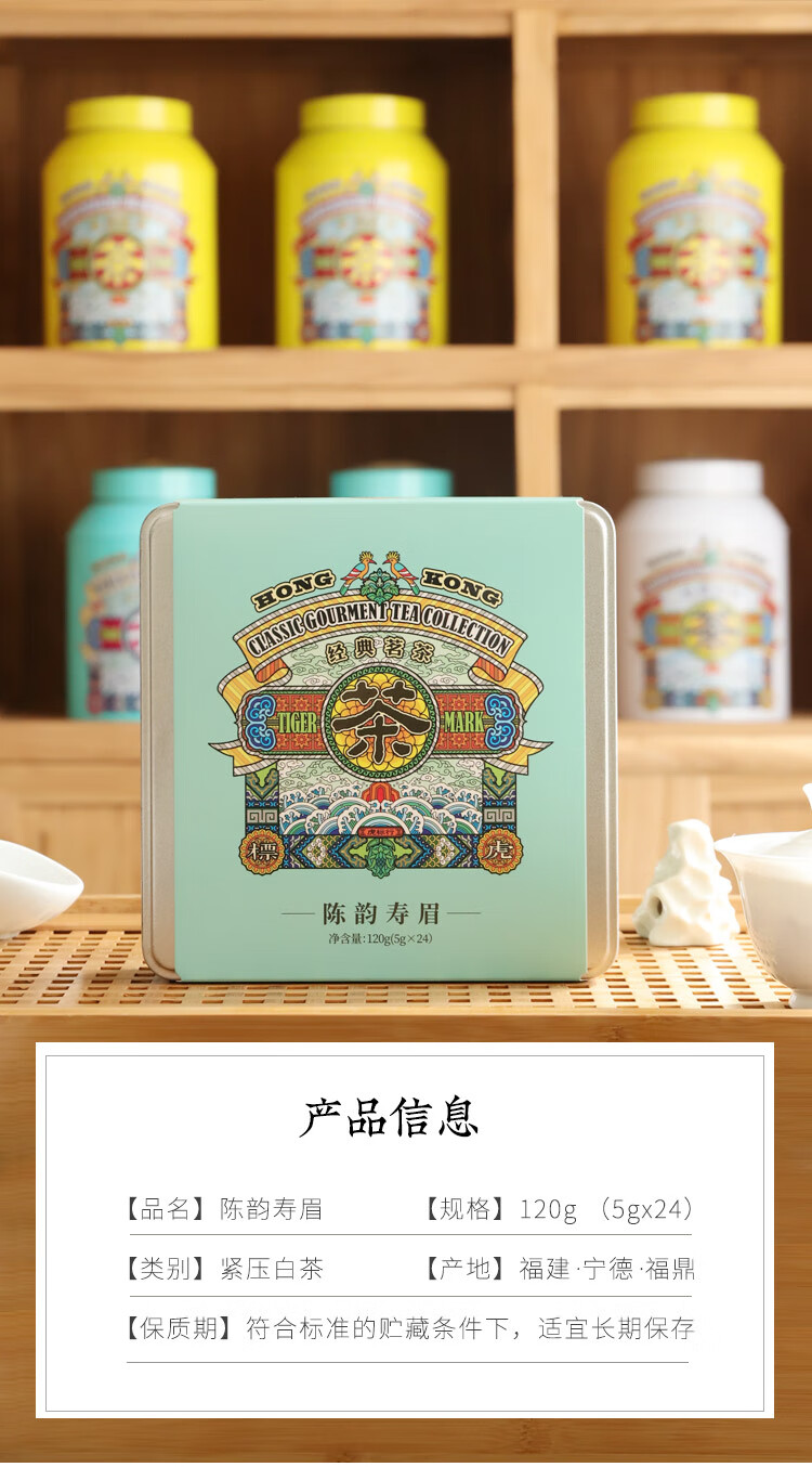 虎标中国香港品牌 白茶 2018年寿眉陈韵寿眉小方片120g铁盒装送礼