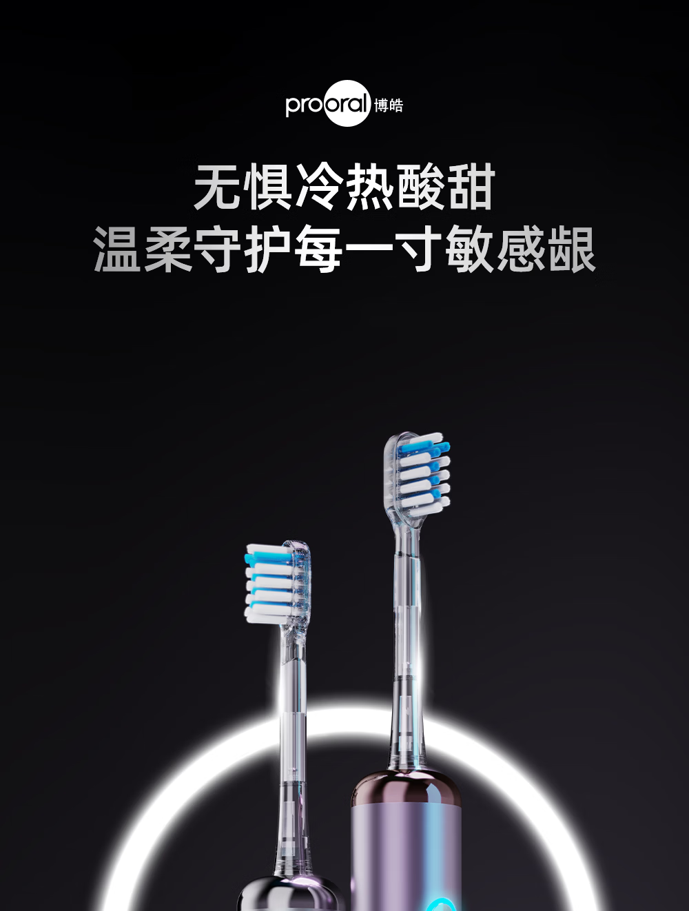 博皓(prooral)情侣电动牙刷扫振成人自动牙刷日常家用智能电动牙刷便携正畸软毛刷头 铝合金磁吸充电 男女士专用 紫色| 3种模式| IPX8级防水