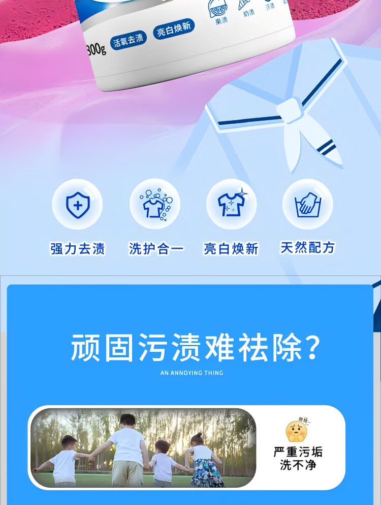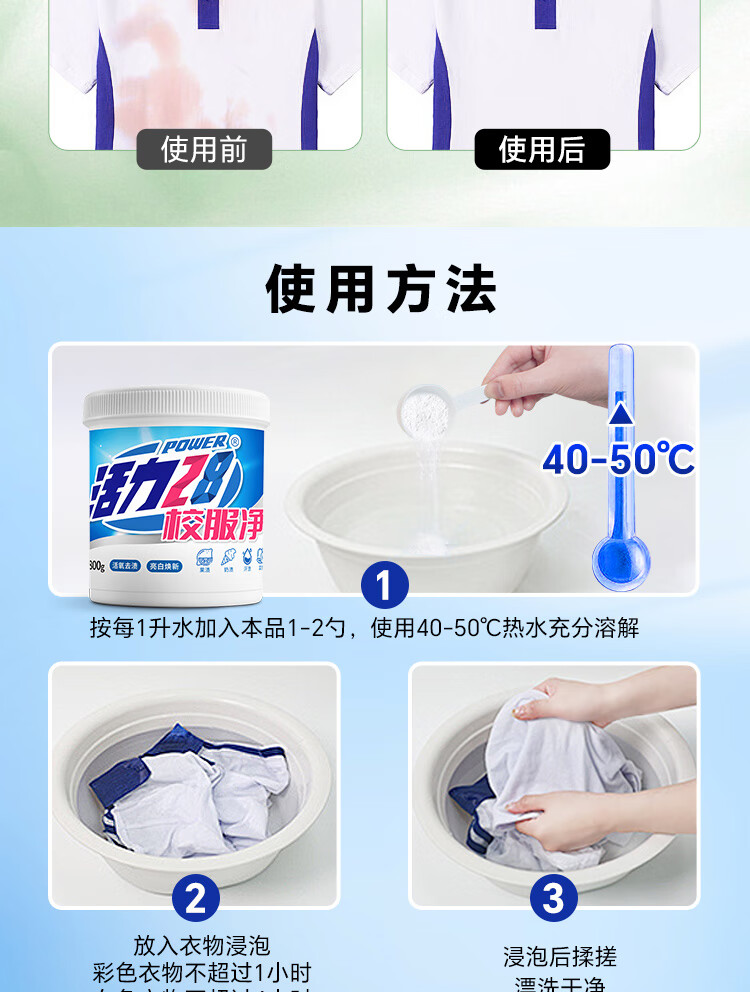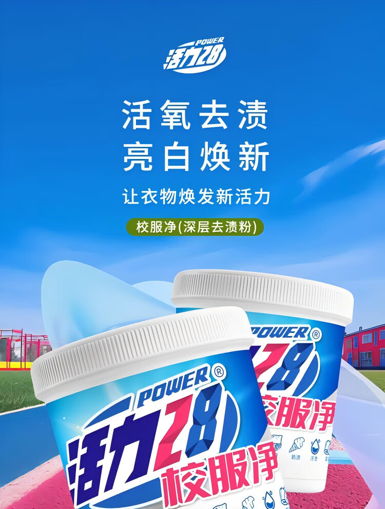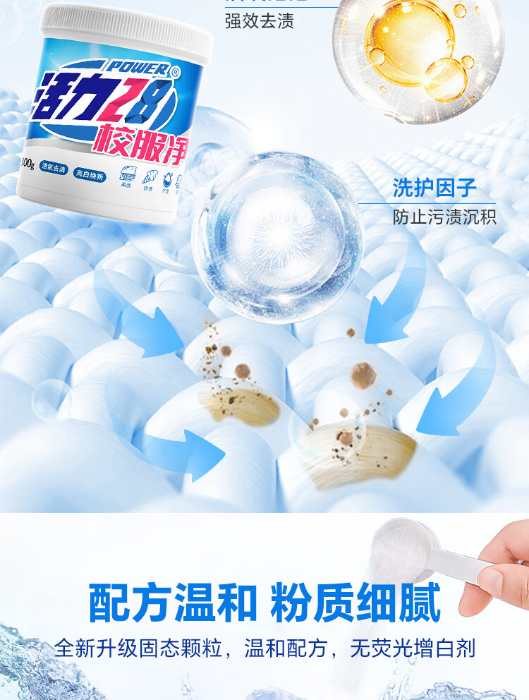 活力28校服净800g桶装 爆炸盐彩漂白粉洗衣粉 活氧亮白去黄去污渍神器