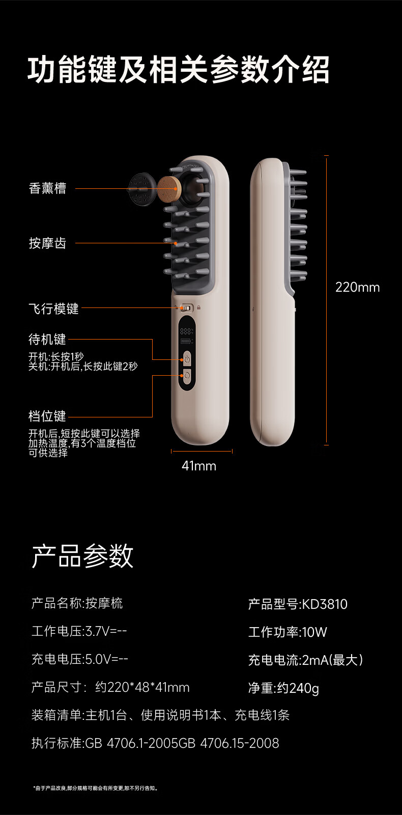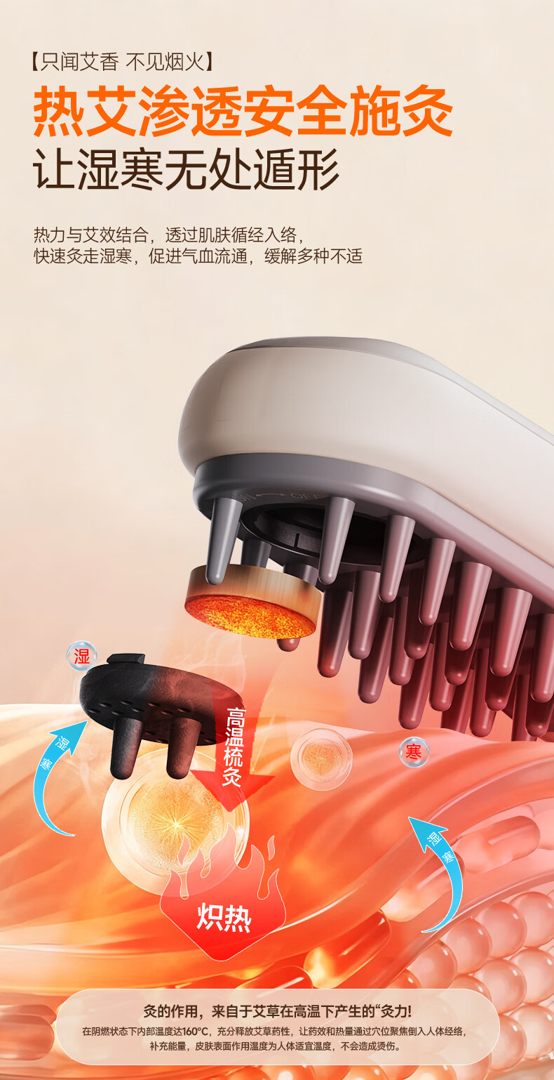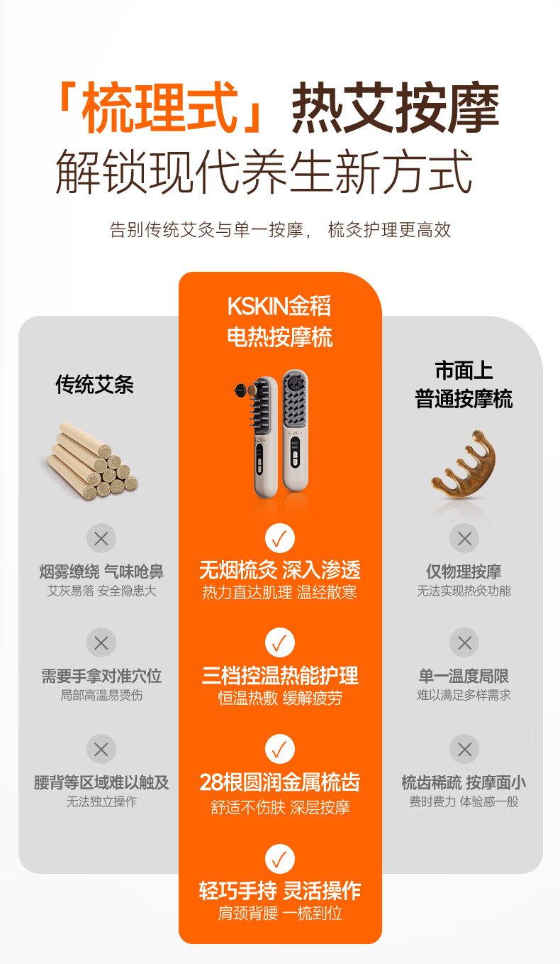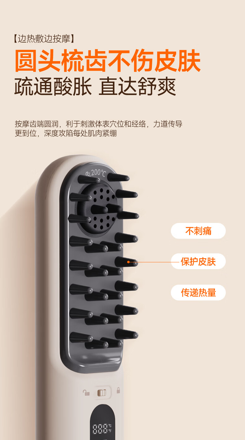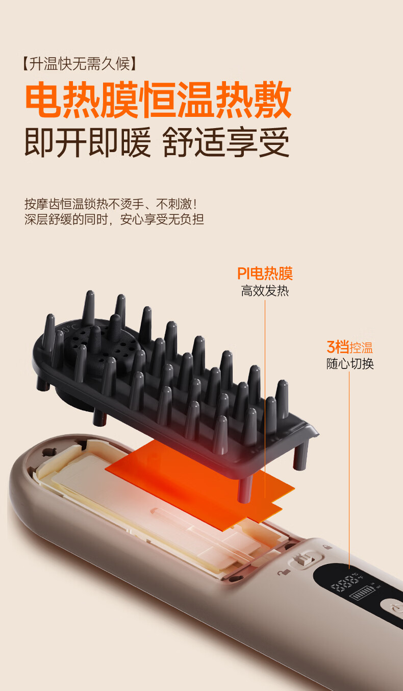 金稻电动按摩梳全身通用热敷疏通舒缓加热养生梳头部按摩器【长辈送礼首选】 金稻温热电动按摩梳【长辈送礼首选】