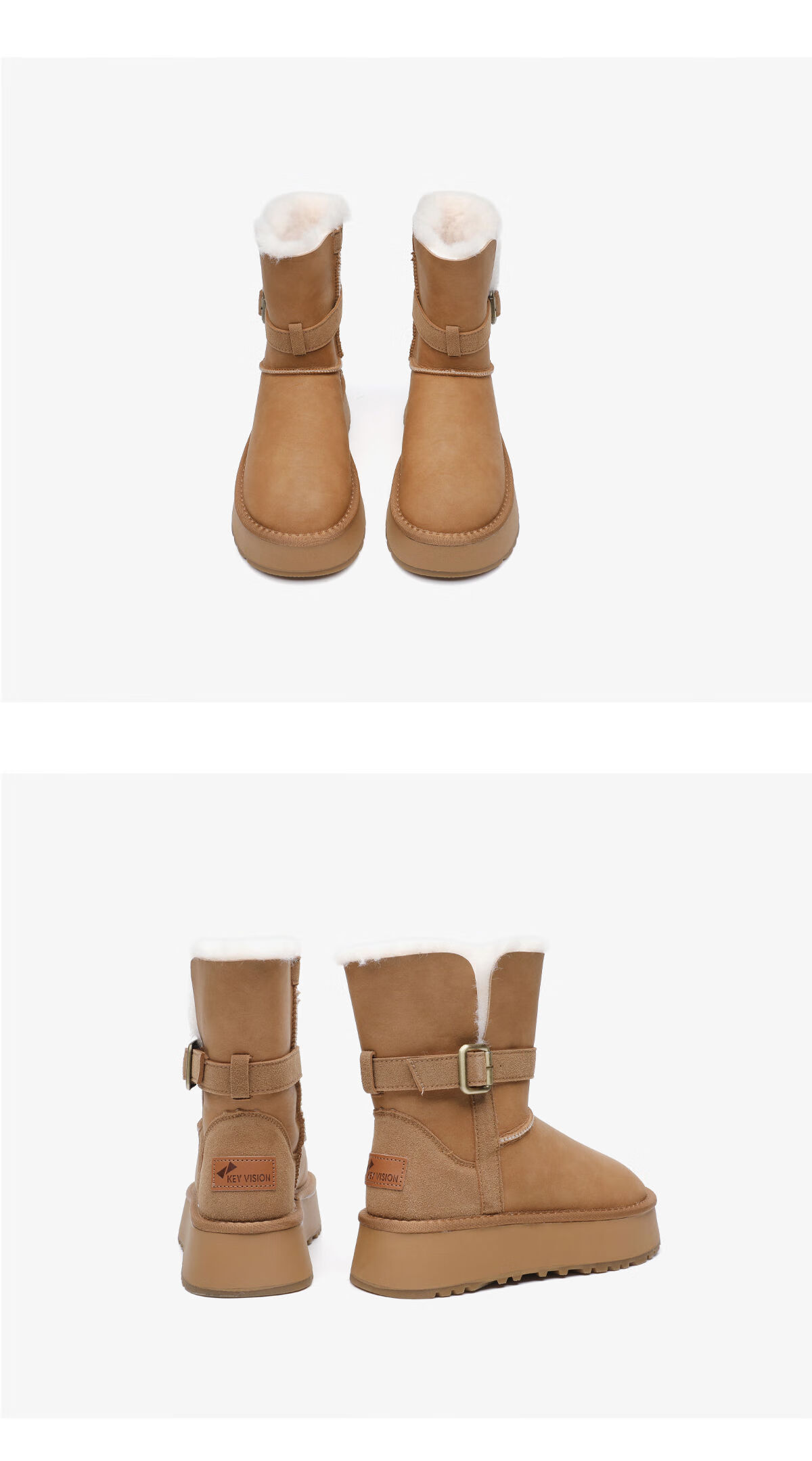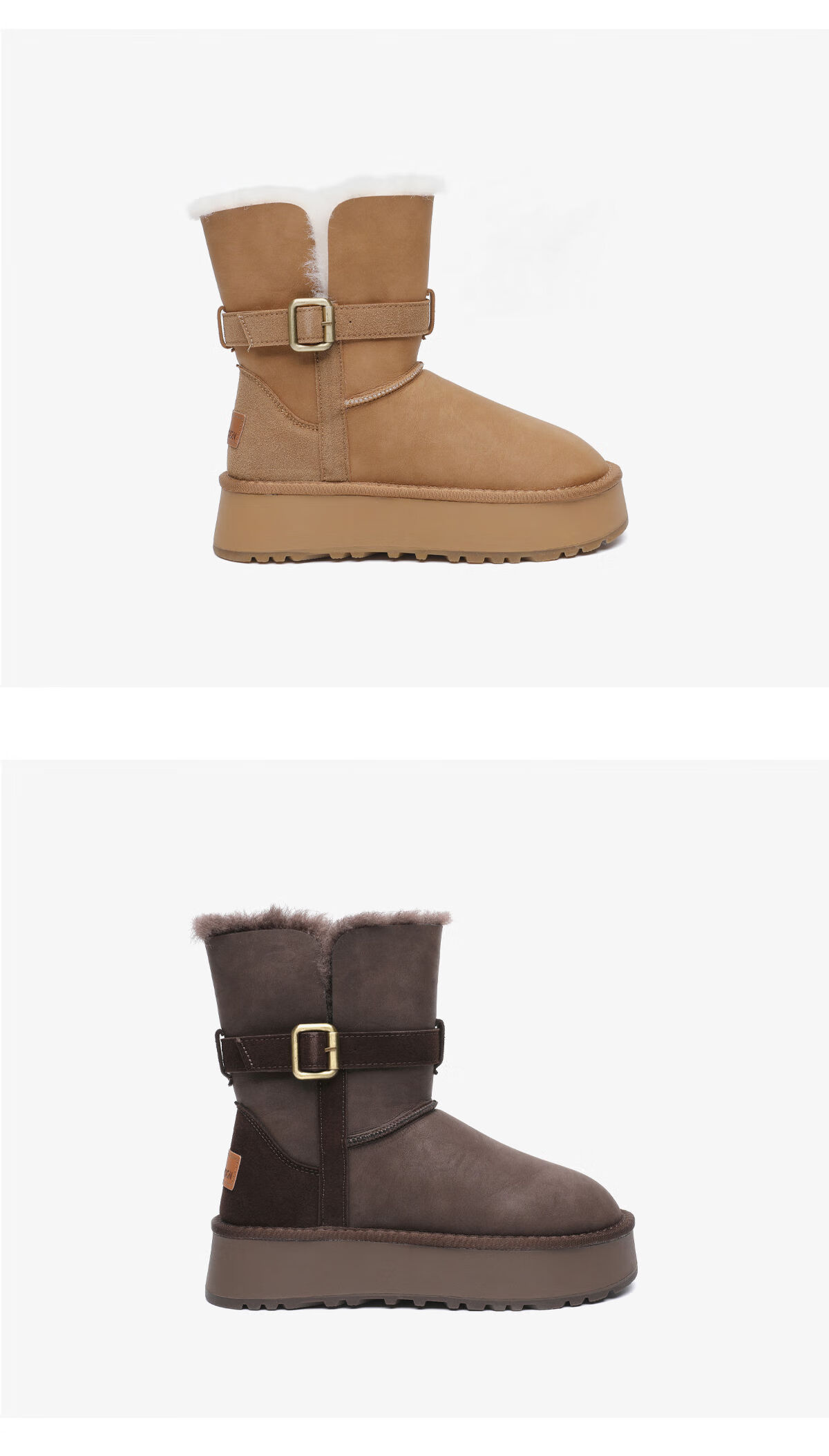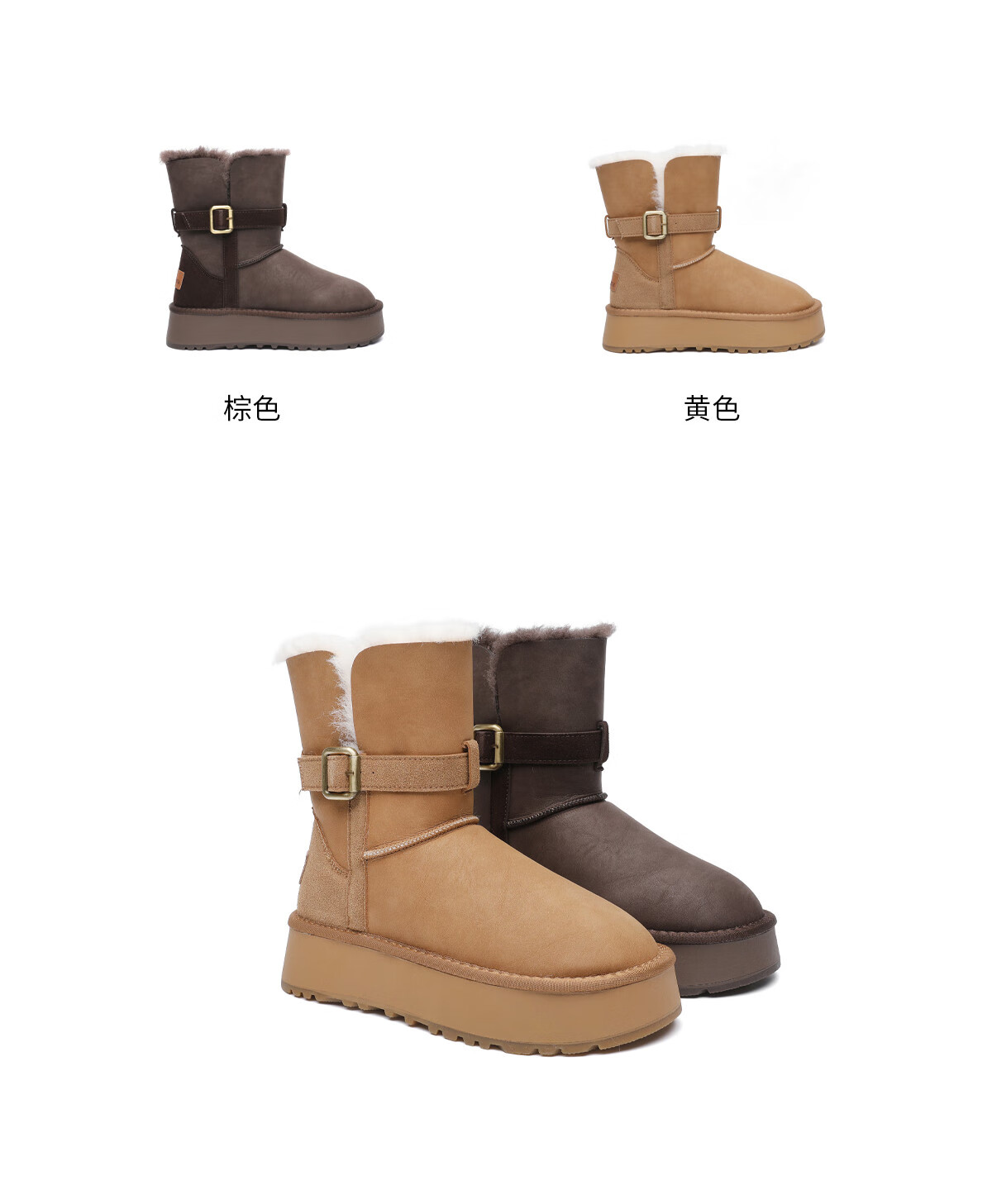月芽儿加绒雪地靴女2025新款冬季加厚保暖合成革鞋复古皮带扣短靴 绒里棕色03T 34