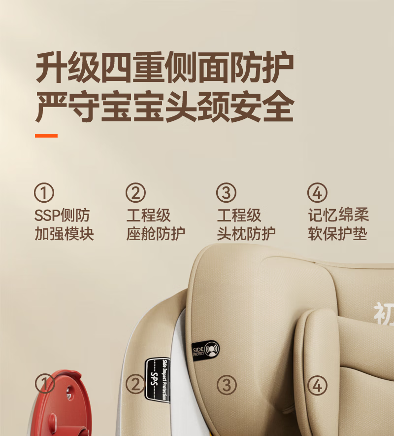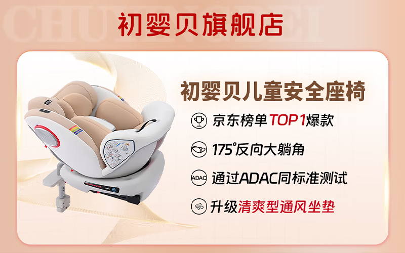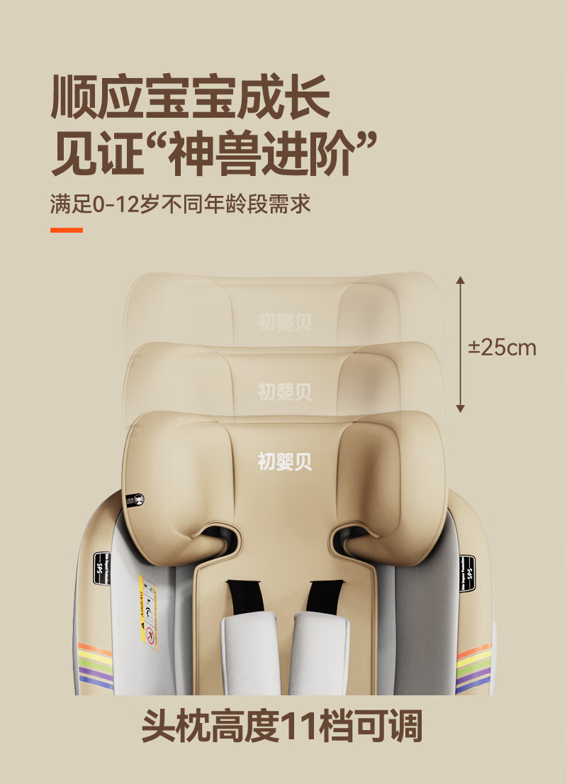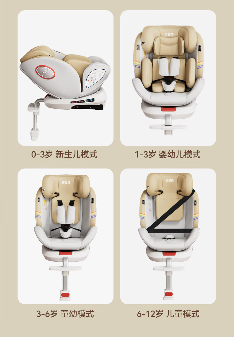 初婴贝儿童安全座椅汽车用0-4-12岁婴儿宝宝车载可坐可躺i-Size通风加热 悦享版金+通风加热+支撑腿+遮阳棚+175°躺