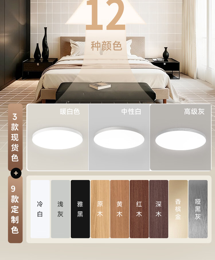 卡伯森设计师款意式极简卧室吸顶灯现代轻奢大气高档全光谱护眼书房灯 黑色-直径50*高8CM【三色变光】