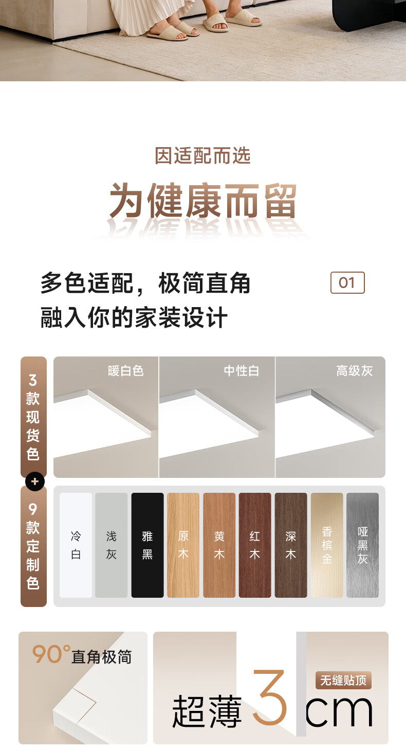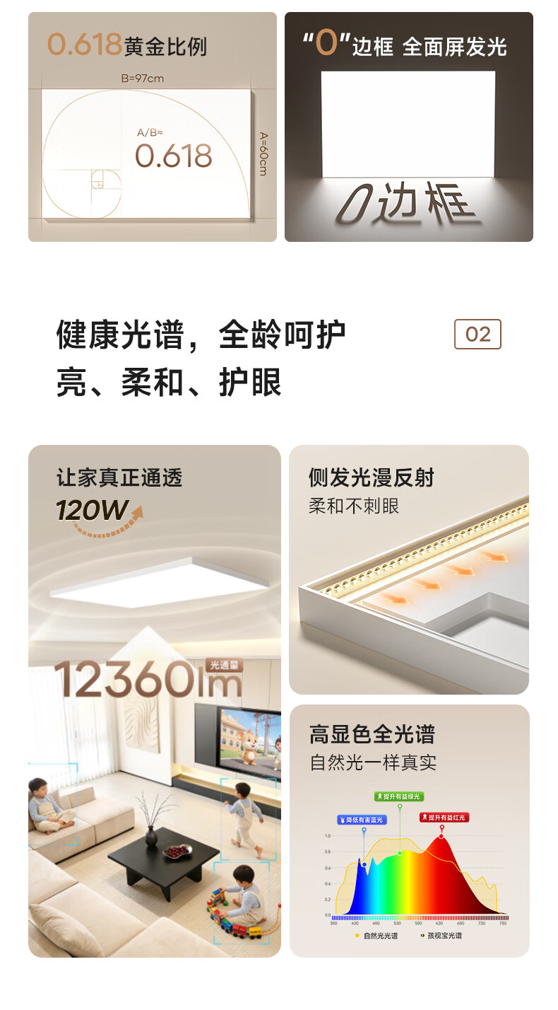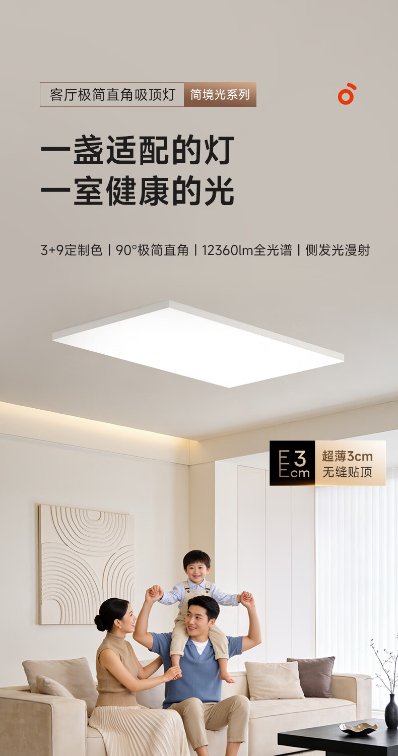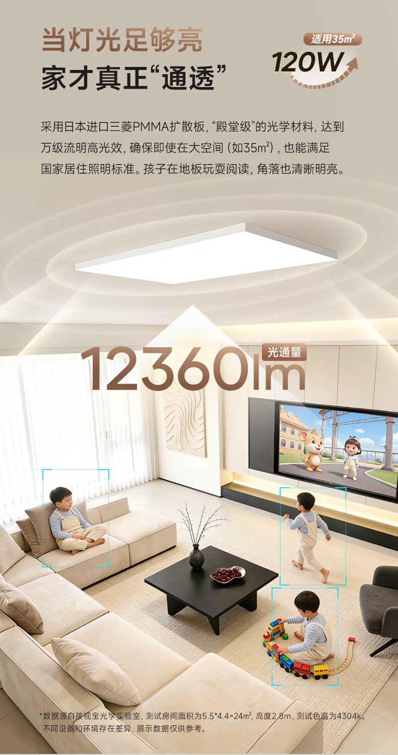 孩视宝简境光·全光谱护眼吸顶灯3cm超薄极简无缝智能客厅卧室书房灯具 120W 35㎡内适用 12360lm 【简境光客厅】暖白-智能款