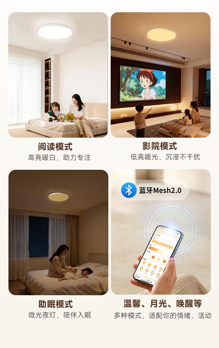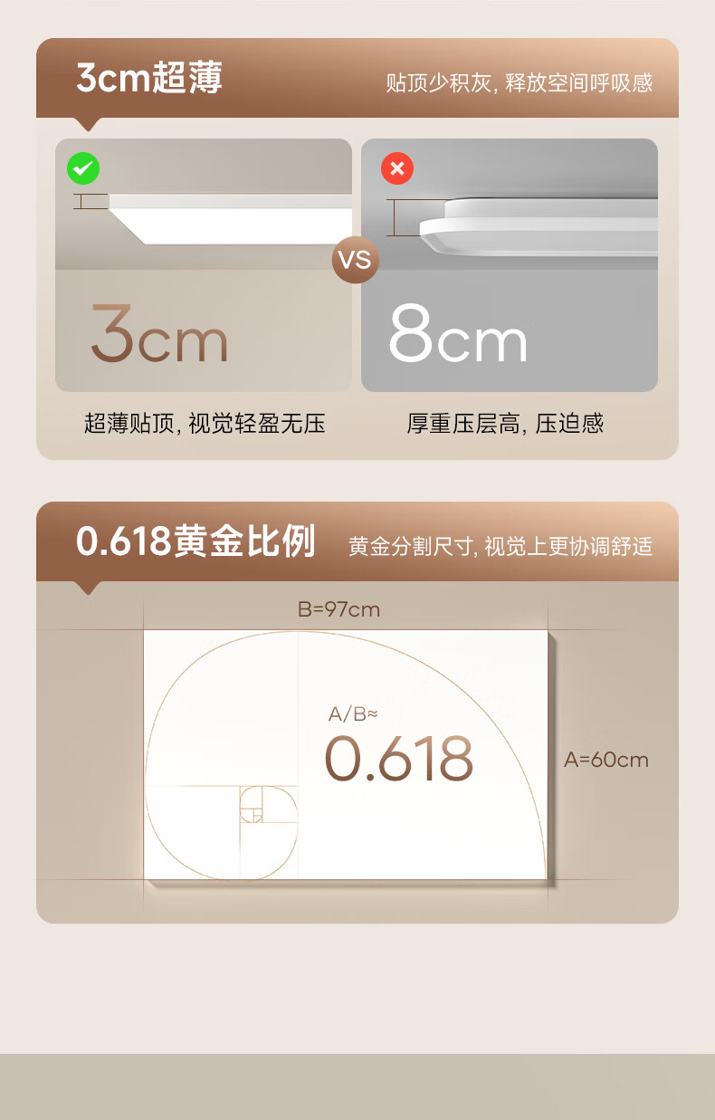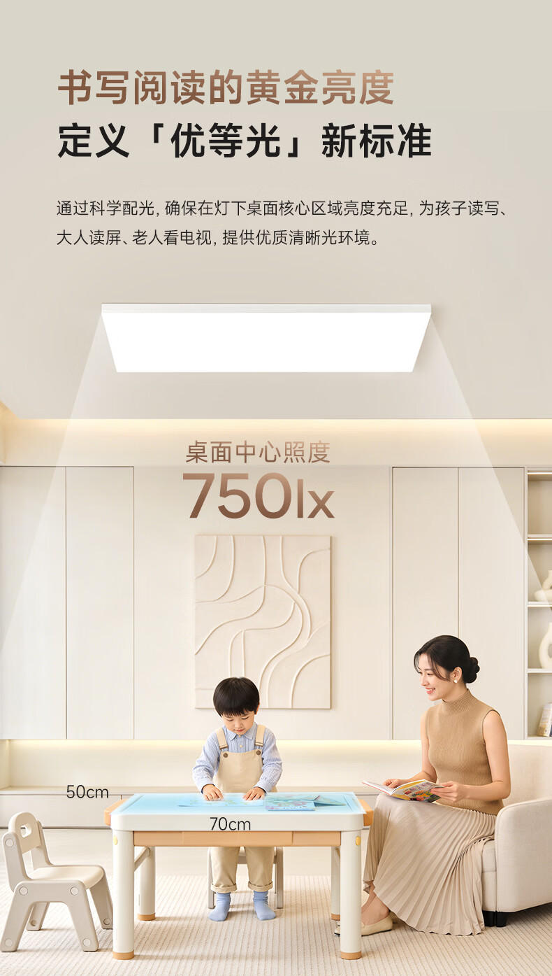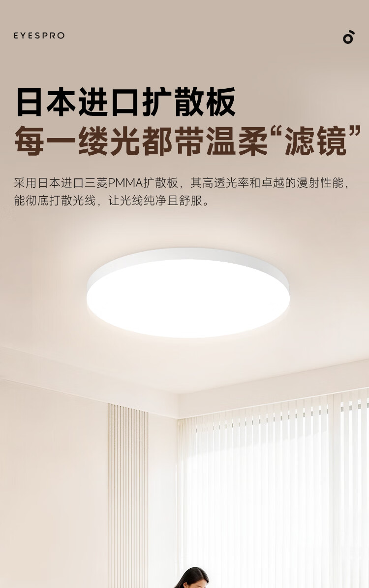 孩视宝简境光·全光谱护眼吸顶灯3cm超薄极简无缝智能客厅卧室书房灯具 120W 35㎡内适用 12360lm 【简境光客厅】暖白-智能款