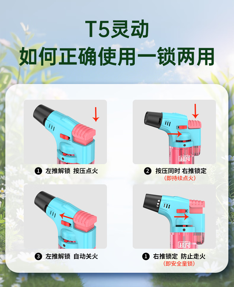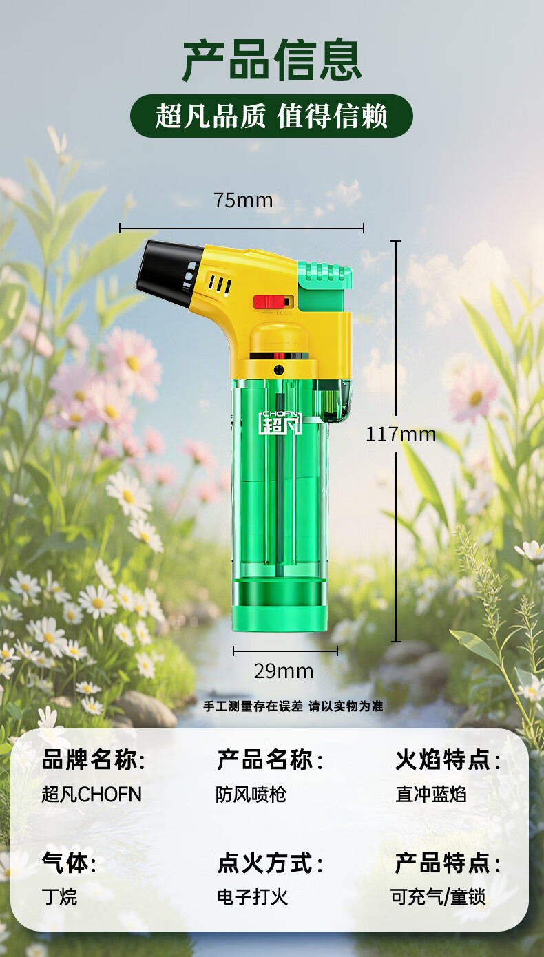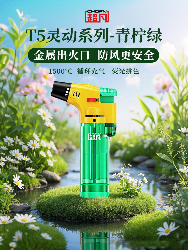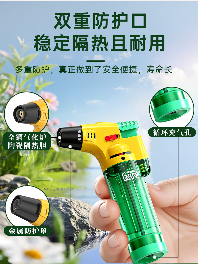 超凡防风打火机点火器喷火器喷枪充气点艾灸雪茄点烟器 青柠绿3支