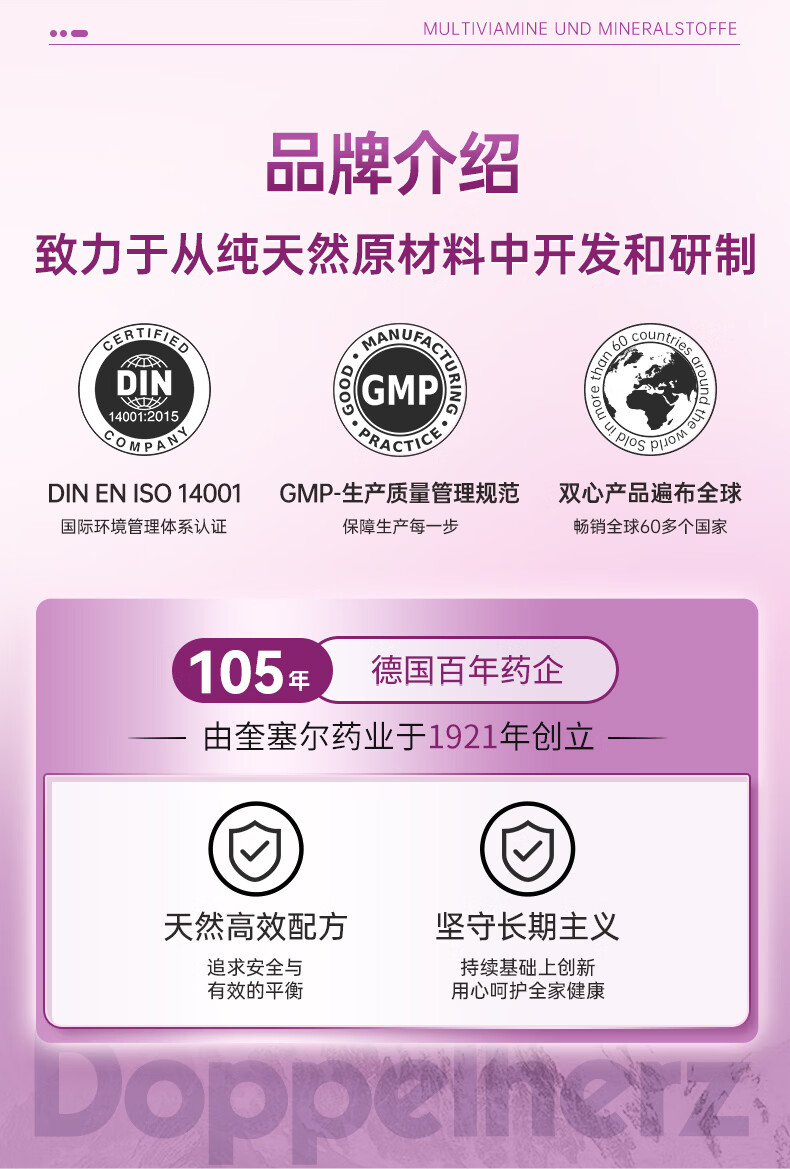 双心(Doppel herz)复合维生素矿物质片16种多维烟酰胺叶酸补充活力 蓝帽认证 男士复合多维 60粒*2盒 【1周期】