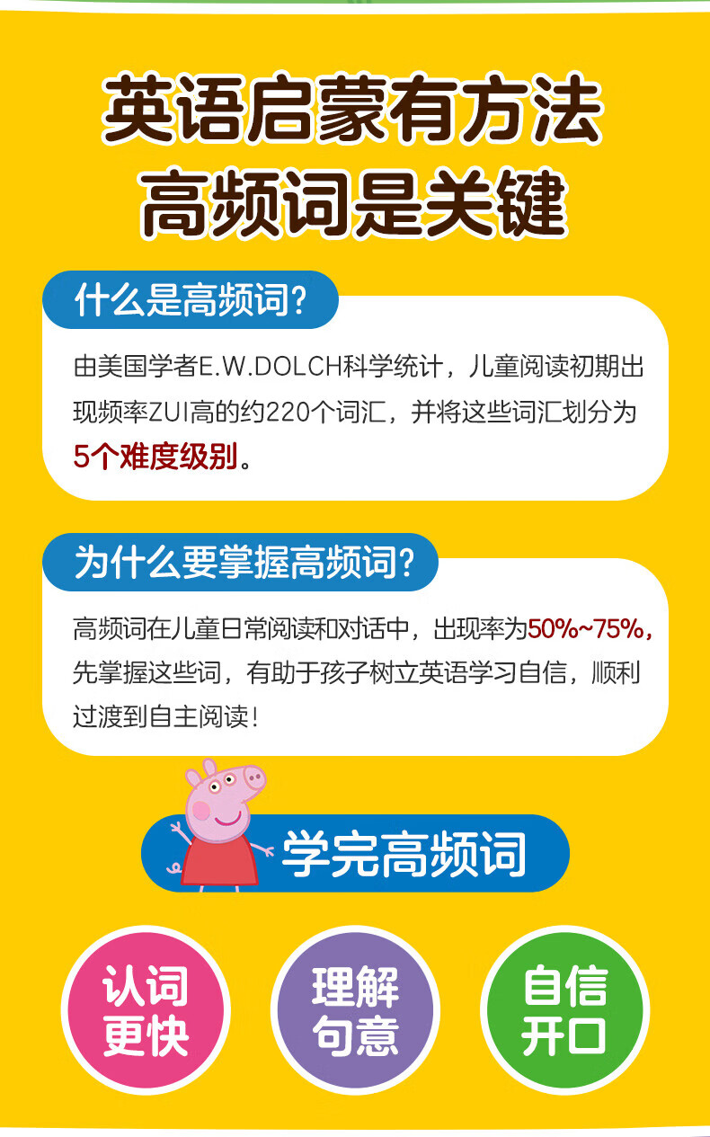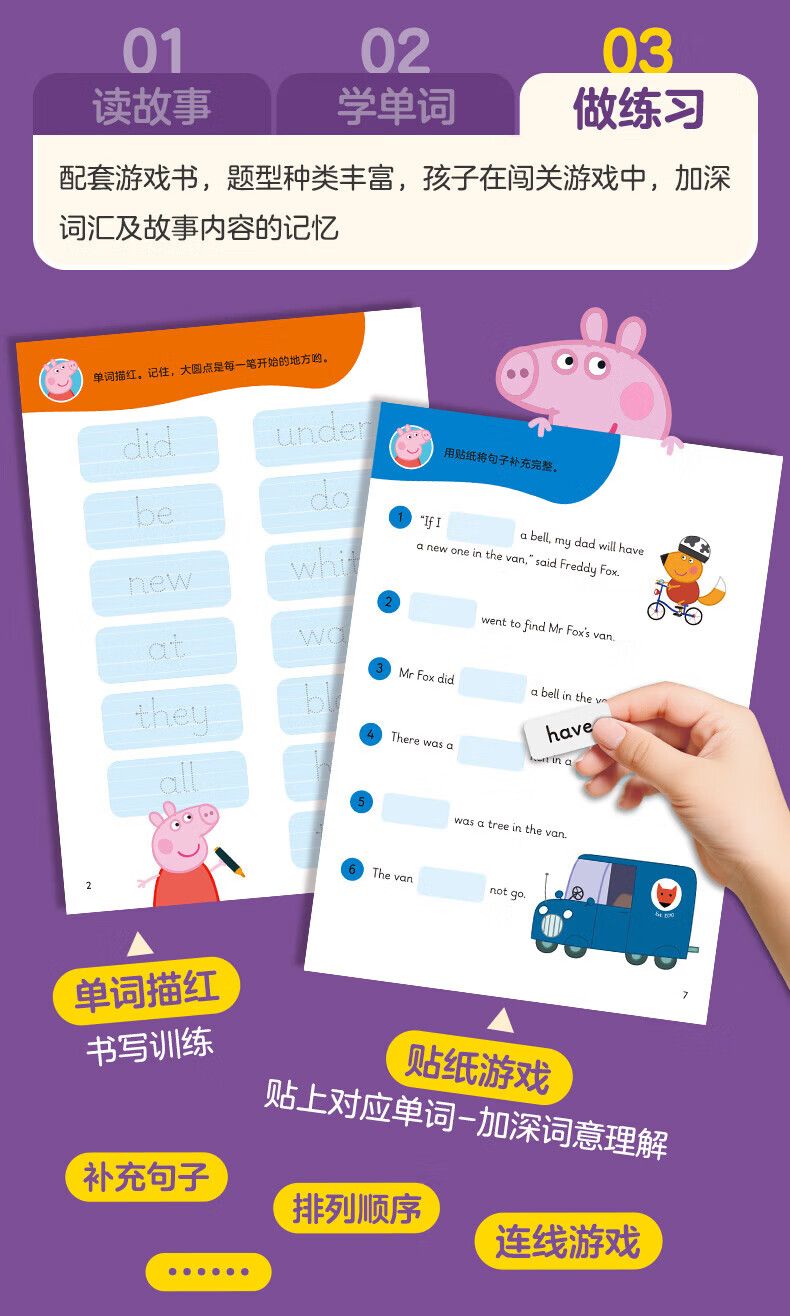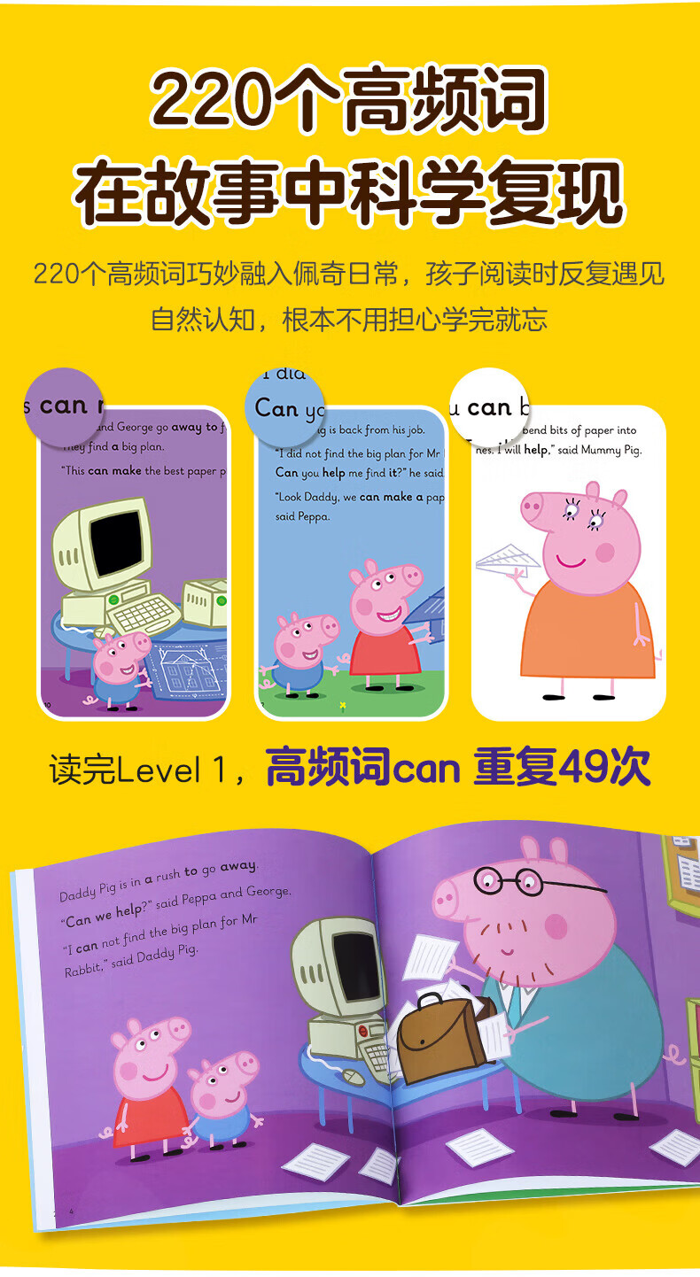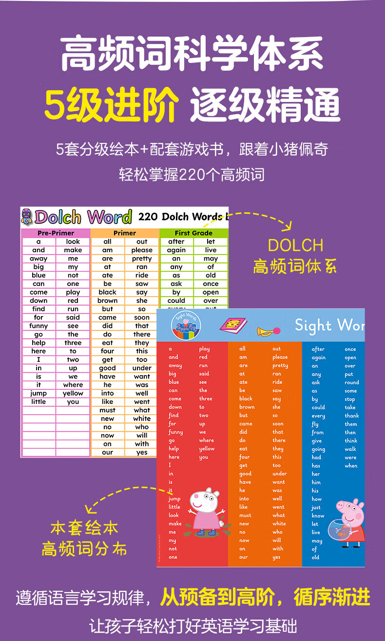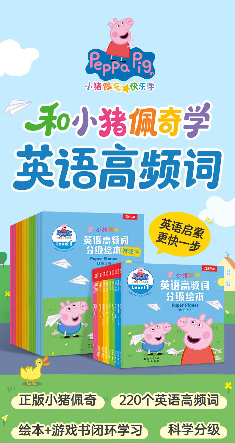 【任选】 小猪佩奇英语高频词分级绘本英语教材英语阅读宝宝早教2-6-8岁儿童启蒙读物幼儿园发音口语能力 (8册)小猪佩奇英语高频词绘本1+游戏书