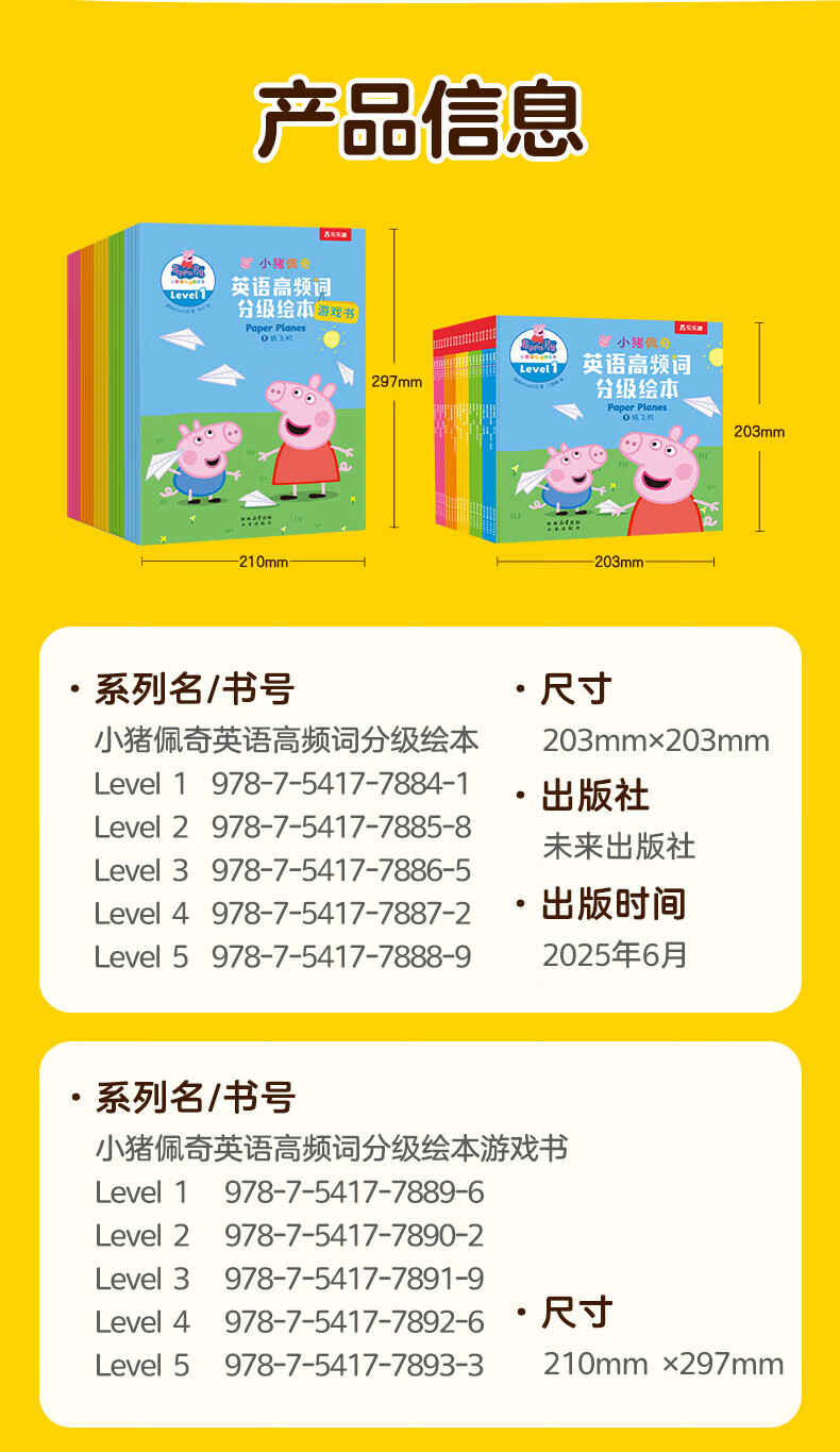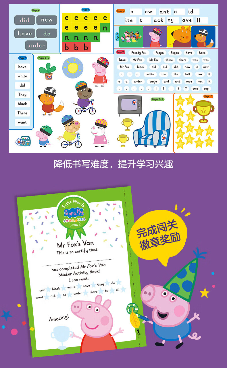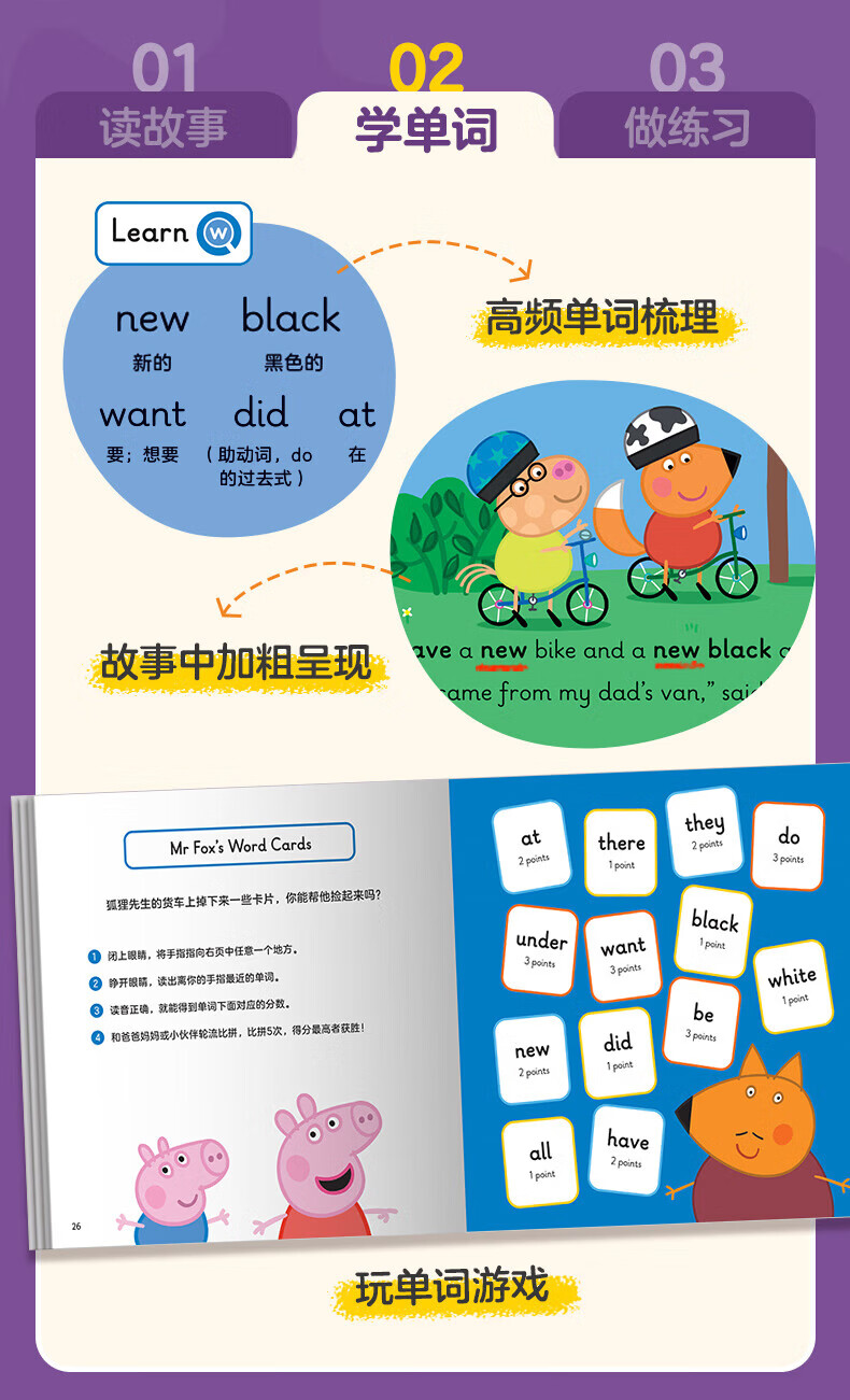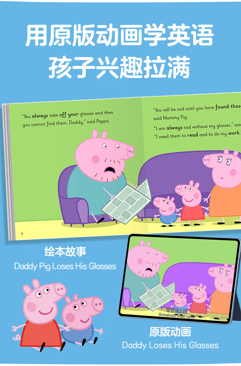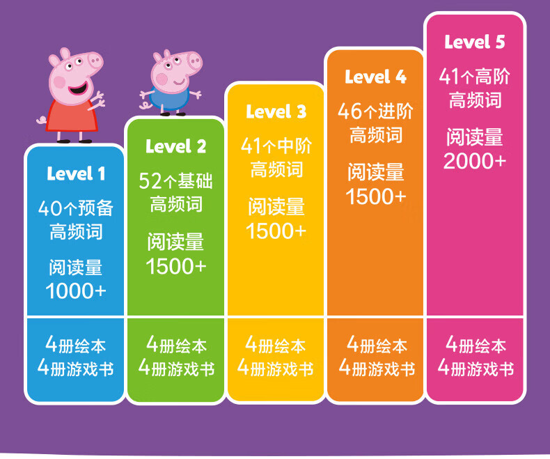 【任选】 小猪佩奇英语高频词分级绘本英语教材英语阅读宝宝早教2-6-8岁儿童启蒙读物幼儿园发音口语能力 (8册)小猪佩奇英语高频词绘本1+游戏书