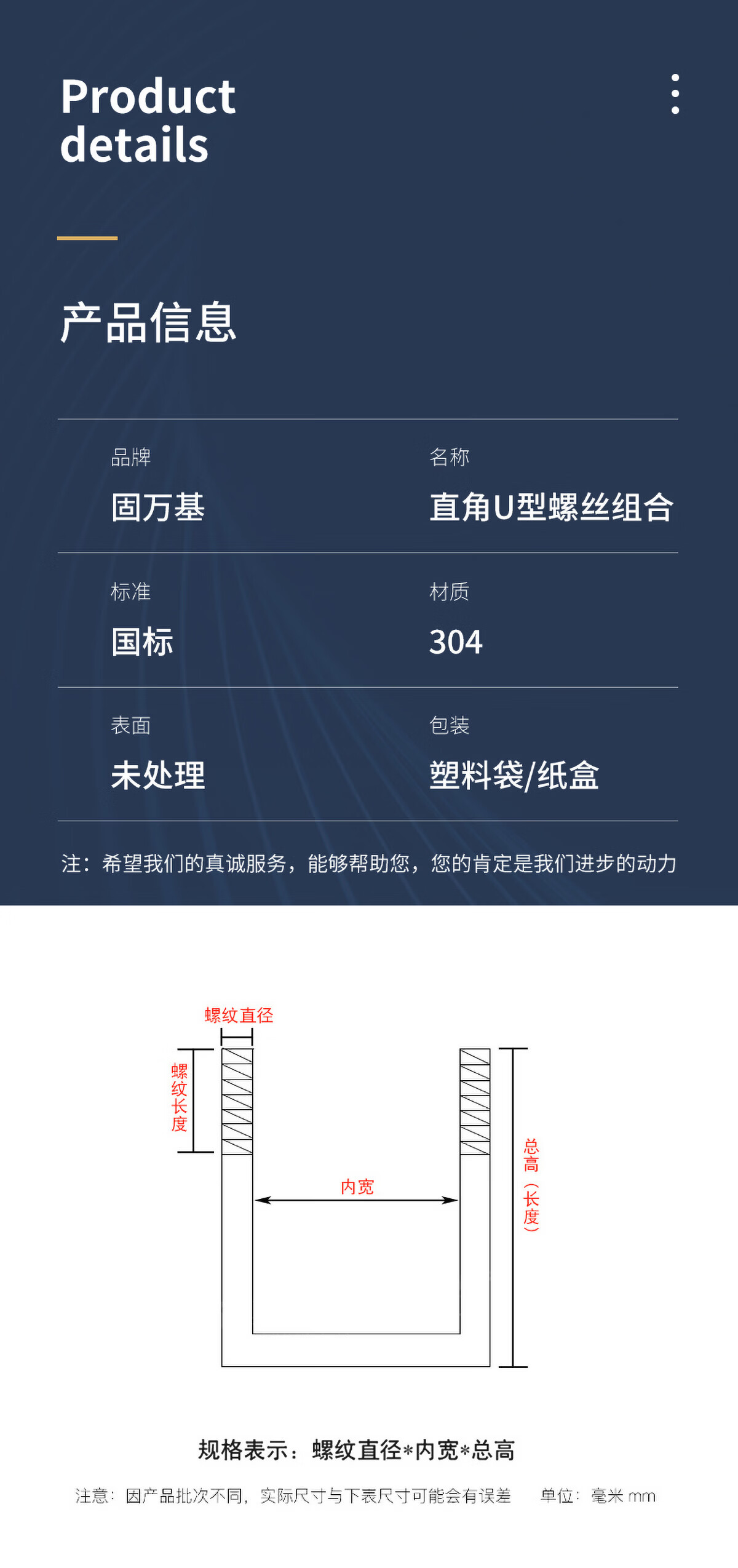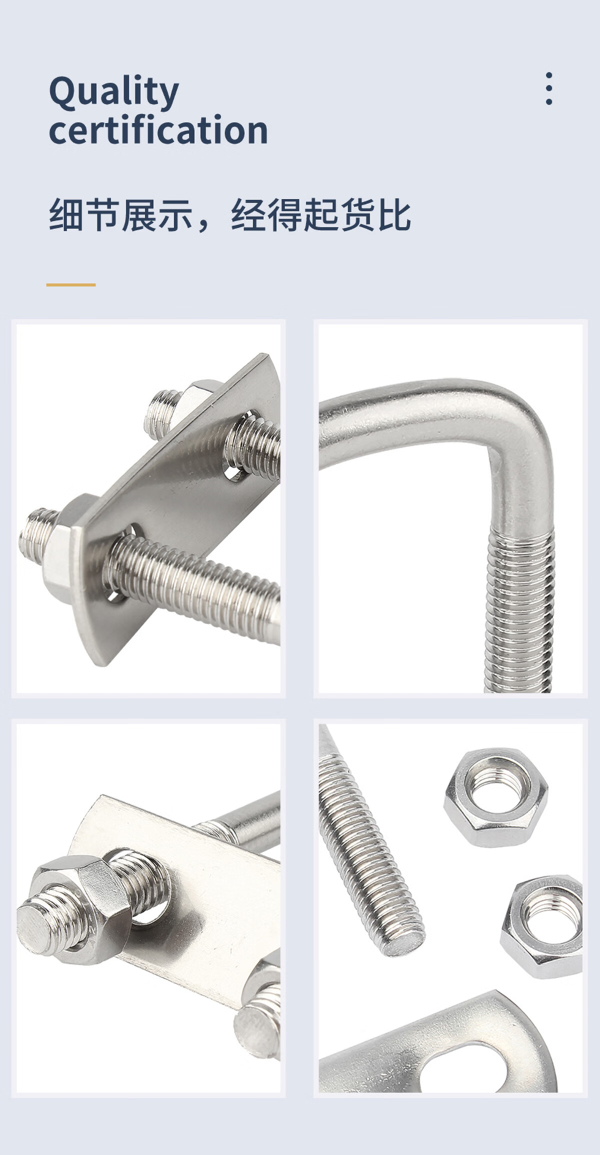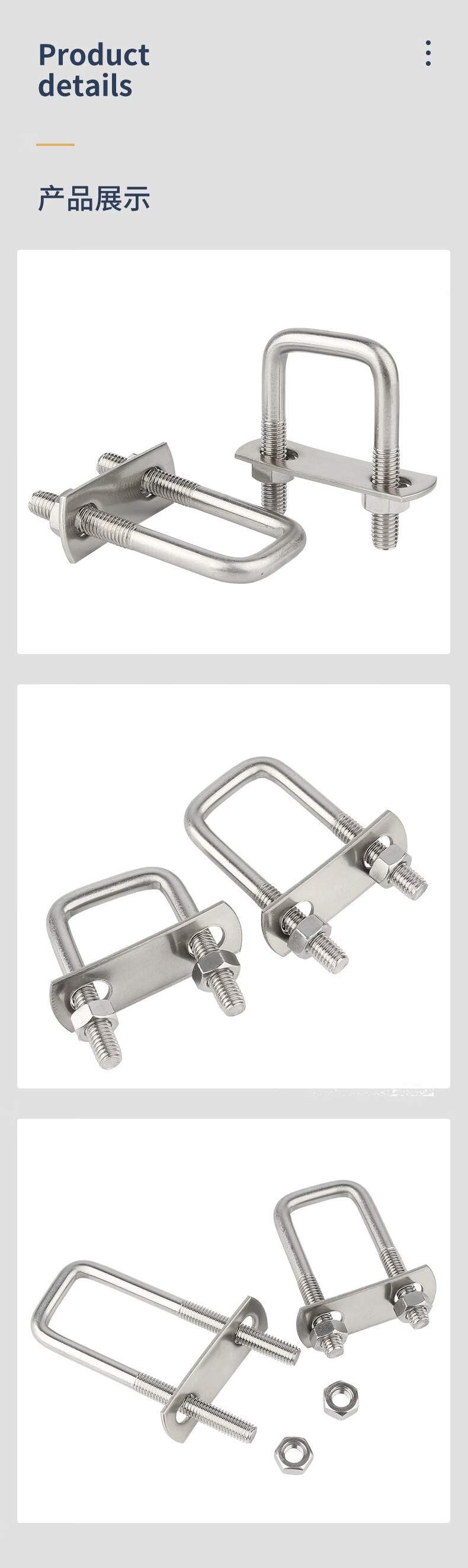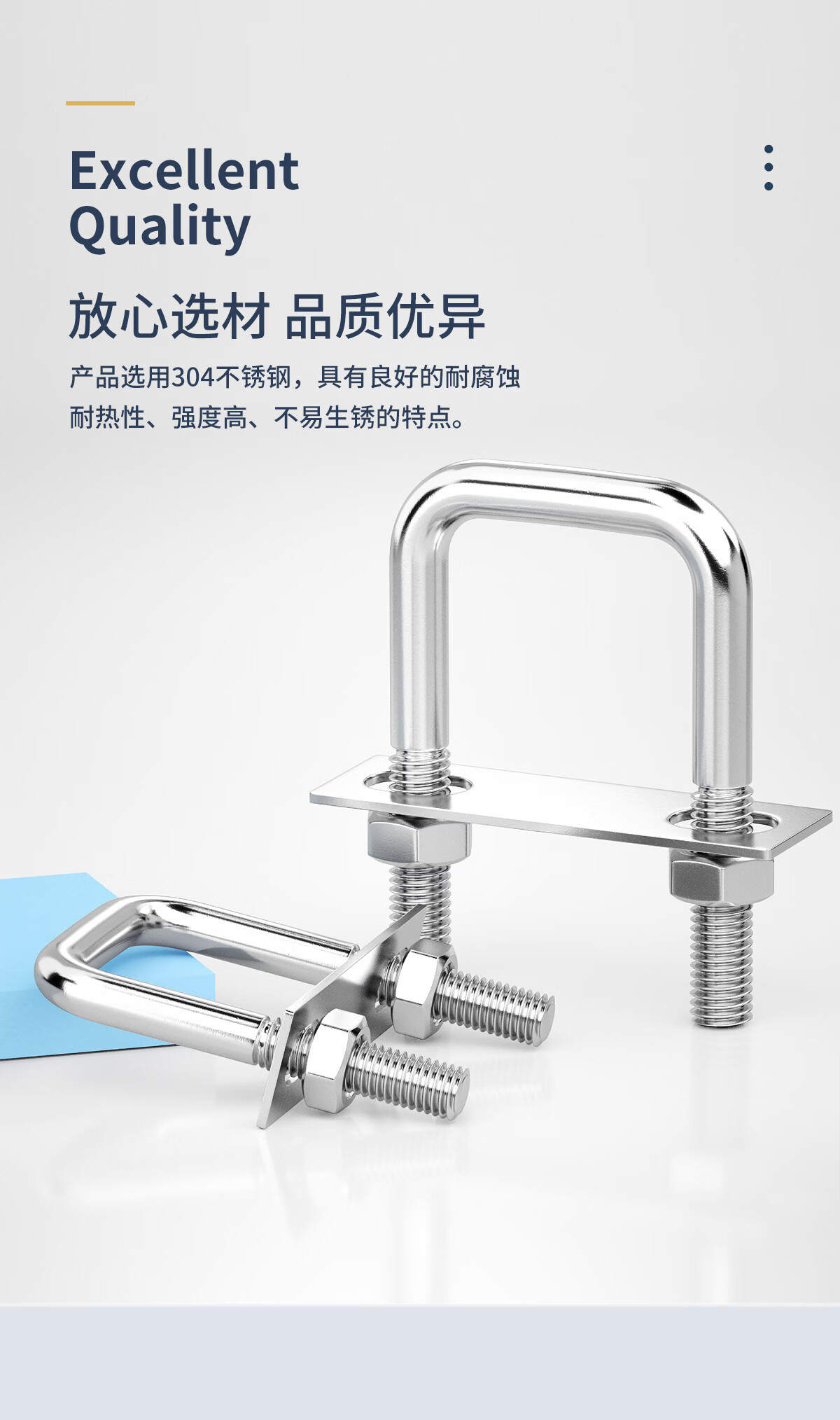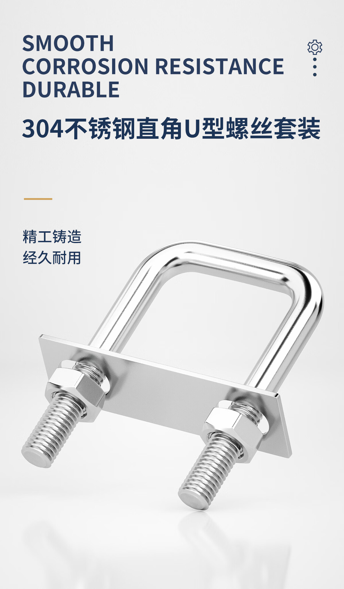 固万基(GUWANJI)304不锈钢直角U型螺栓U形螺丝螺母带挡板套装管卡管夹固定夹卡扣 M6x20x50[4套]