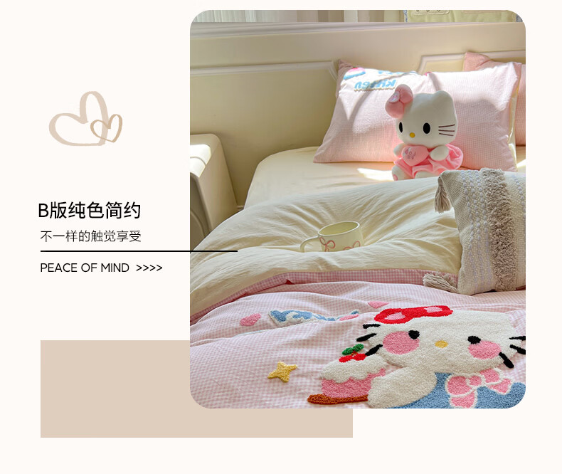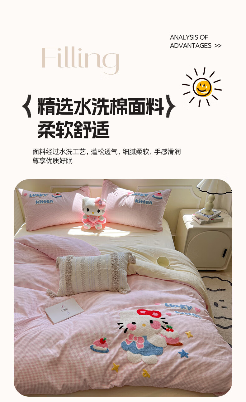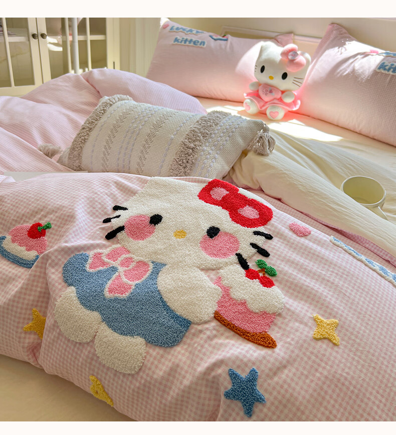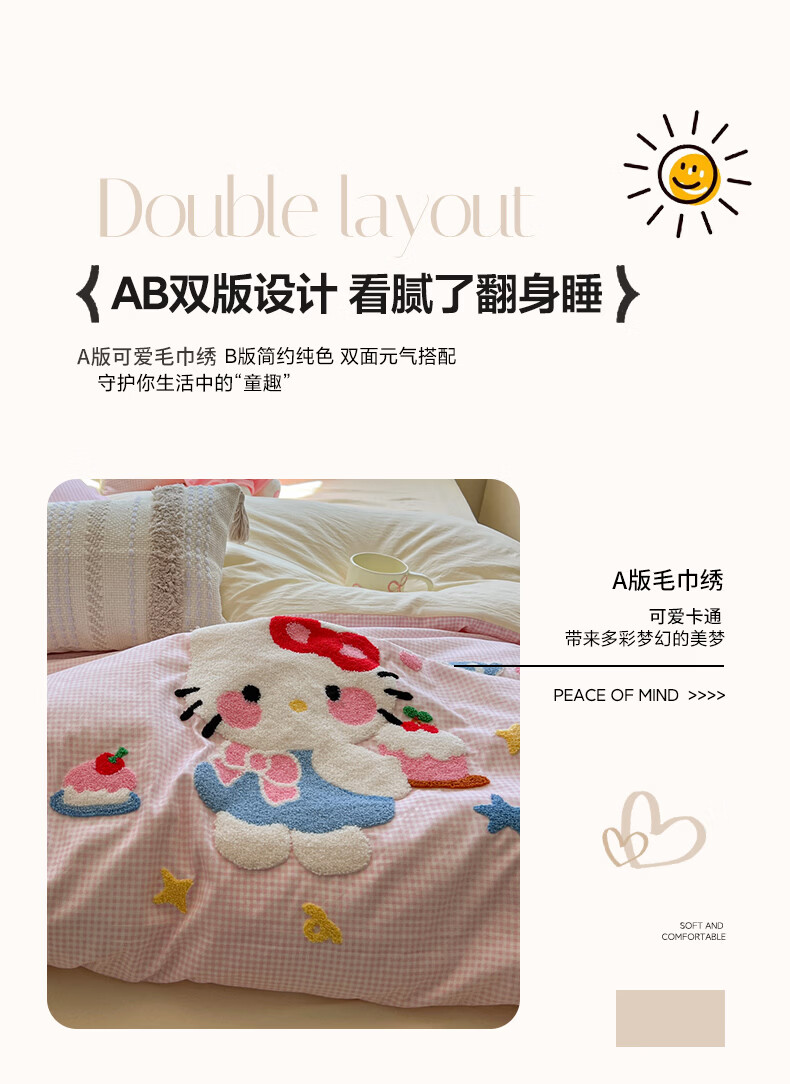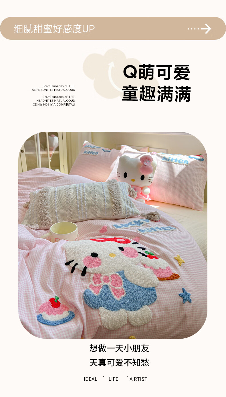 VJE公主风水洗棉四件套可爱卡通毛巾绣床单被套学生宿舍亲肤棉三件套 蛋糕猫咪 三件套0.9m 床单款 (被套150*200cm)