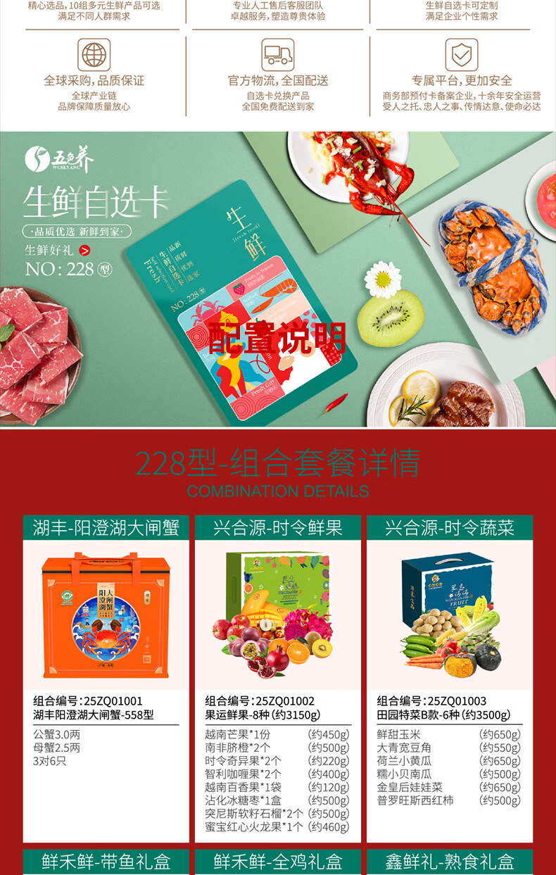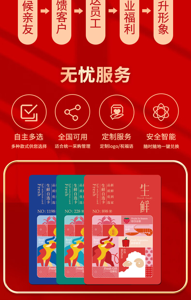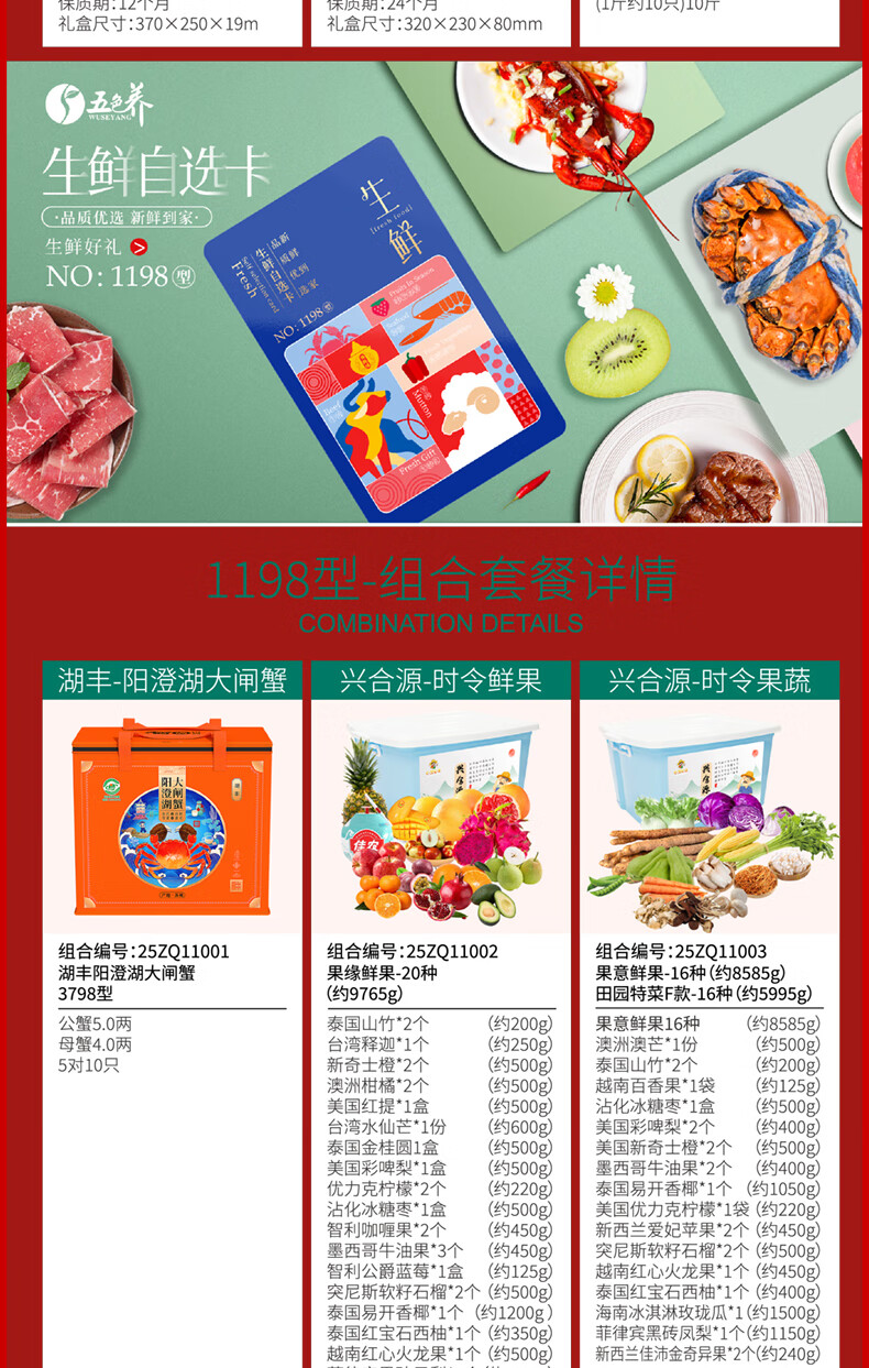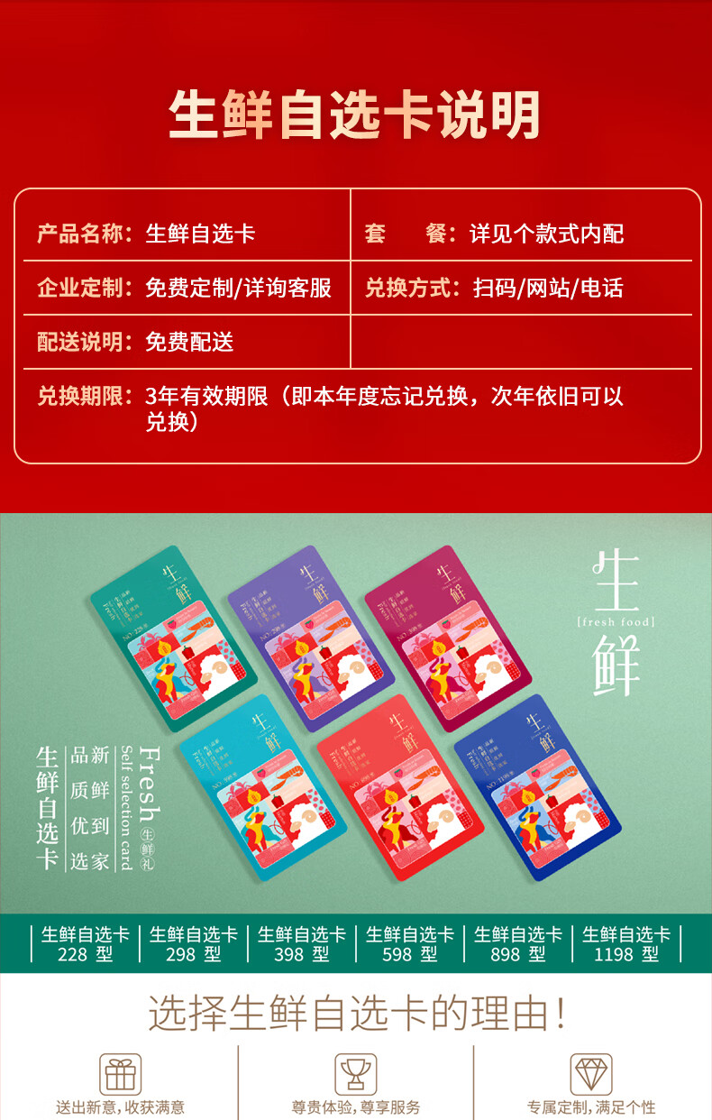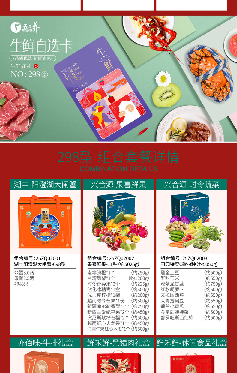 五色养春节年货送礼生鲜食品10选1自选兑换卡实体礼品卡册提货券 228型