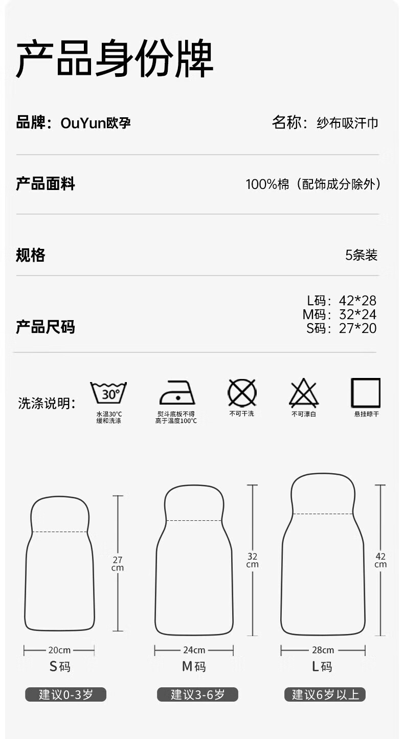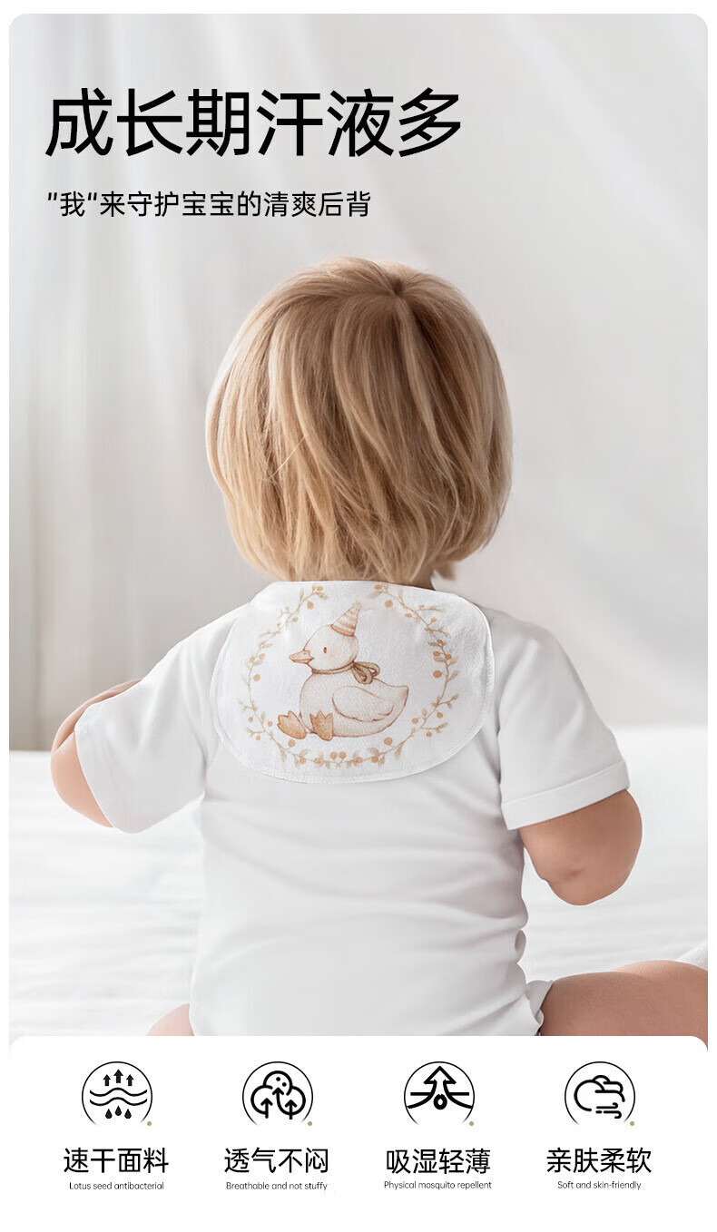 欧孕(OUYUN)汗巾儿童纯棉幼儿园隔汗巾纯棉婴幼儿宝宝吸汗巾垫背巾止汗巾 轻薄四层5条装【森林派对】 27cm×20cm