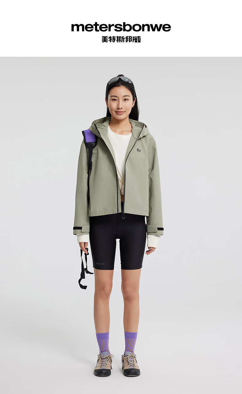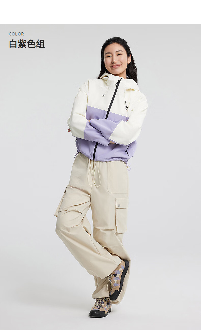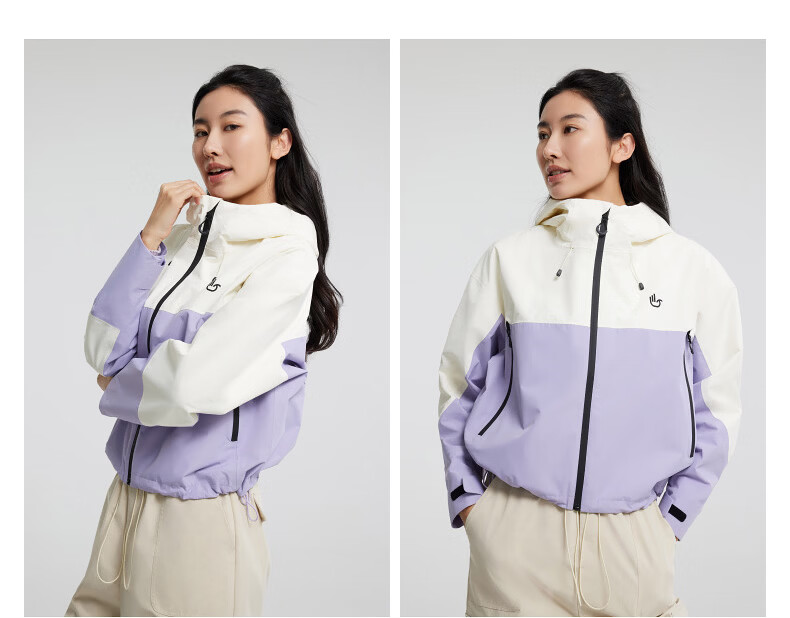 美特斯邦威[商场同款]夹克女2025秋冬新款户外时尚百搭连帽外套 白紫色组 M 160 84A