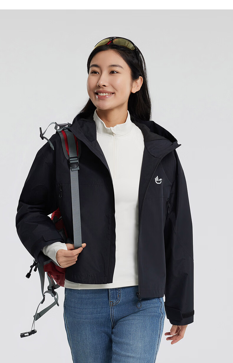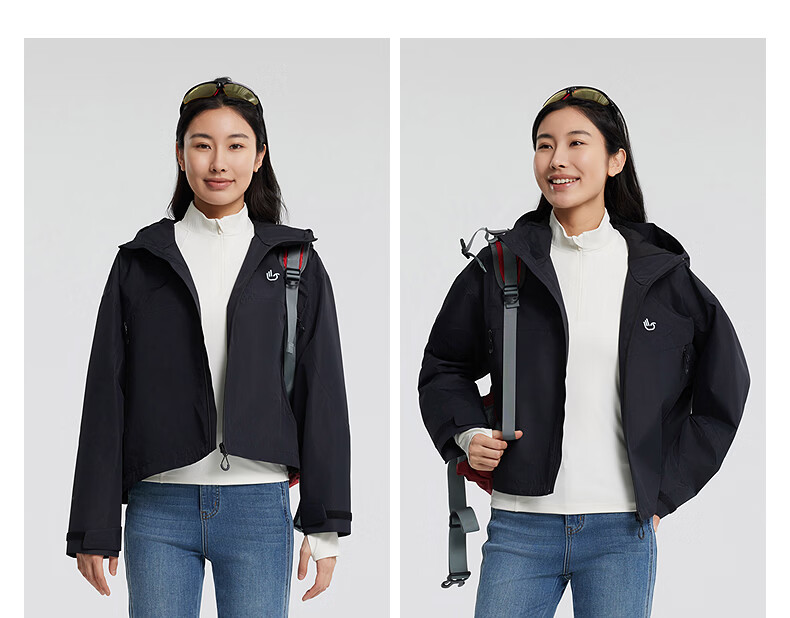 美特斯邦威25秋冬新款户外三防登山运动休闲三合一摇粒绒冲锋衣女 玄影黑(含摇粒绒内胆) L 165 88A