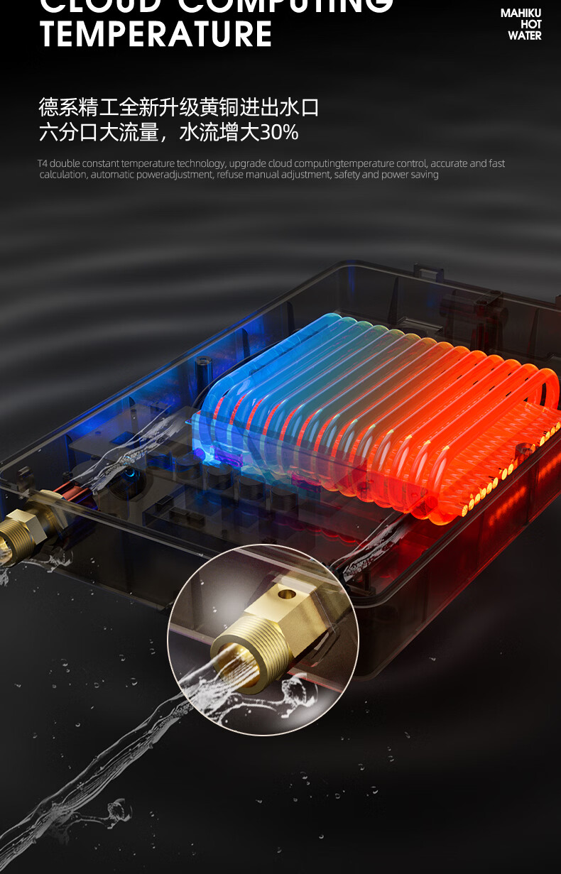 MAHIKU德国玛狮图三相电380V即热式电热水器家用别墅大平层浴缸泡澡大功率商用理发店美容院酒店食堂工地 12000W 黑色【专业中央供水+380V大水量】