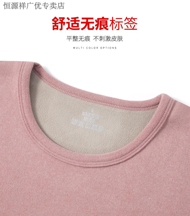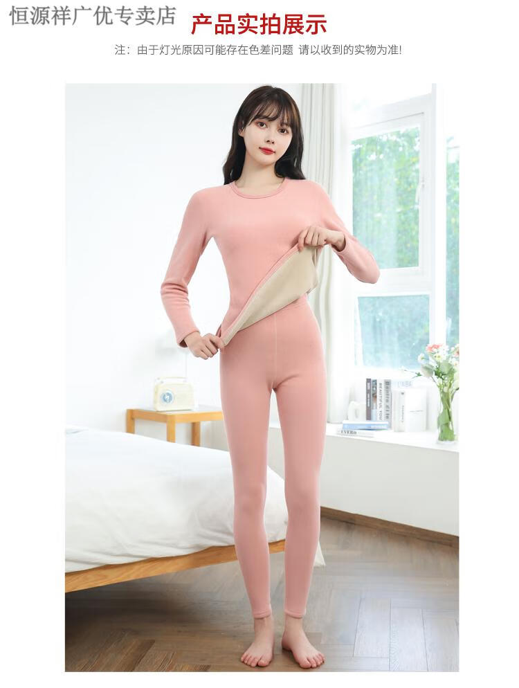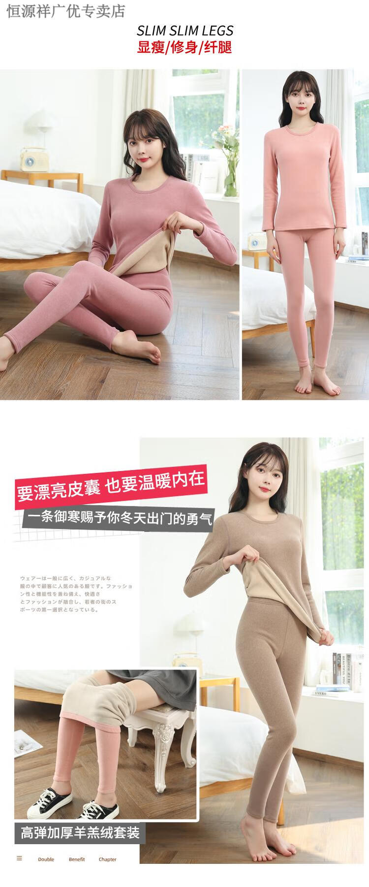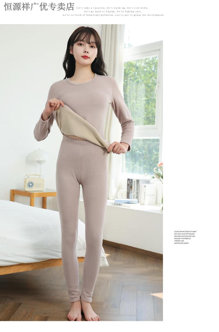恒源祥一体羊羔绒保暖内衣女套装加厚加绒棉质打底衫秋衣秋裤冬季防寒 天空灰 加厚一体绒【套装】 L 【80-100斤】
