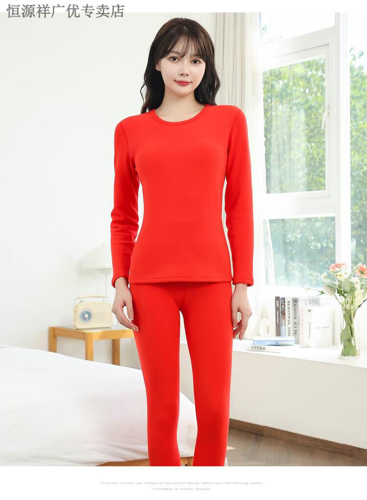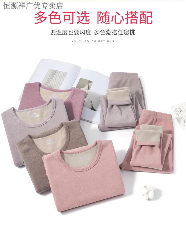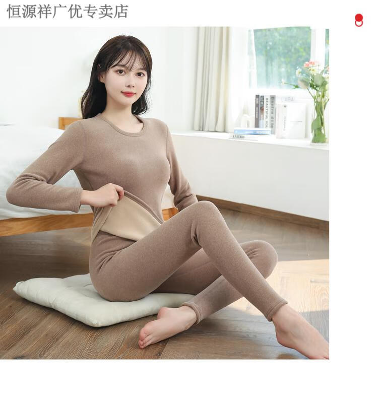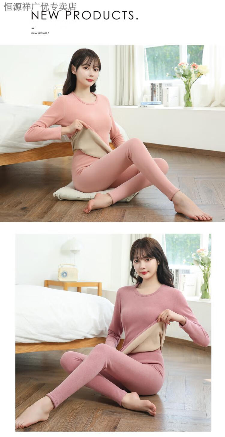 恒源祥一体羊羔绒保暖内衣女套装加厚加绒棉质打底衫秋衣秋裤冬季防寒 天空灰 加厚一体绒【套装】 L 【80-100斤】