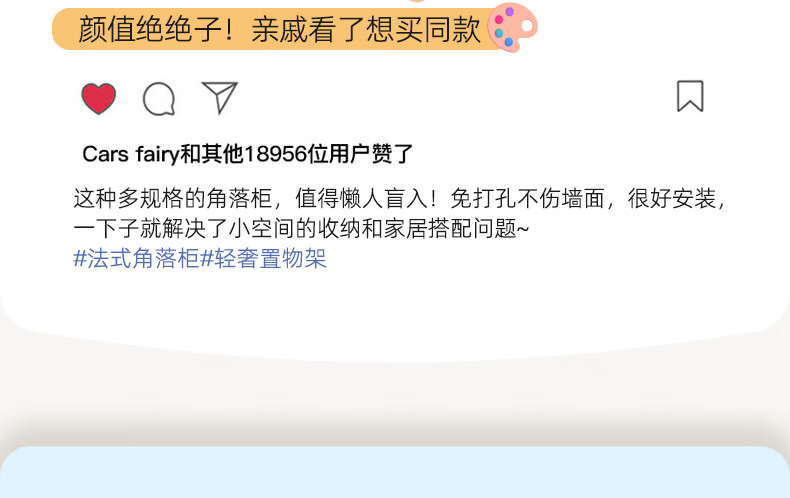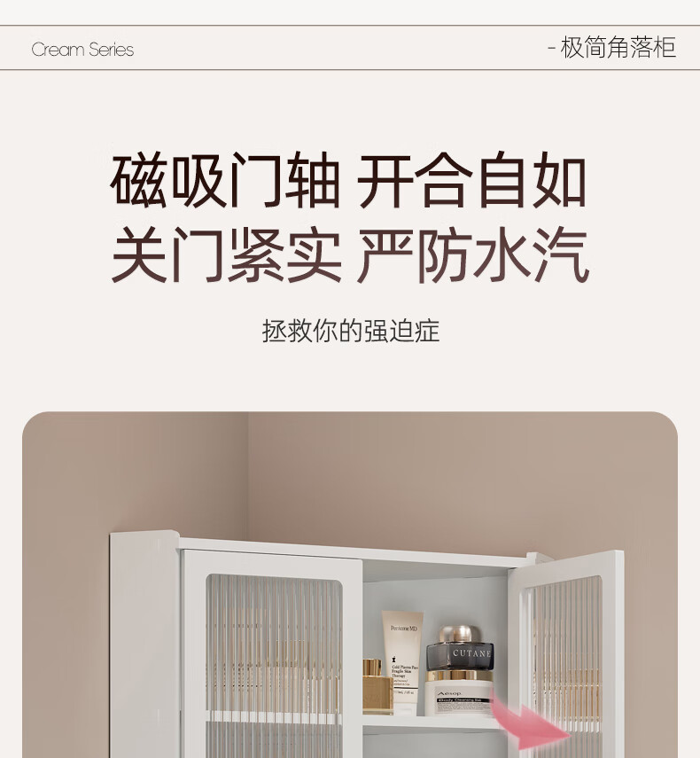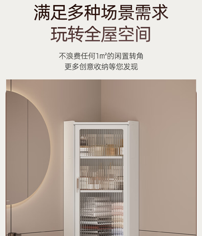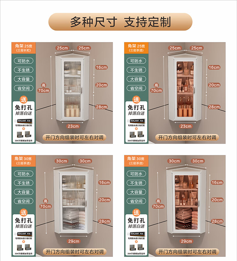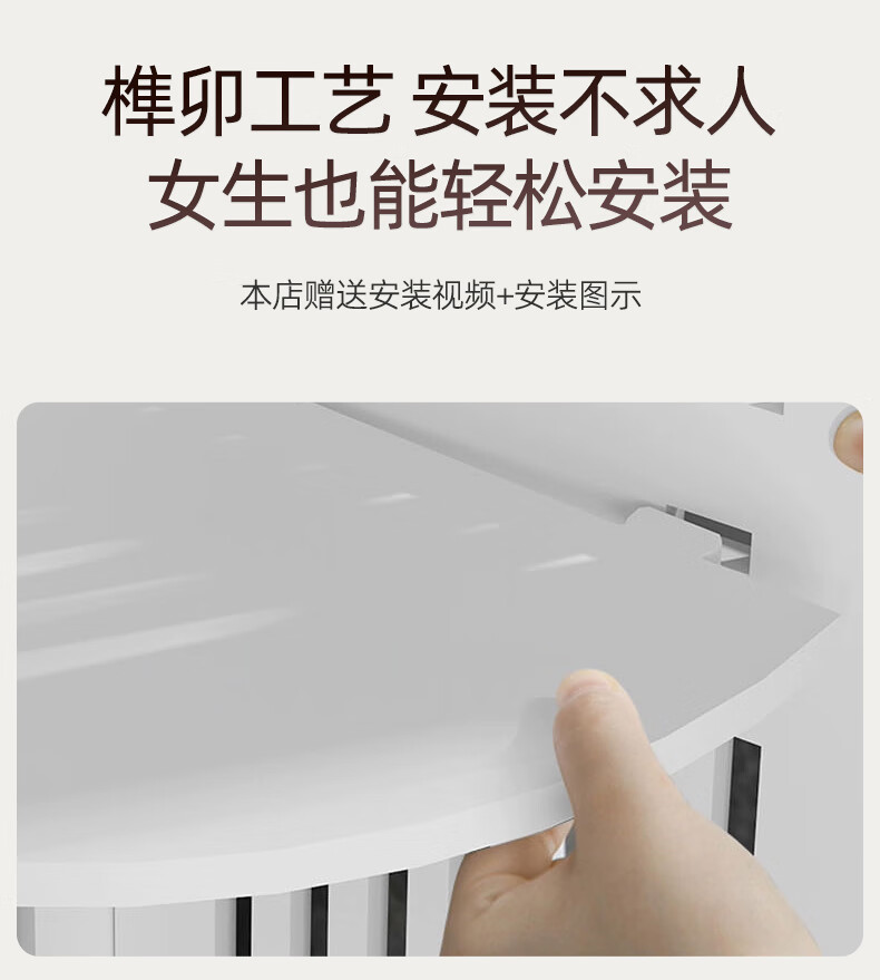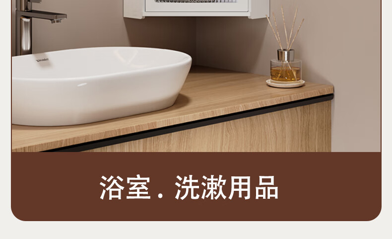 枫居物语浴室卫生间置物架收纳柜墙角壁挂式化妆品洗漱台储物柜防水免打孔 挂角架 白色【38x70】茶透