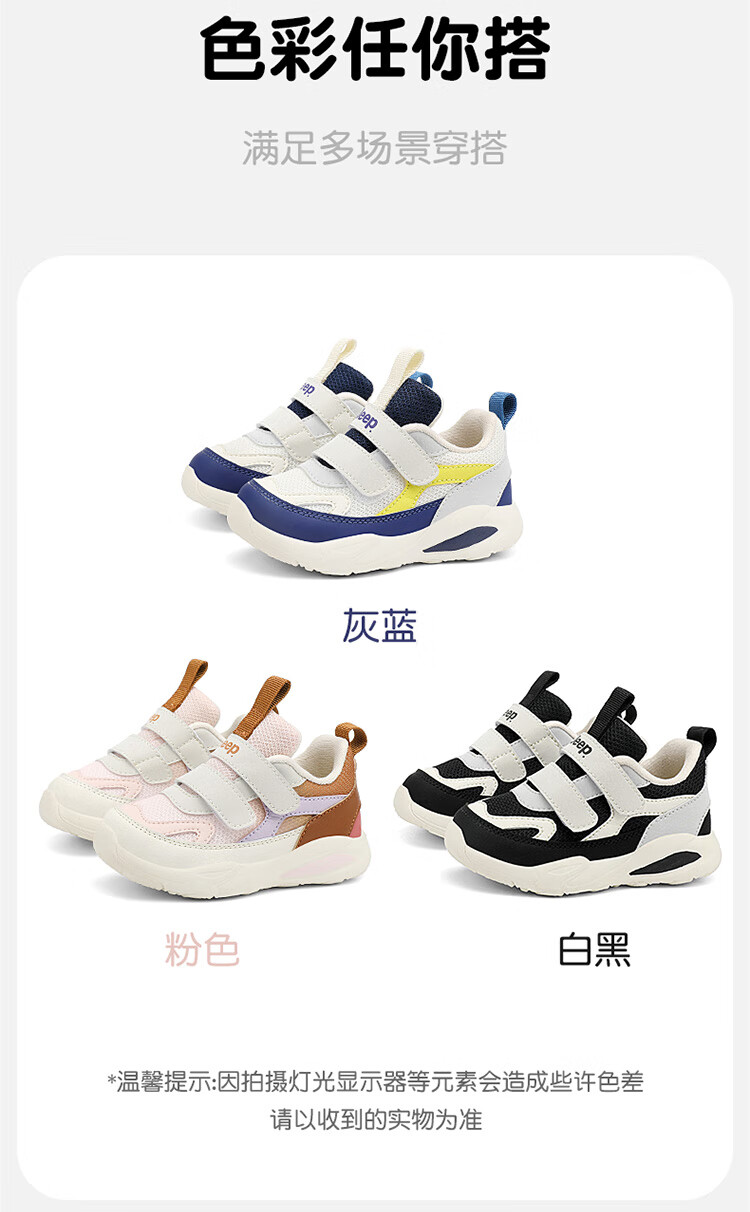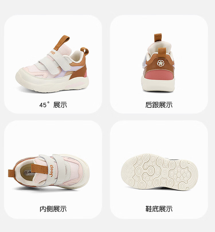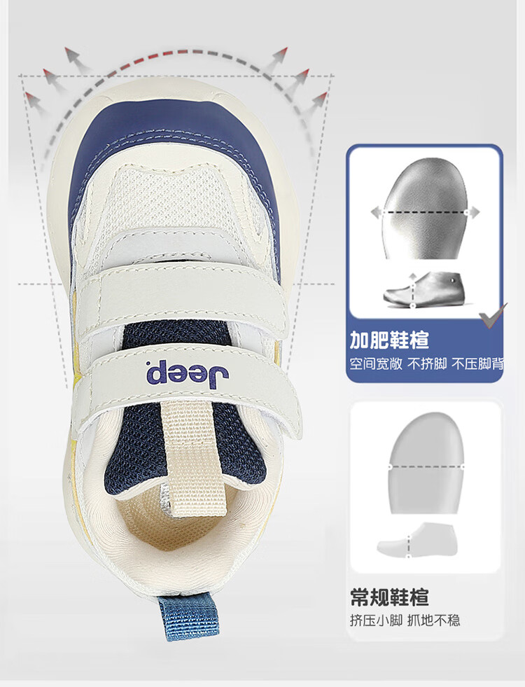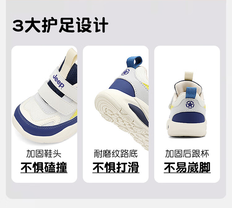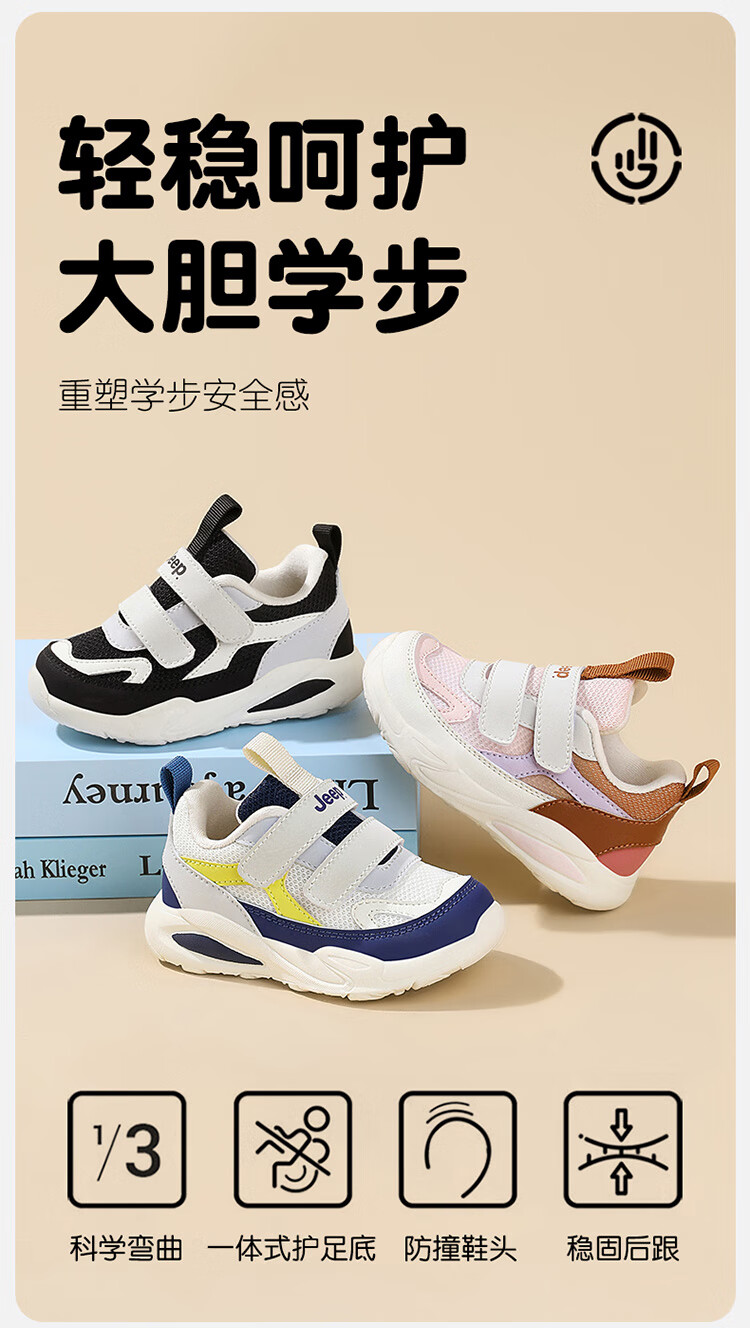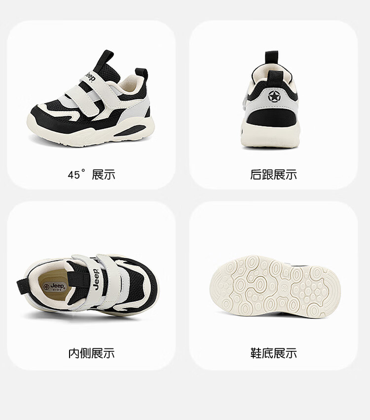 JEEP儿童学步鞋减震软底跑步鞋户外登山鞋休闲鞋 白黑 26