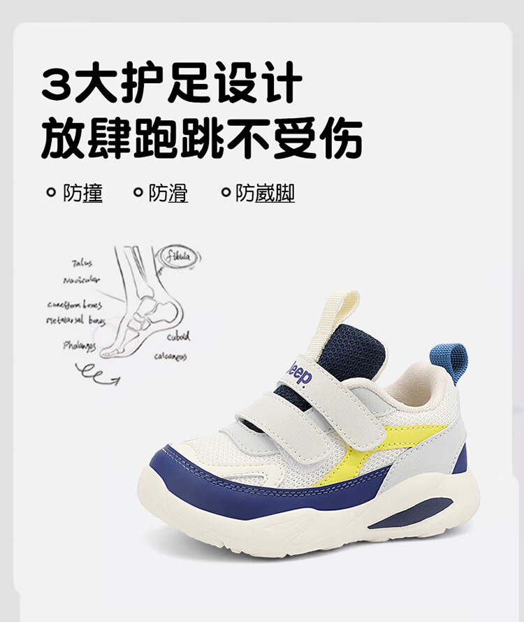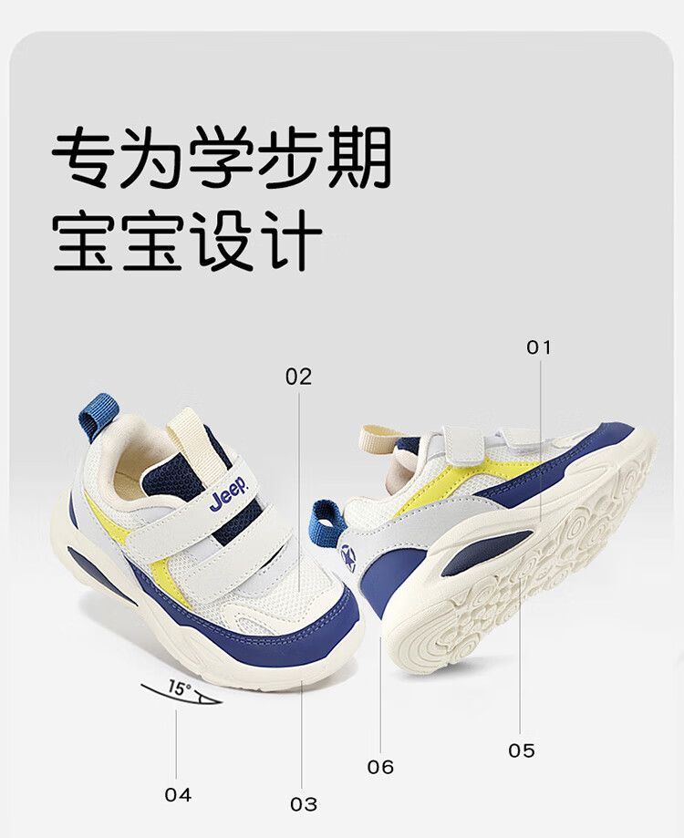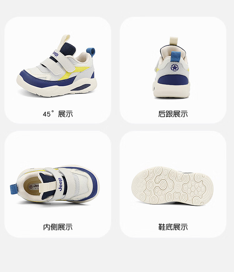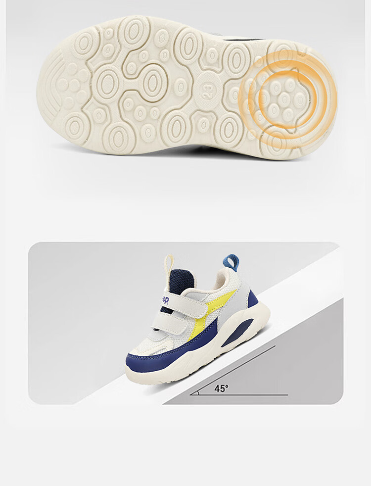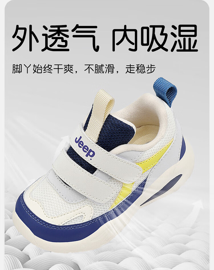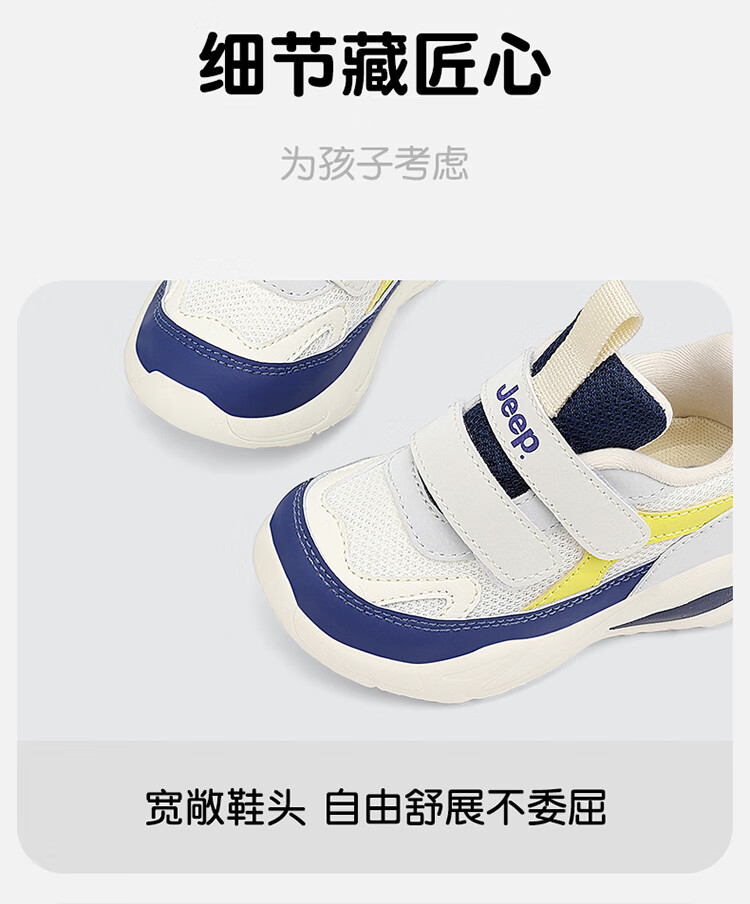 JEEP儿童学步鞋减震软底跑步鞋户外登山鞋休闲鞋 白黑 26