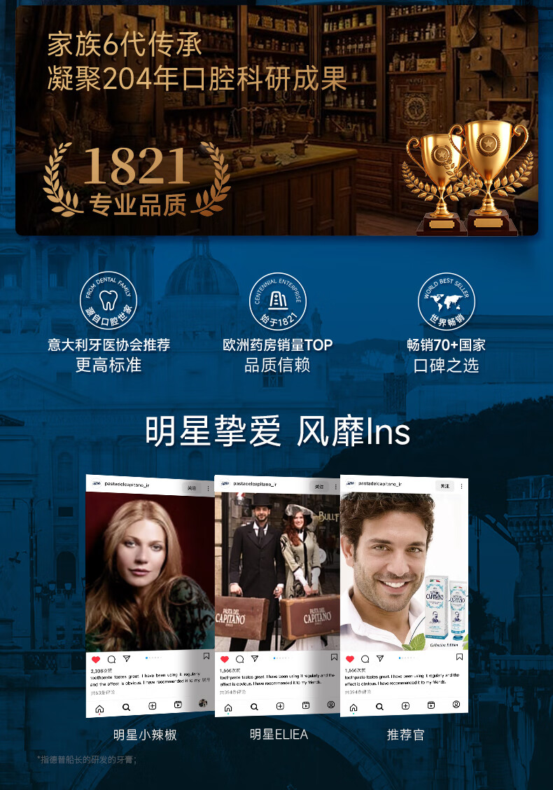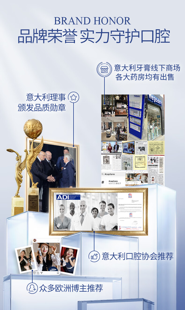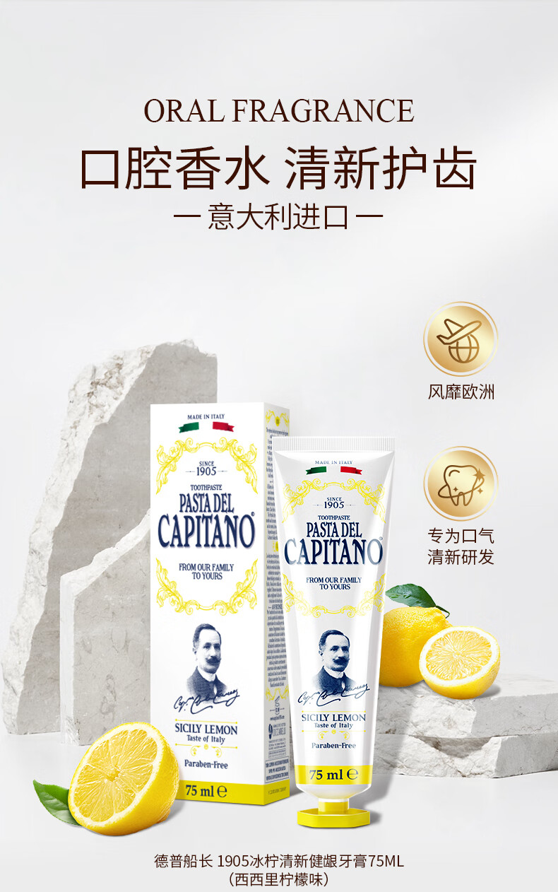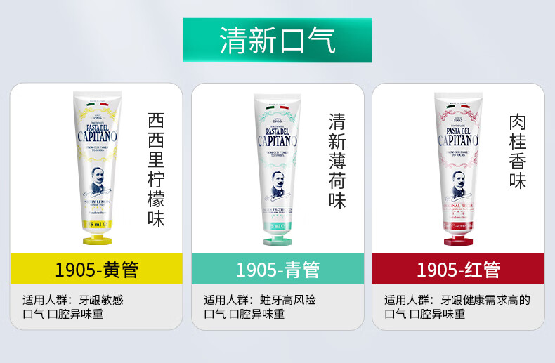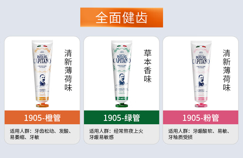 PASTA DEL CAPITANO意大利原装进口牙膏老船长1905系列清洁防龋牙黄口腔异味男女士用 清新防龋套装(红黄青橙)