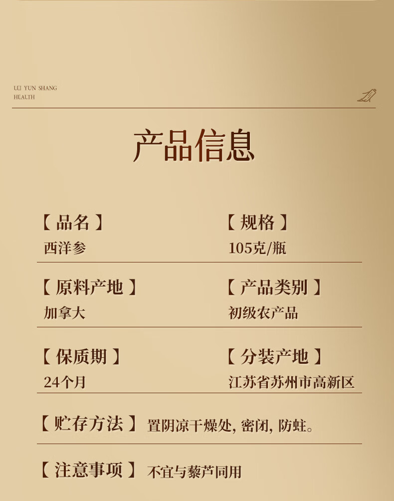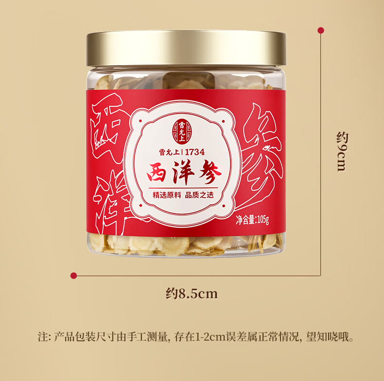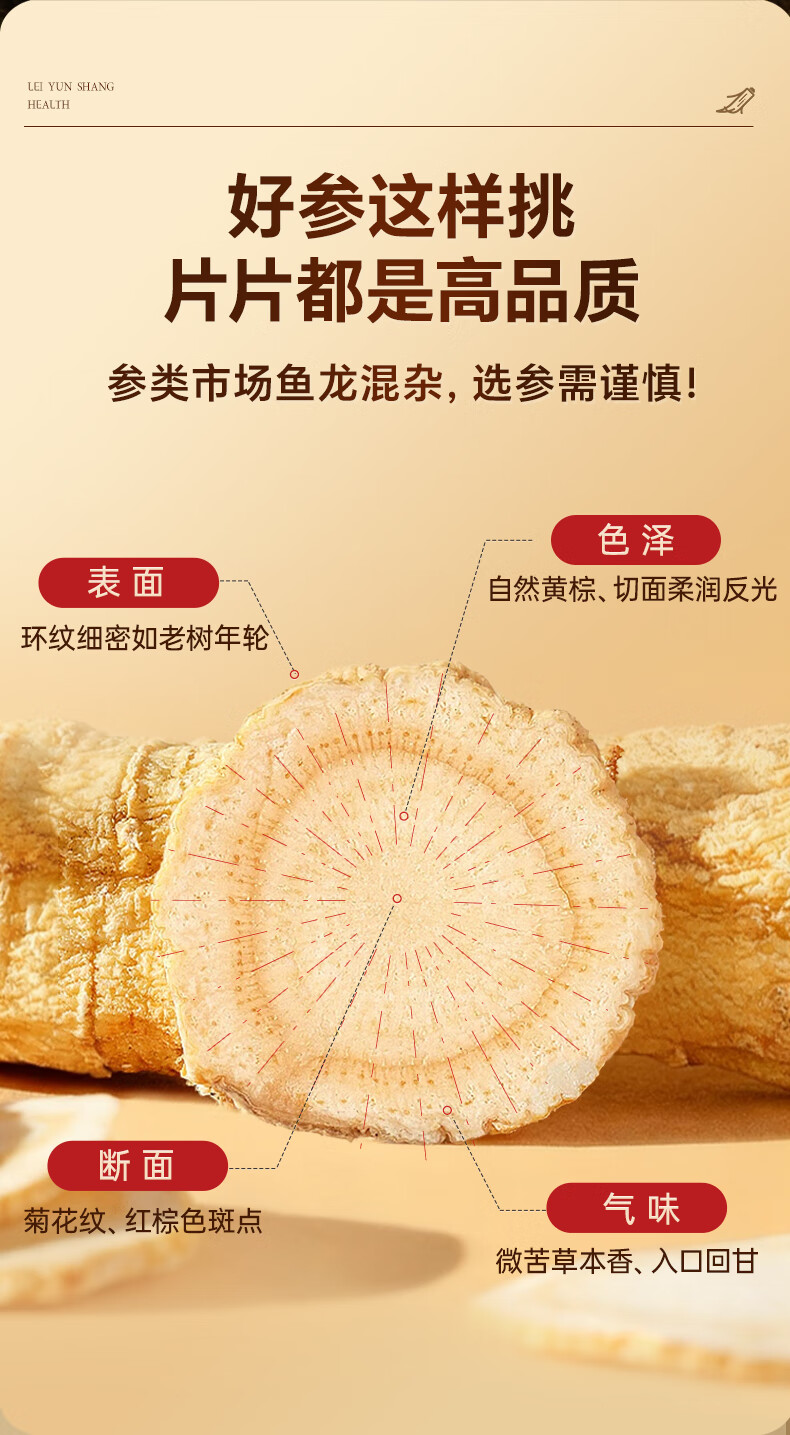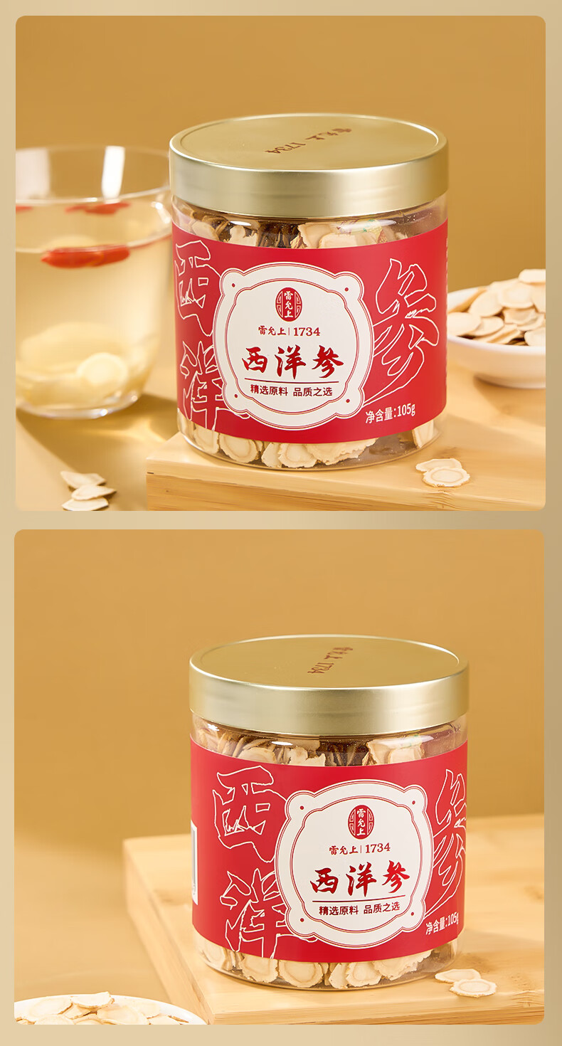 雷允上【官方】加拿大进口西洋参片花旗参滋补品送长辈营养品送礼礼品 加拿大西洋参105g(1.2-1.4cm)
