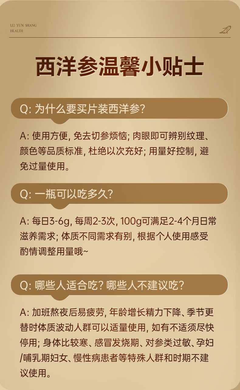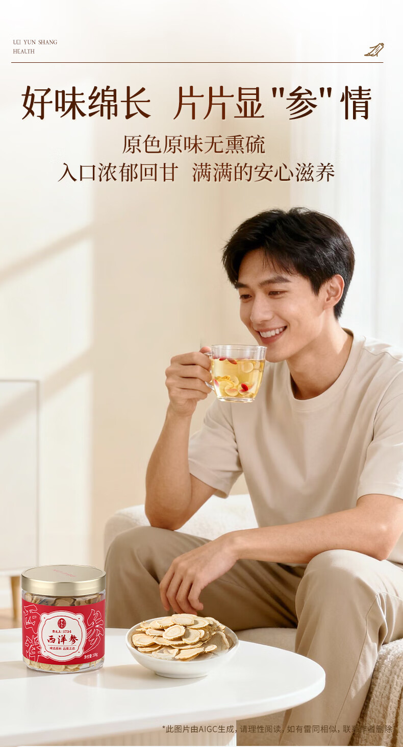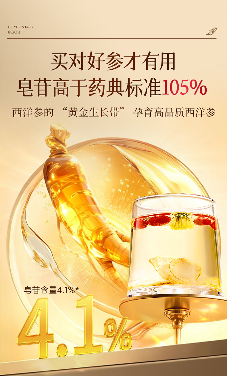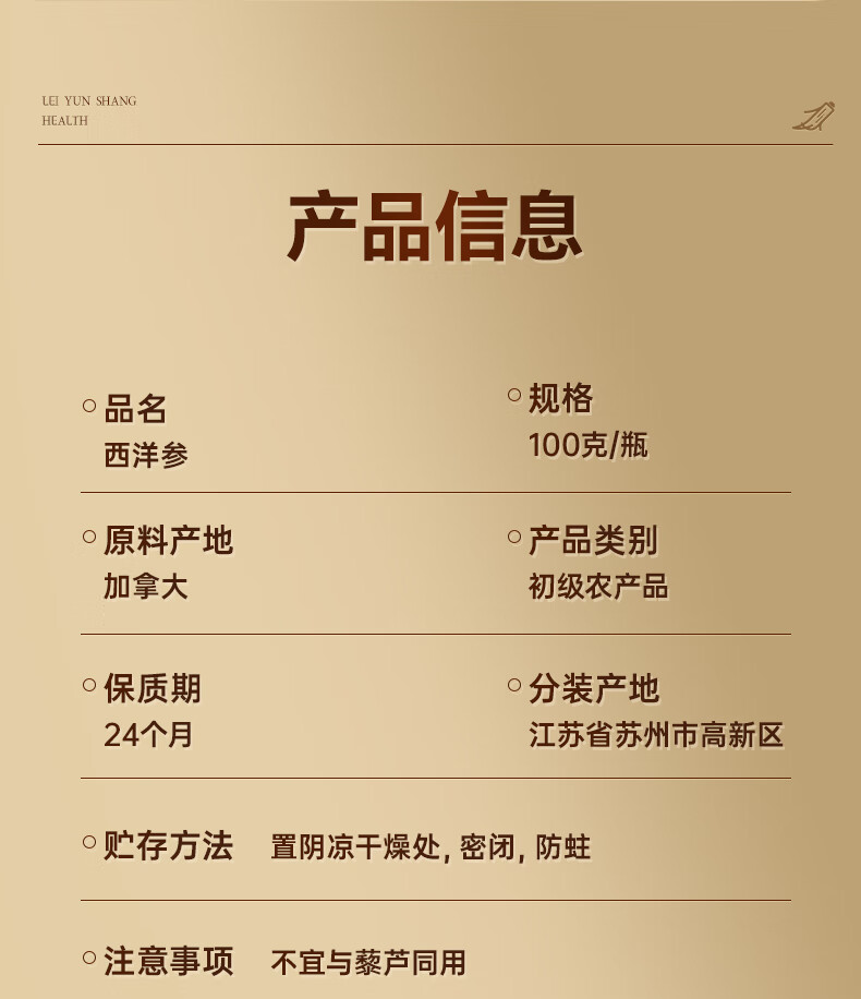 雷允上【官方】加拿大进口西洋参片花旗参滋补品送长辈营养品送礼礼品 加拿大西洋参105g(1.2-1.4cm)