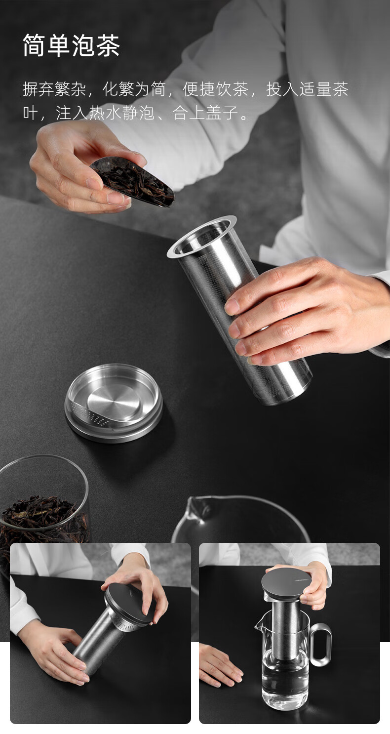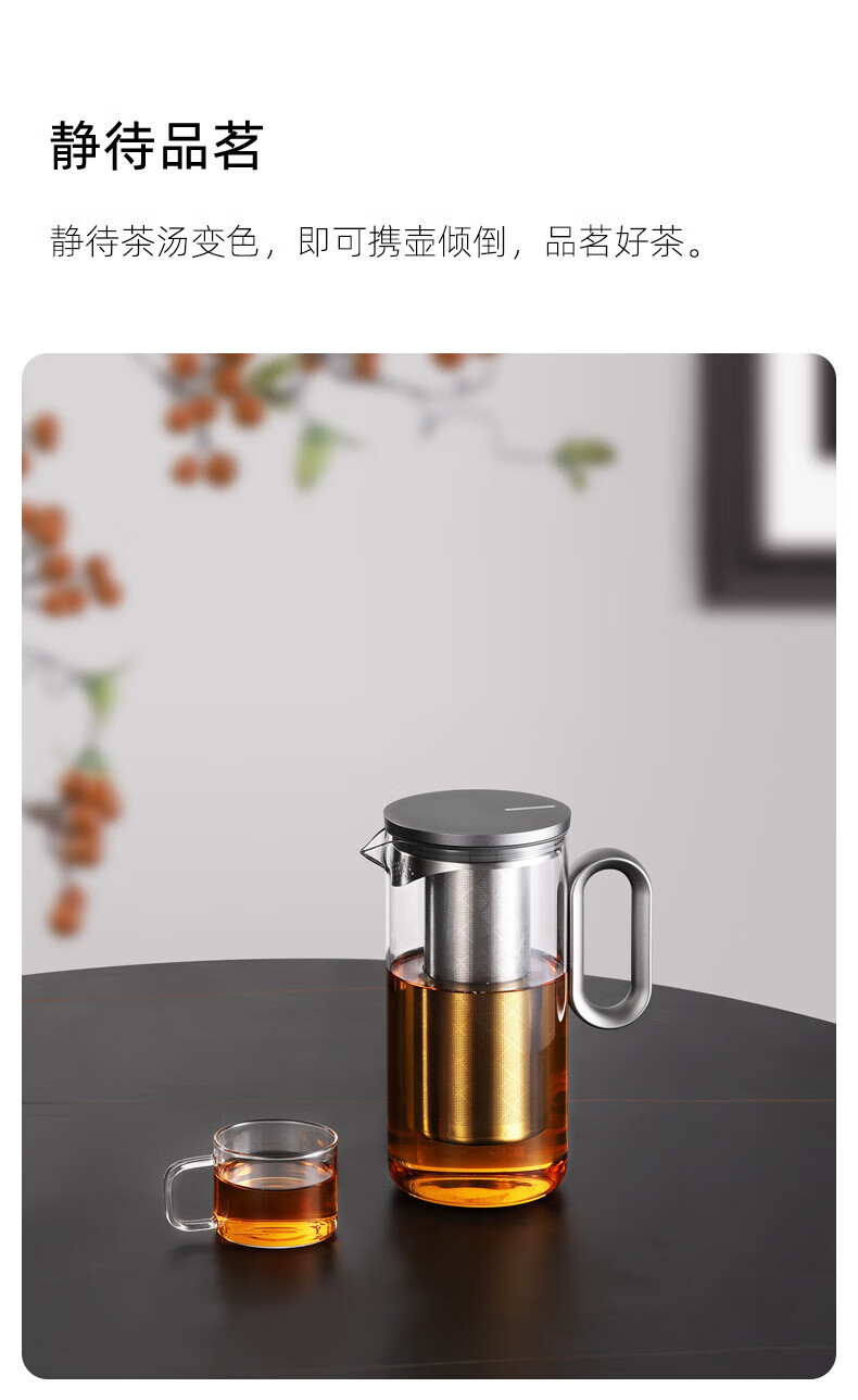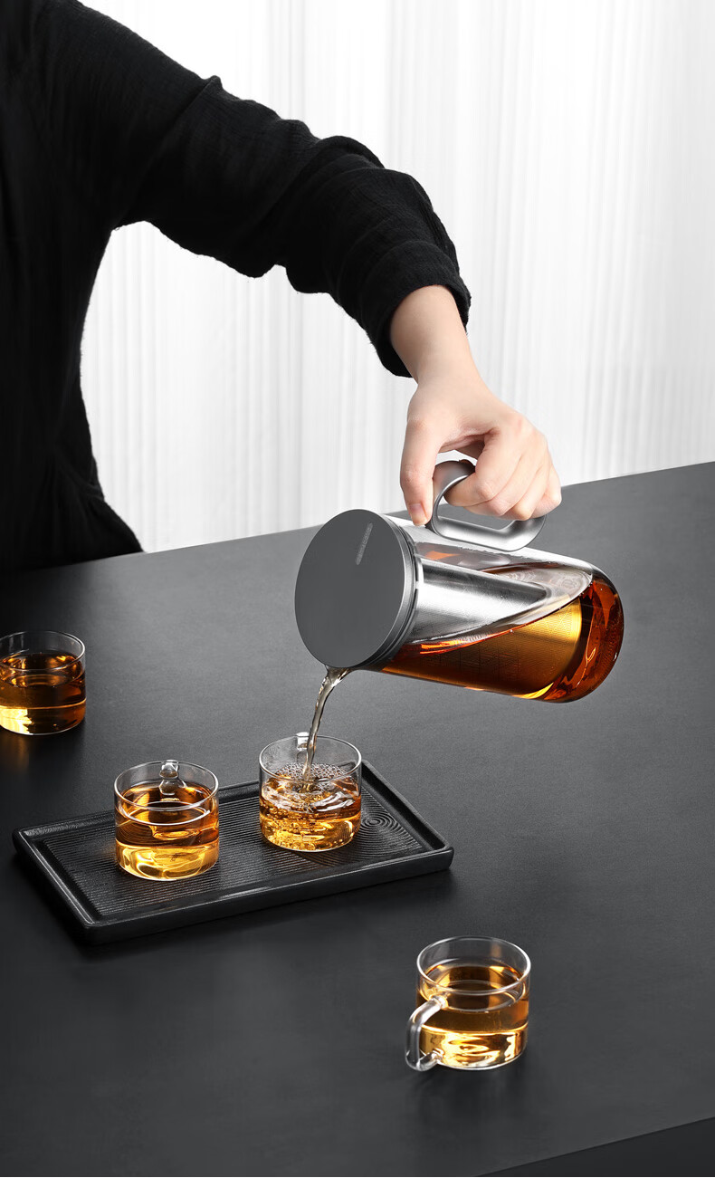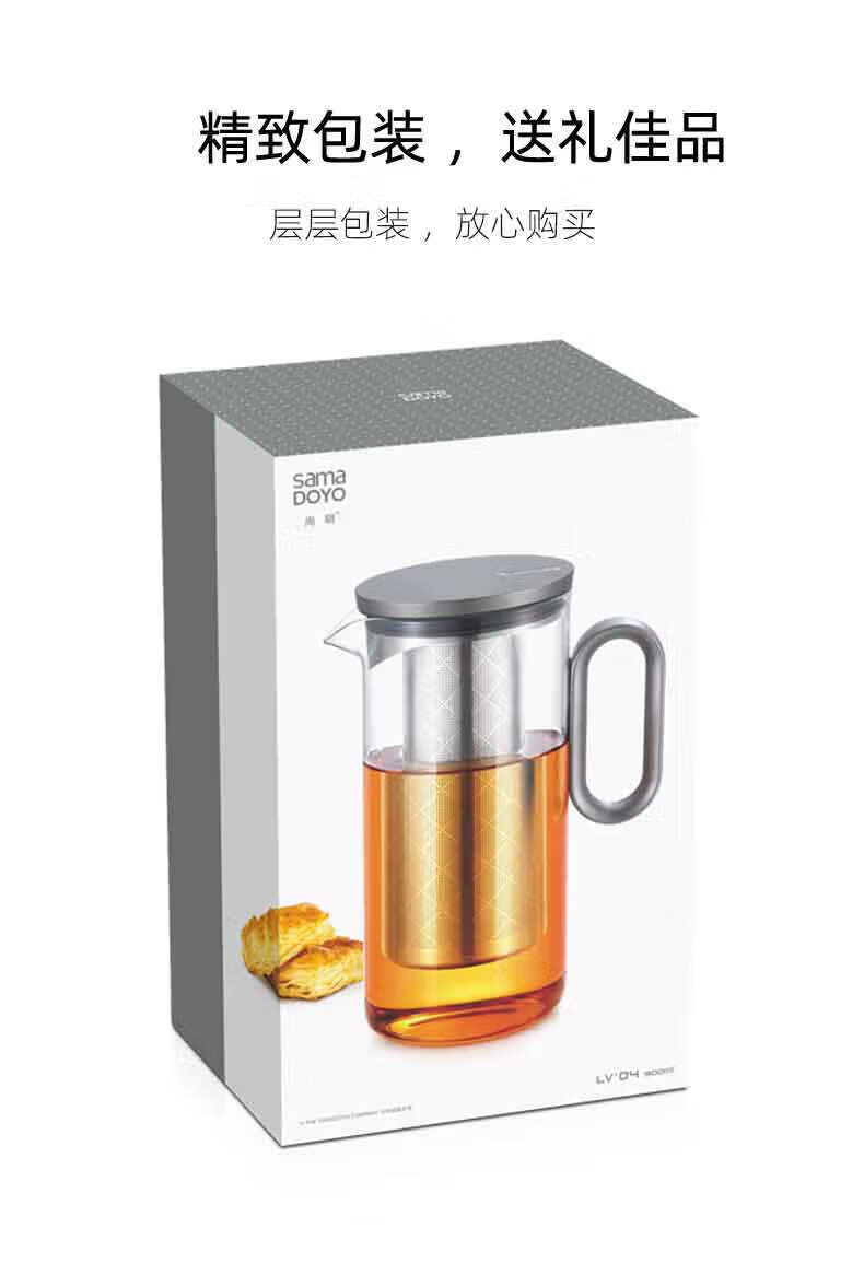 尚明耐热玻璃茶壶茶水分离不锈钢过滤泡茶壶大容量泡茶器功夫茶具套装 6水杯+托盘+金灰色 900ml