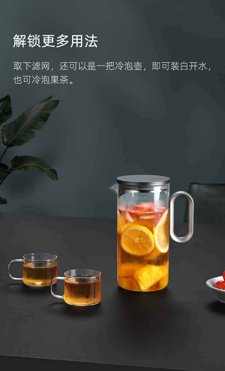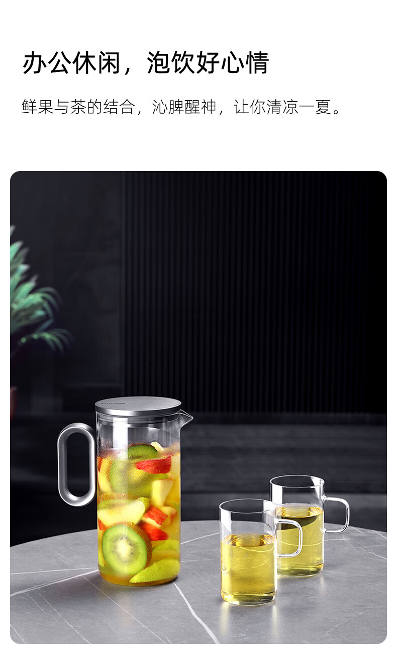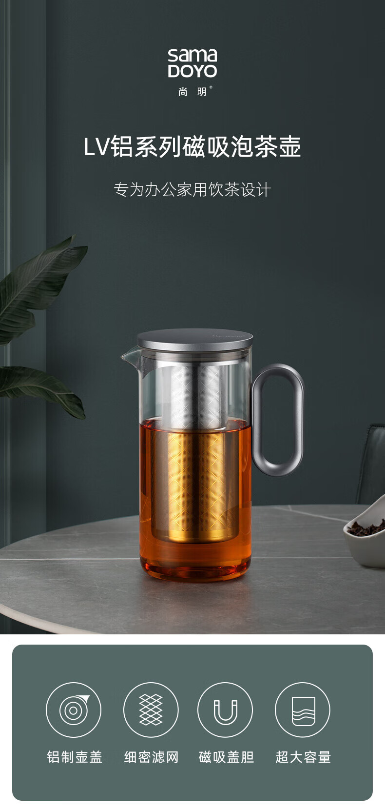 尚明耐热玻璃茶壶茶水分离不锈钢过滤泡茶壶大容量泡茶器功夫茶具套装 6水杯+托盘+金灰色 900ml