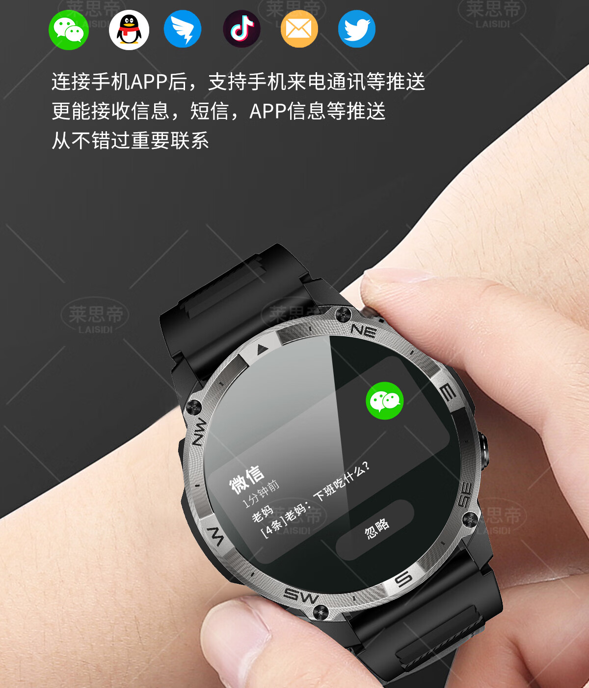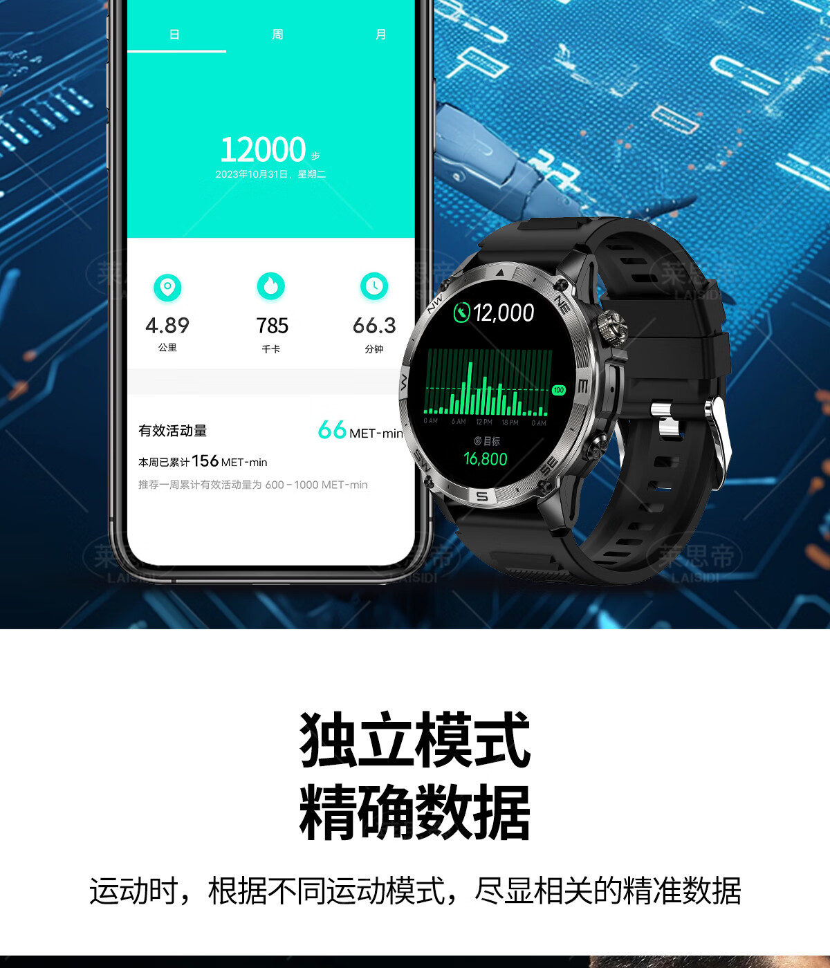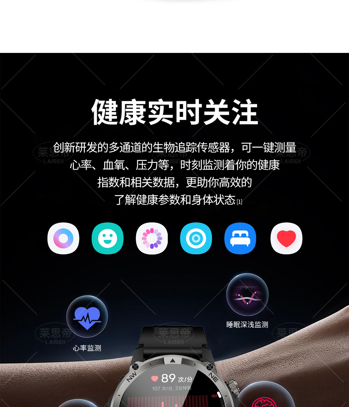 莱思帝智能运动手表跑步心率监测血压血氧睡眠防水防汗长续航蓝牙接打电话听歌消息提示离线支付watch 离线支付版黑色 合金机身+黑色硅胶表带