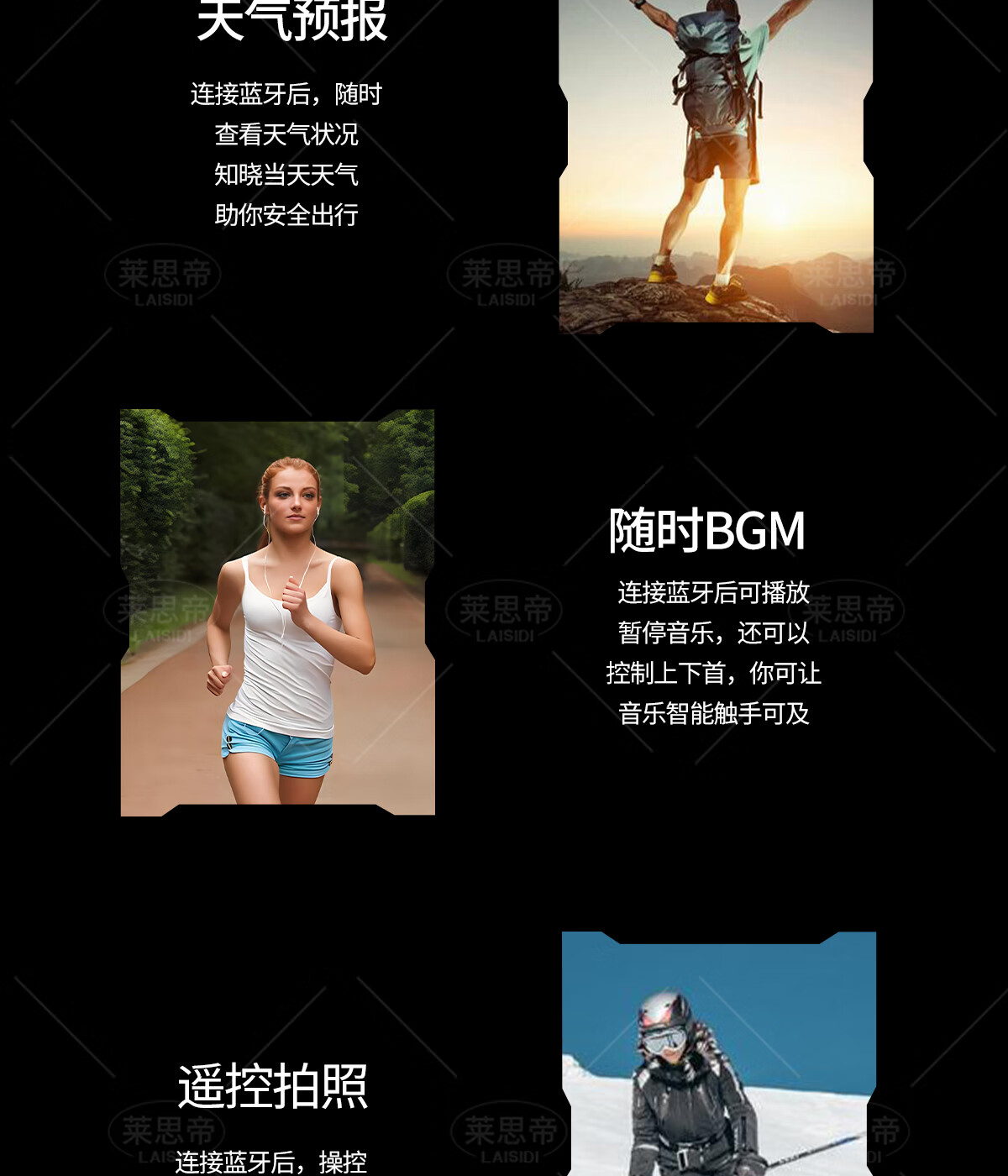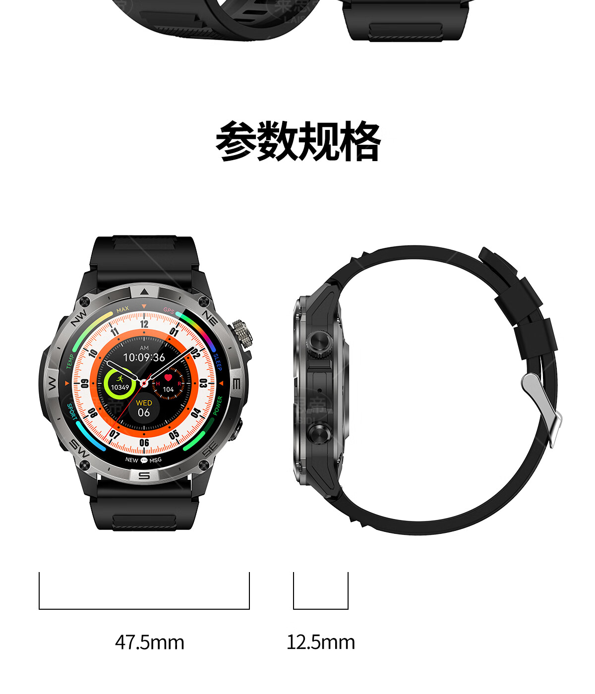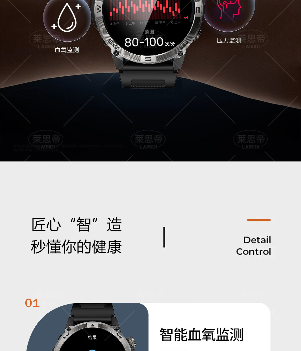 莱思帝智能运动手表跑步心率监测血压血氧睡眠防水防汗长续航蓝牙接打电话听歌消息提示离线支付watch 离线支付版黑色 合金机身+黑色硅胶表带