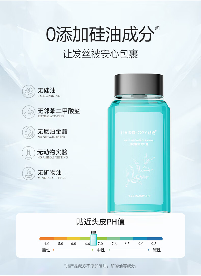 丝域养发蓬松控油洗发水不添硅油显发量清爽丝滑减少细软扁塌控油洗头膏 蓬松控油洗发露300ml*1
