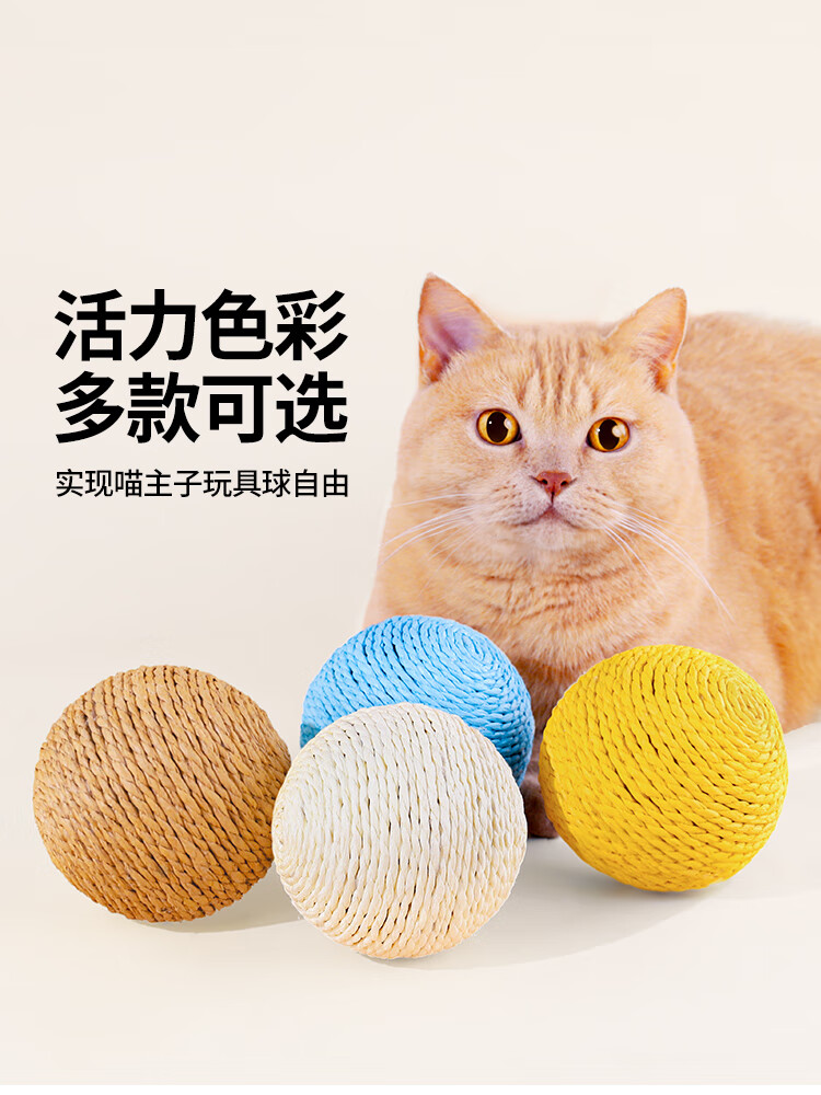 猫玩具剑麻球超大自嗨解闷神器逗猫棒耐抓磨牙发声球猫咪用品大全 【超值4个装】疯玩一整天