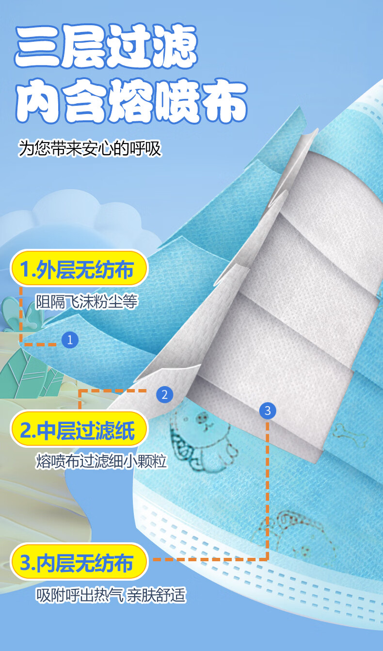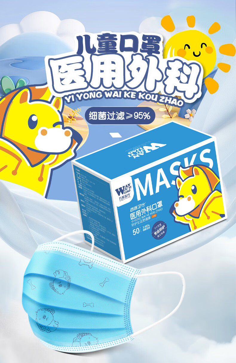 万聚医疗儿童尺寸口罩医用外科灭菌级独立包装儿童学生口罩 50只儿童款医用外科口罩【灭菌独立包装】