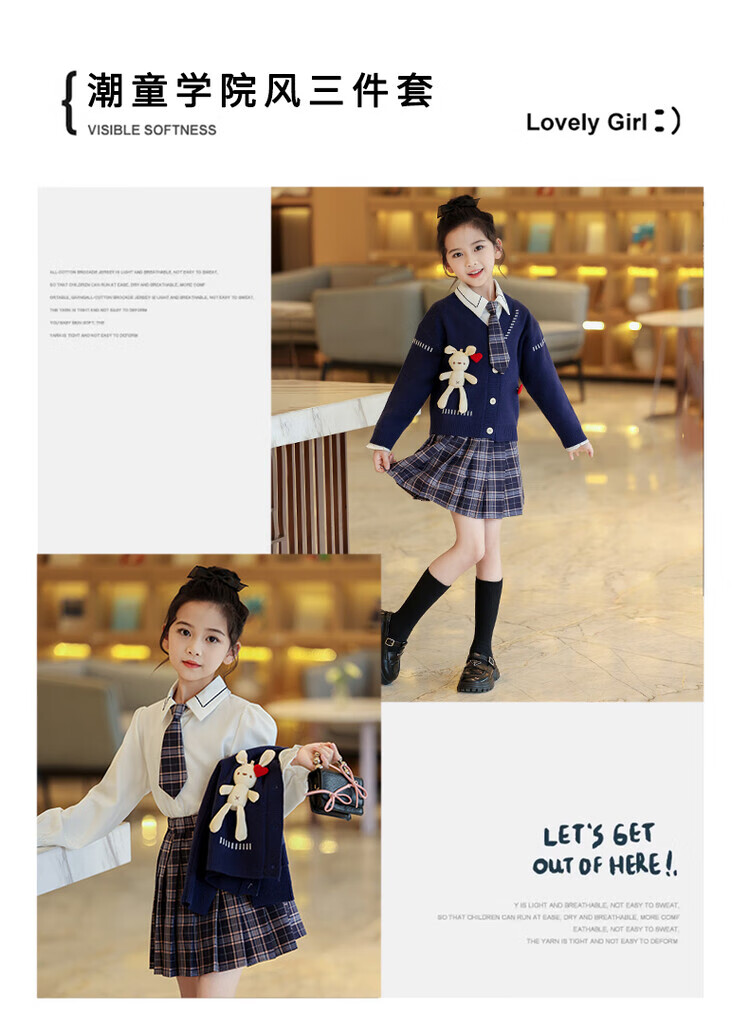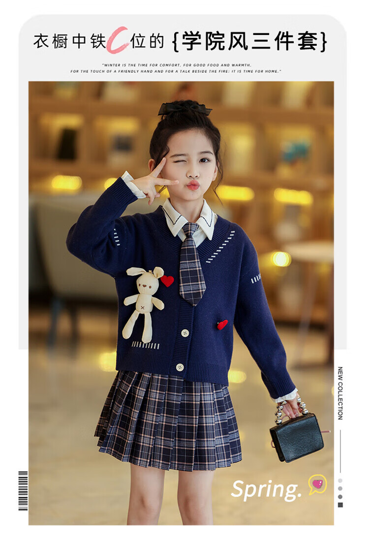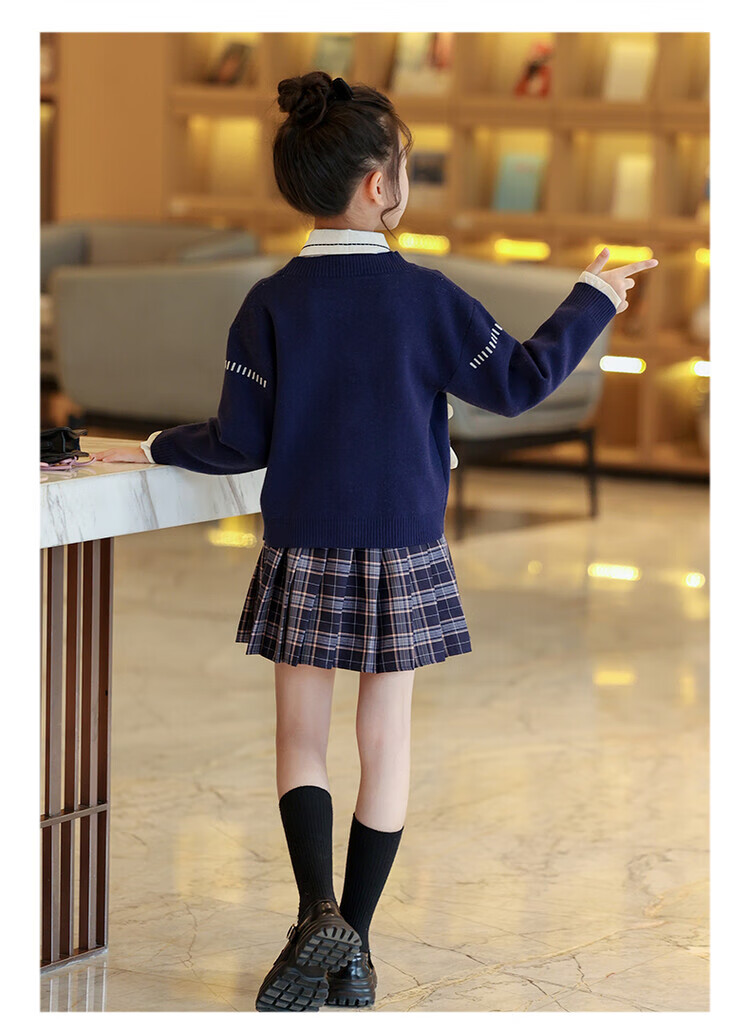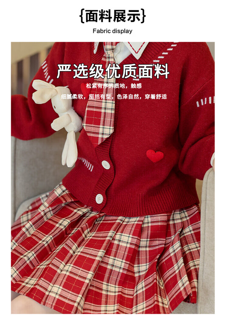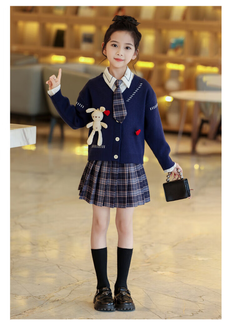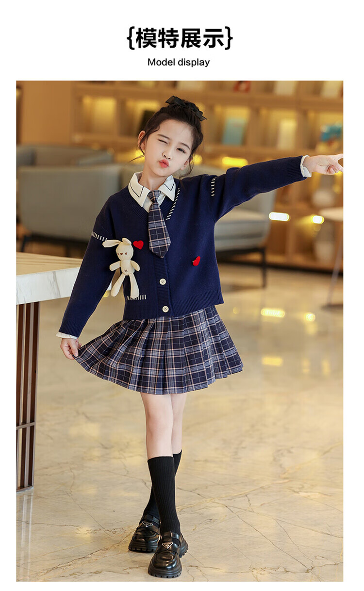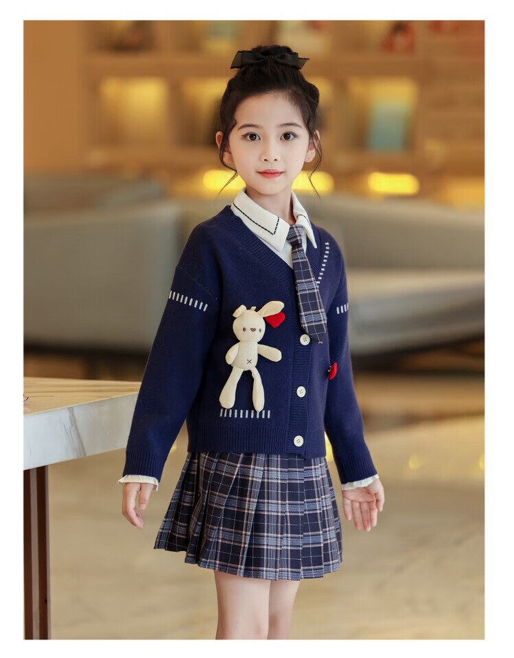 G.duck童装女童套装春秋学院风儿童JK裙子洋气可爱女大童毛衣衬衫三件套 红色三件套 120 (建议身高110cm 6-7岁)c