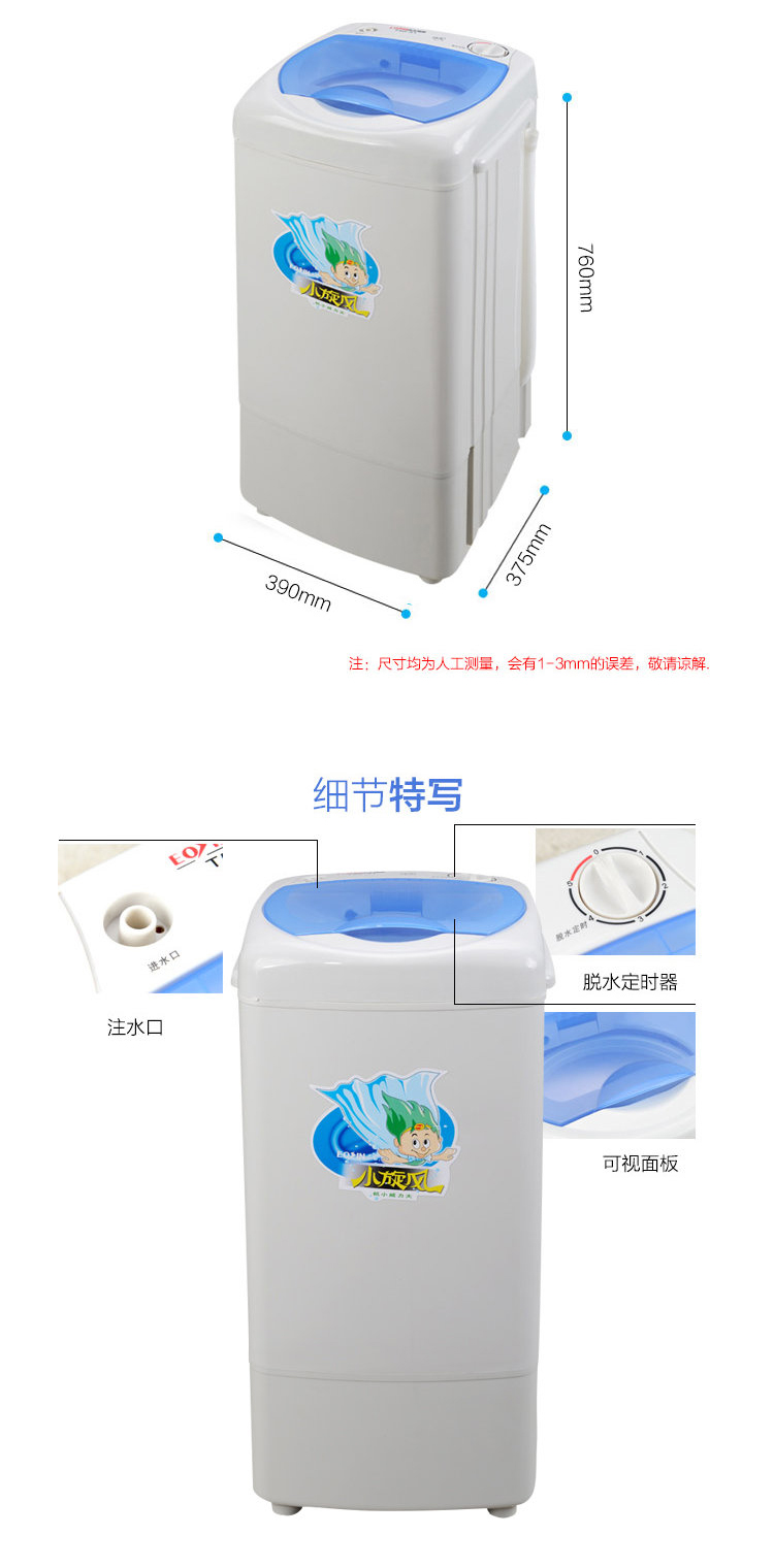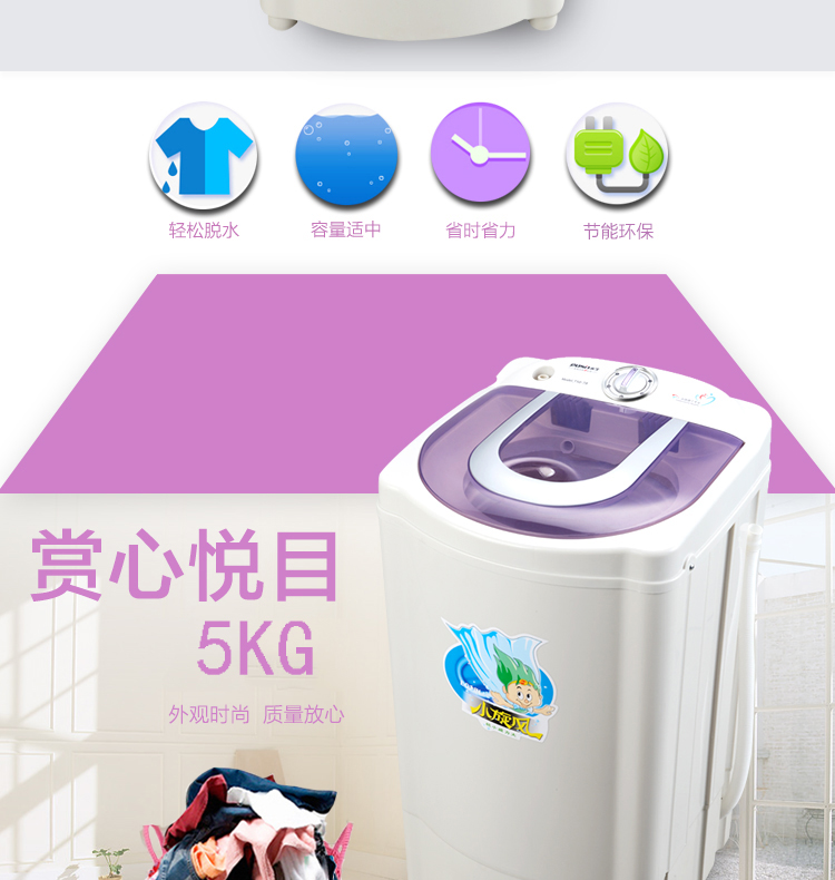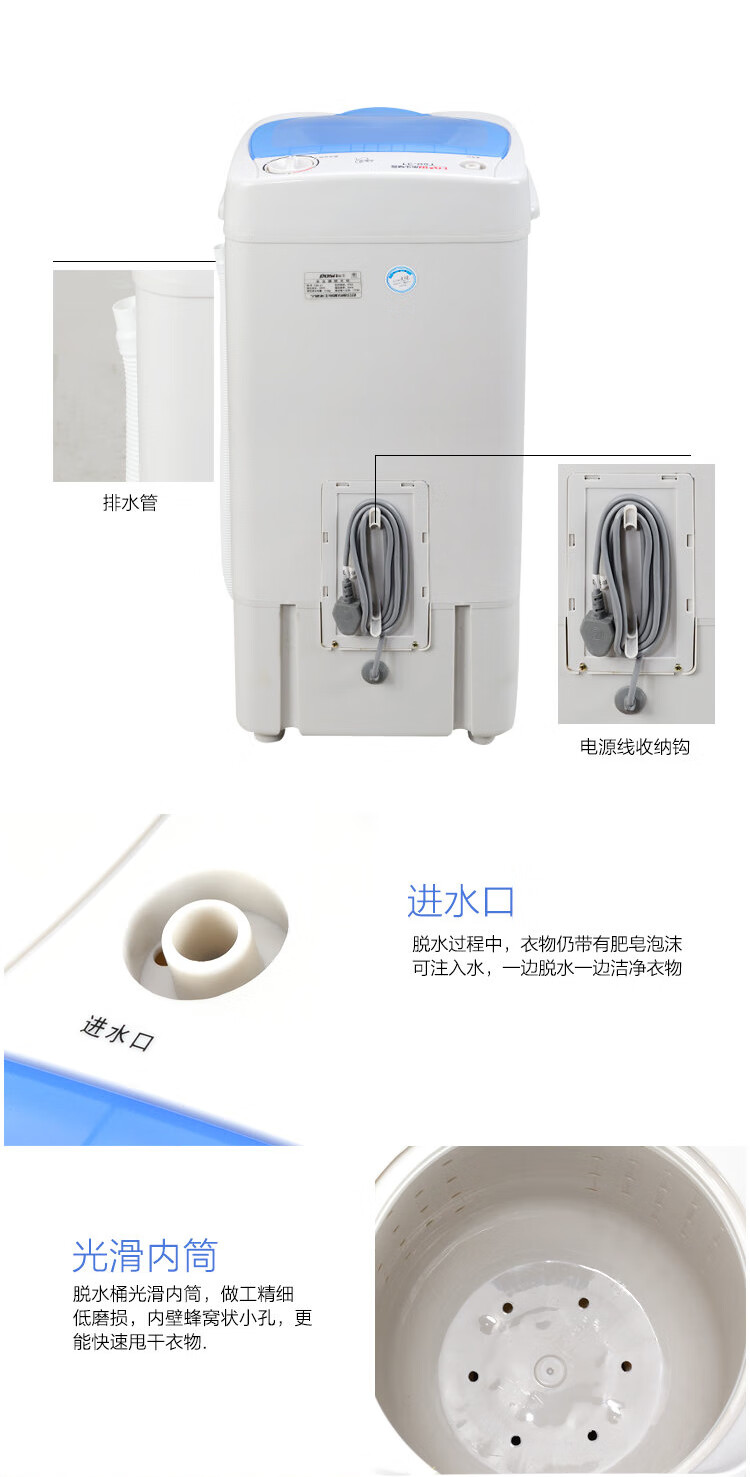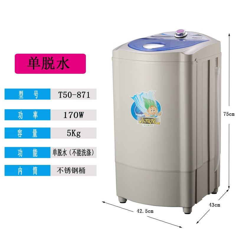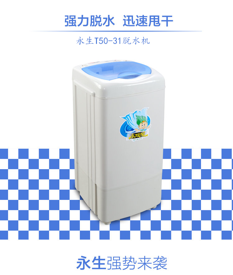 永生脱水机 家用大容量不锈钢甩干机甩干桶 小型宿舍公寓出租房单脱水甩干迷你脱水桶 全塑桶5kg【T50-31】