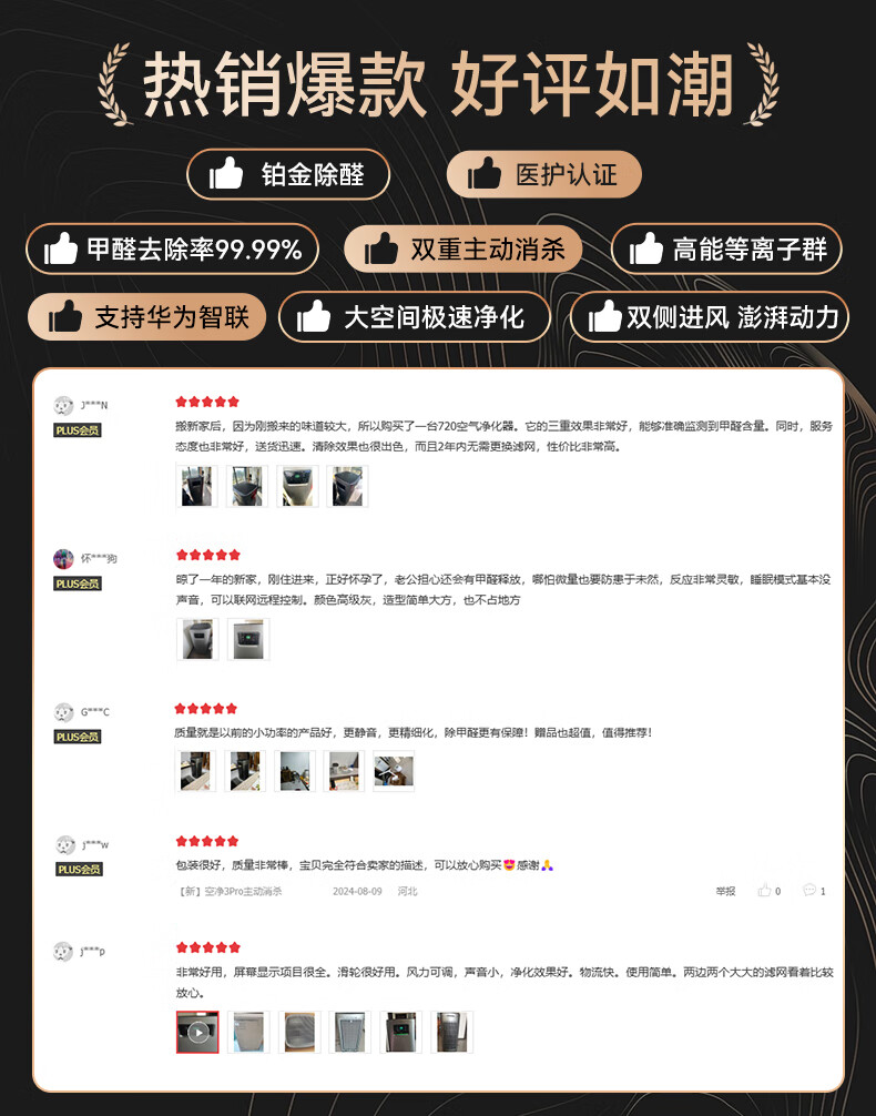 华为智选鸿蒙智选除甲醛空气净化器母婴二手烟净化器宠物家用净化器新房装修除烟味120㎡大户型静音家电 【除甲醛过敏原】空净3Pro增强版