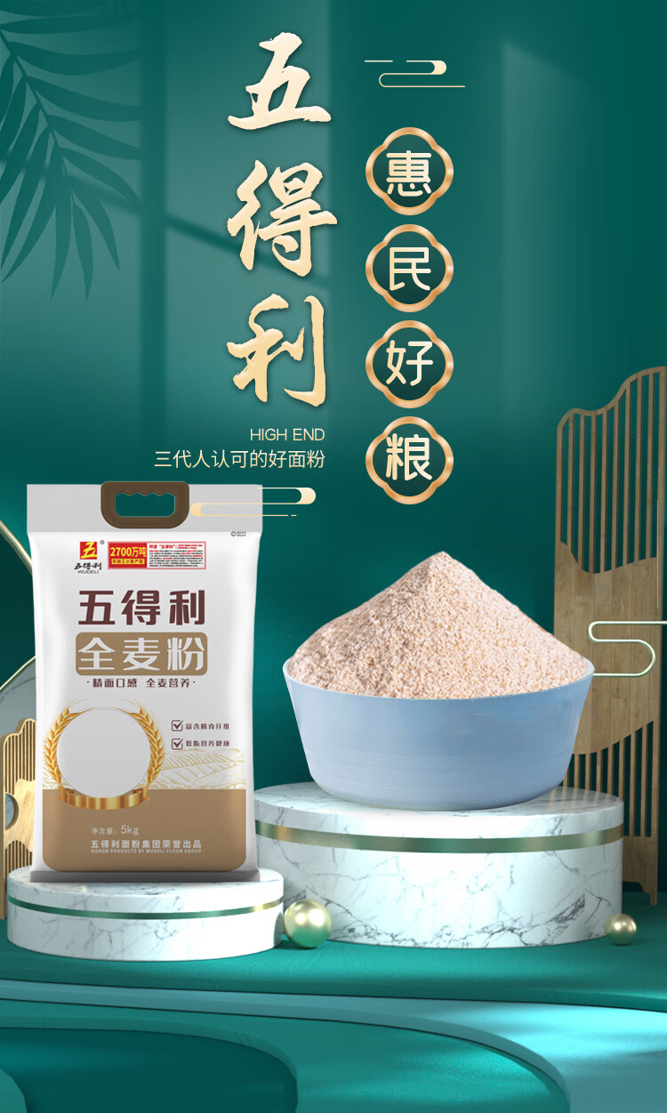 五得利(WUDELI)面粉全麦粉10斤 中筋多用途馒头饼面条