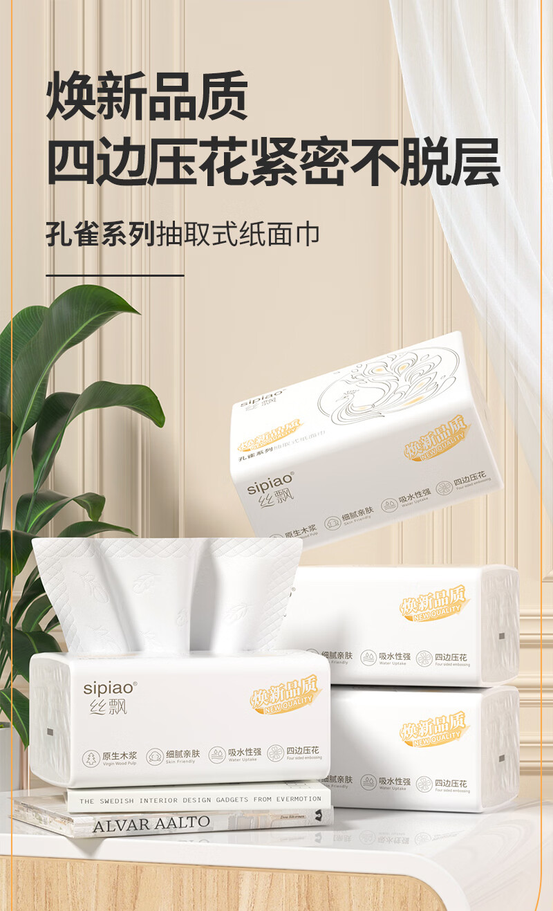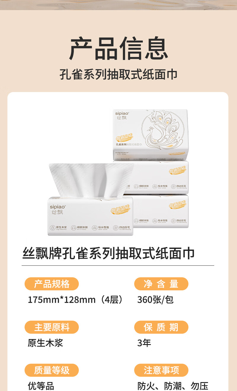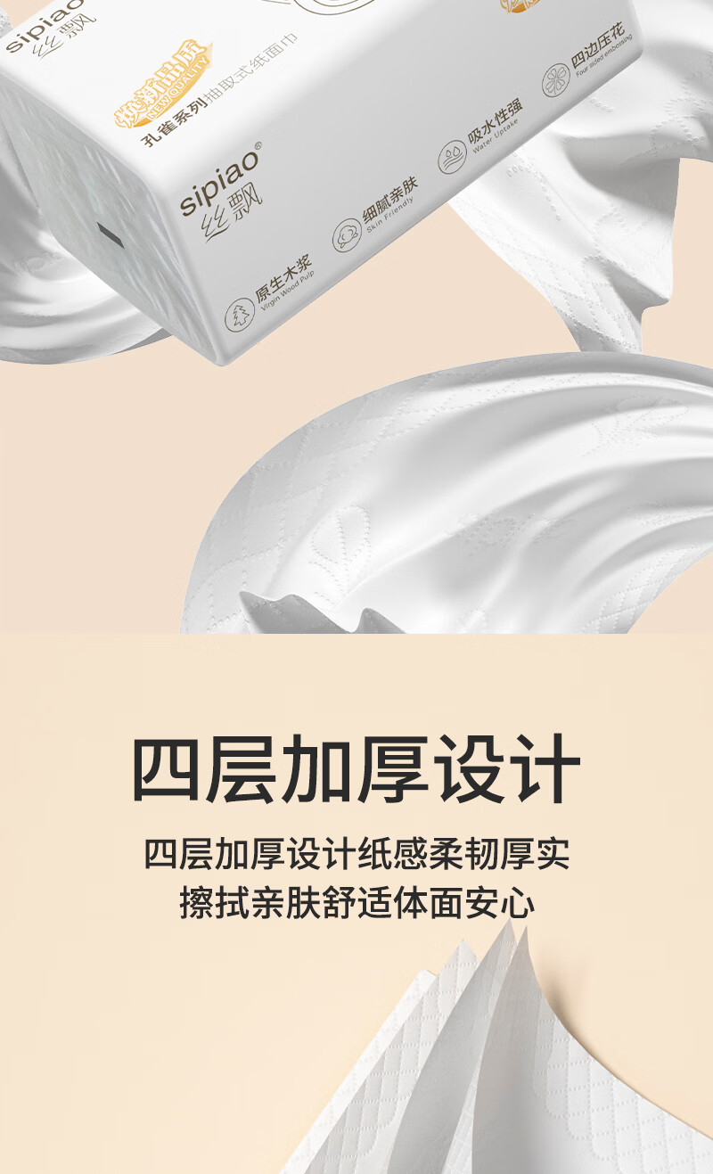 丝飘家用抽纸面巾纸纸巾餐巾纸加厚家用面巾纸整箱批发 4层 360张*5包