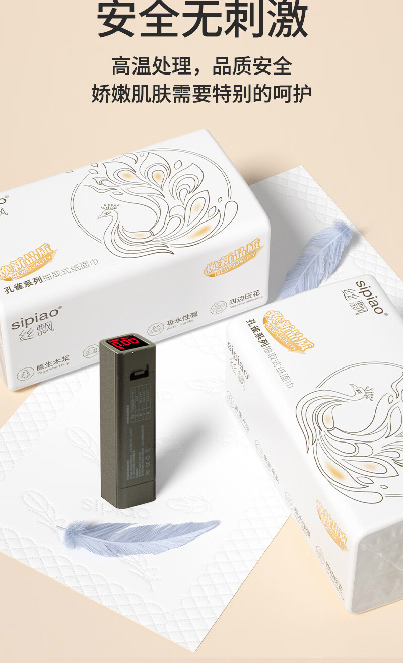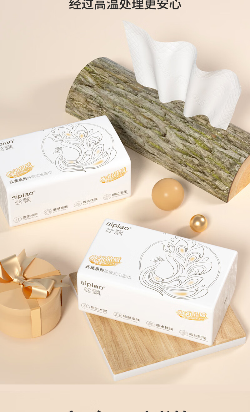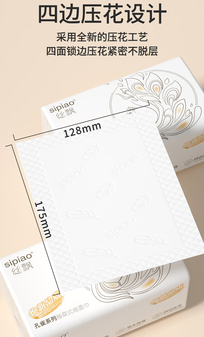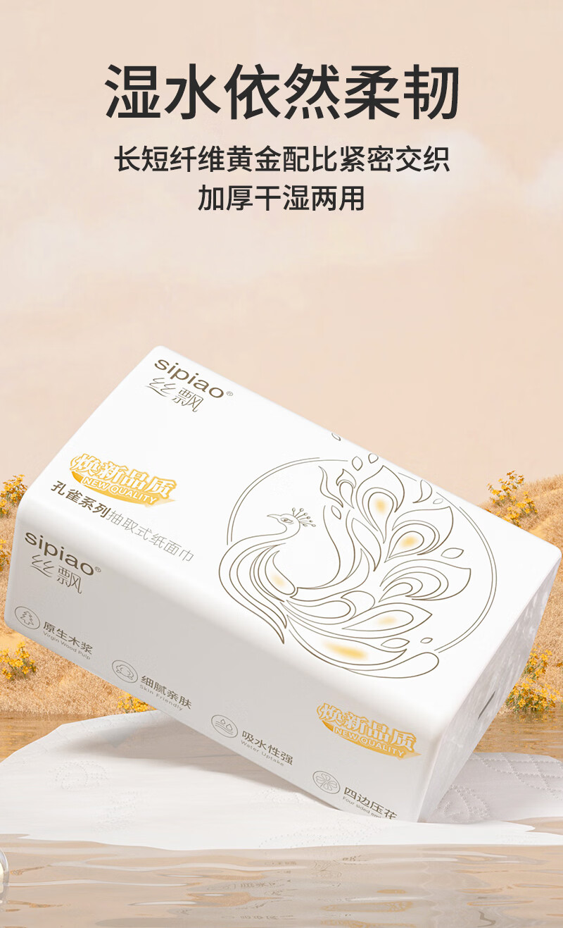 丝飘家用抽纸面巾纸纸巾餐巾纸加厚家用面巾纸整箱批发 4层 360张*5包