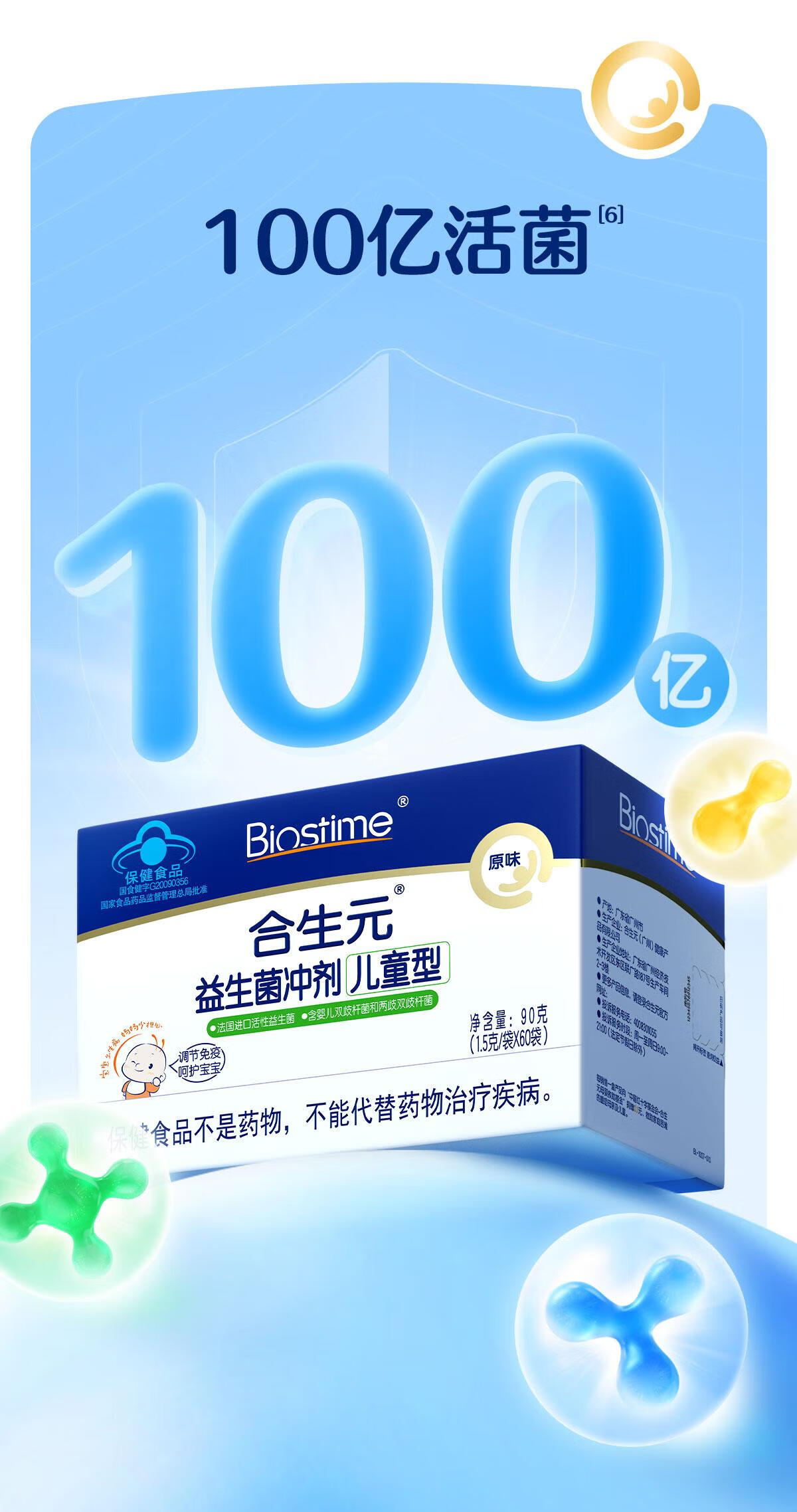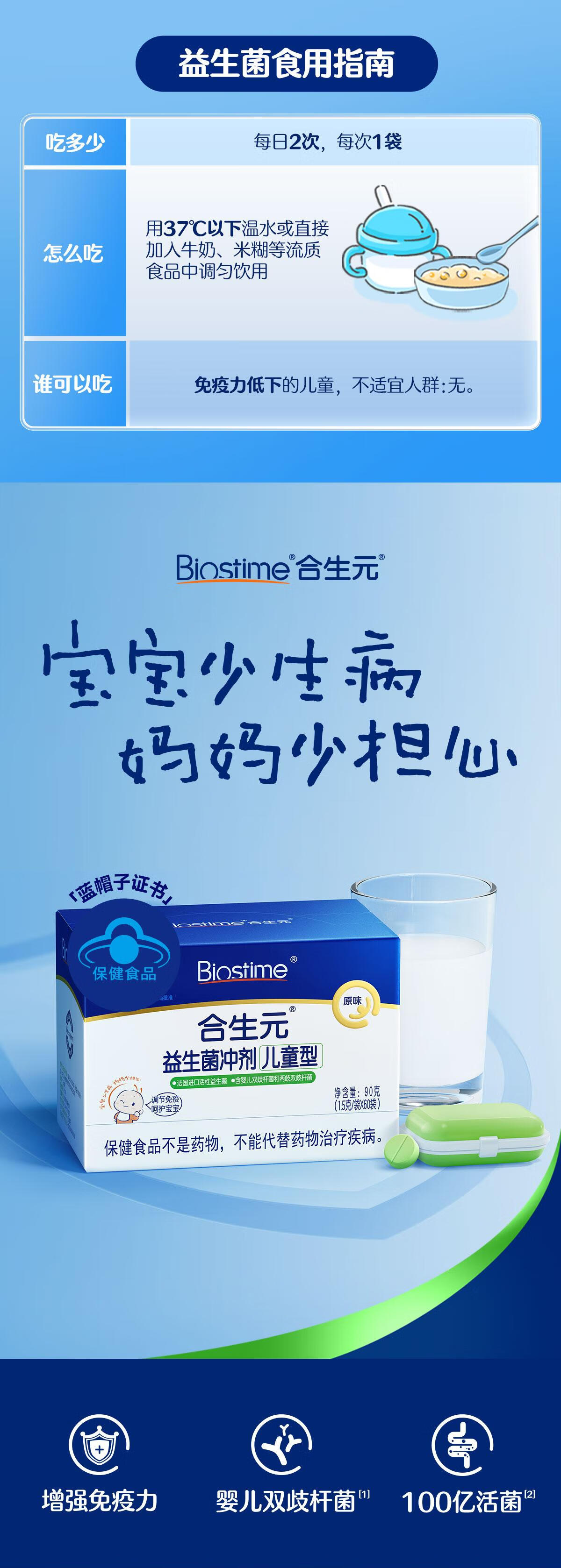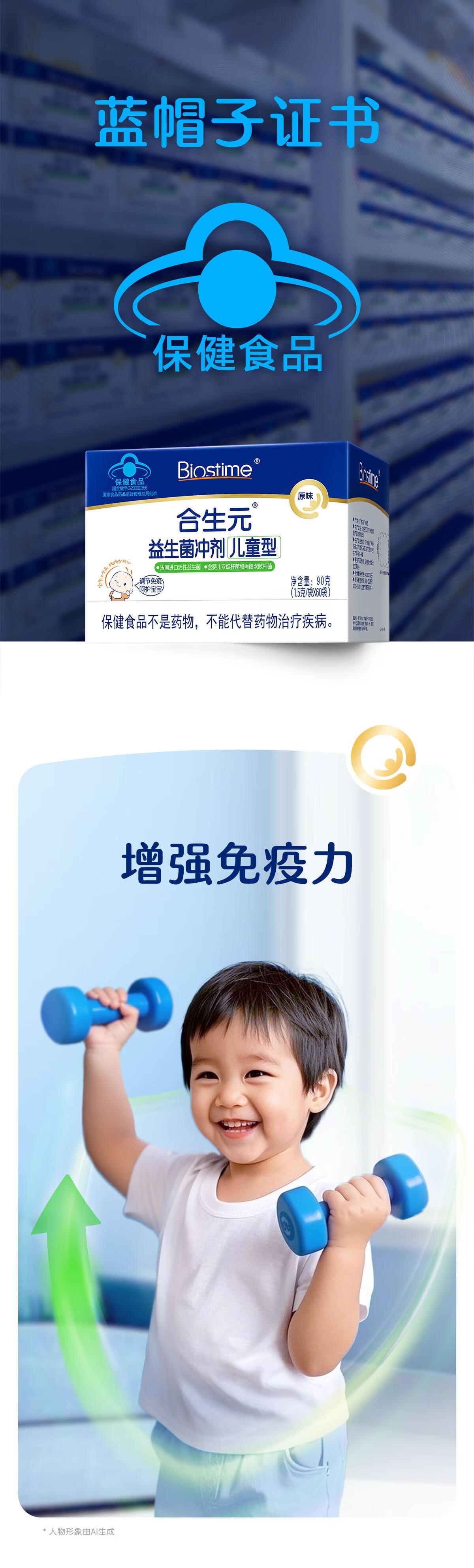 合生元(BIOSTIME)原味儿童益生菌小蓝帽 婴儿益生元双歧杆菌增强免疫 60袋